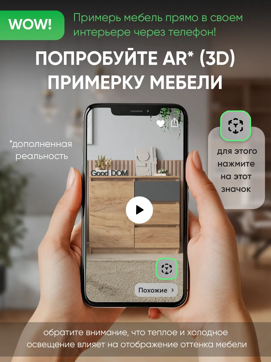 Два отделения с полкой и три выдвижных ящика позволяют аккуратно разместить все необходимые вещи, обеспечивая их удобное хранение и быстрый доступ. Отсутствие ручек не только делает его современным и модным, но и обеспечивает безопасность, особенно если в доме есть маленькие дети. Использовать комодик можно практически в любых помещениях дома и квартиры: в гостиной, для зала и гардеробной, для детских комнат, в коридор, для балкона, и лождии.