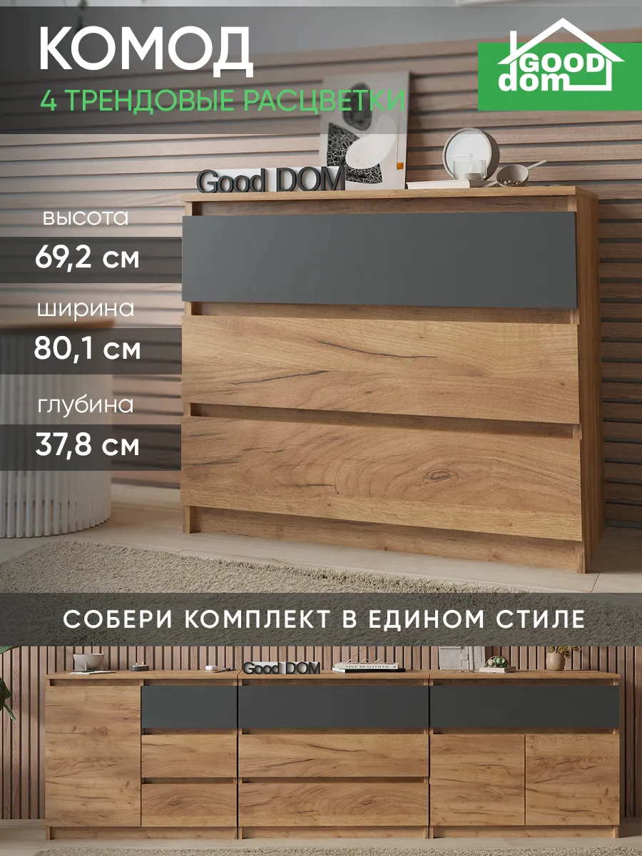 Комод — это универсальная и практичная мебель, которая идеально впишется в гостиную, спальню, прихожую, кабинет или даже офисный интерьер. Стильный дизайн подходит для создания уюта как в классическом, так и в современном стиле лофт. Удлиненный и глубокий ящик позволяет удобно хранить вещи, посуду, документы и другие необходимые предметы. За дверцей удобно разместить посуду или организовать хранение для маникюрных и письменных принадлежностей. Для ребенка комод послужит отличным решением для хранения игрушек или одежды. Благодаря длинной и широкой столешнице можно использовать поверхность в качестве настольного пространства, разместить светильники, декор или элементы для маникюра. Высокий и большой объем позволяет эффективно использовать доступное пространство даже в компактной или небольшой комнате. Антрацитовый, коричневый, черный или нежный цвет 'мокко' подчеркивает изысканность и функциональность мебели, помогая легко сочетать комод с уже имеющимся интерьером.