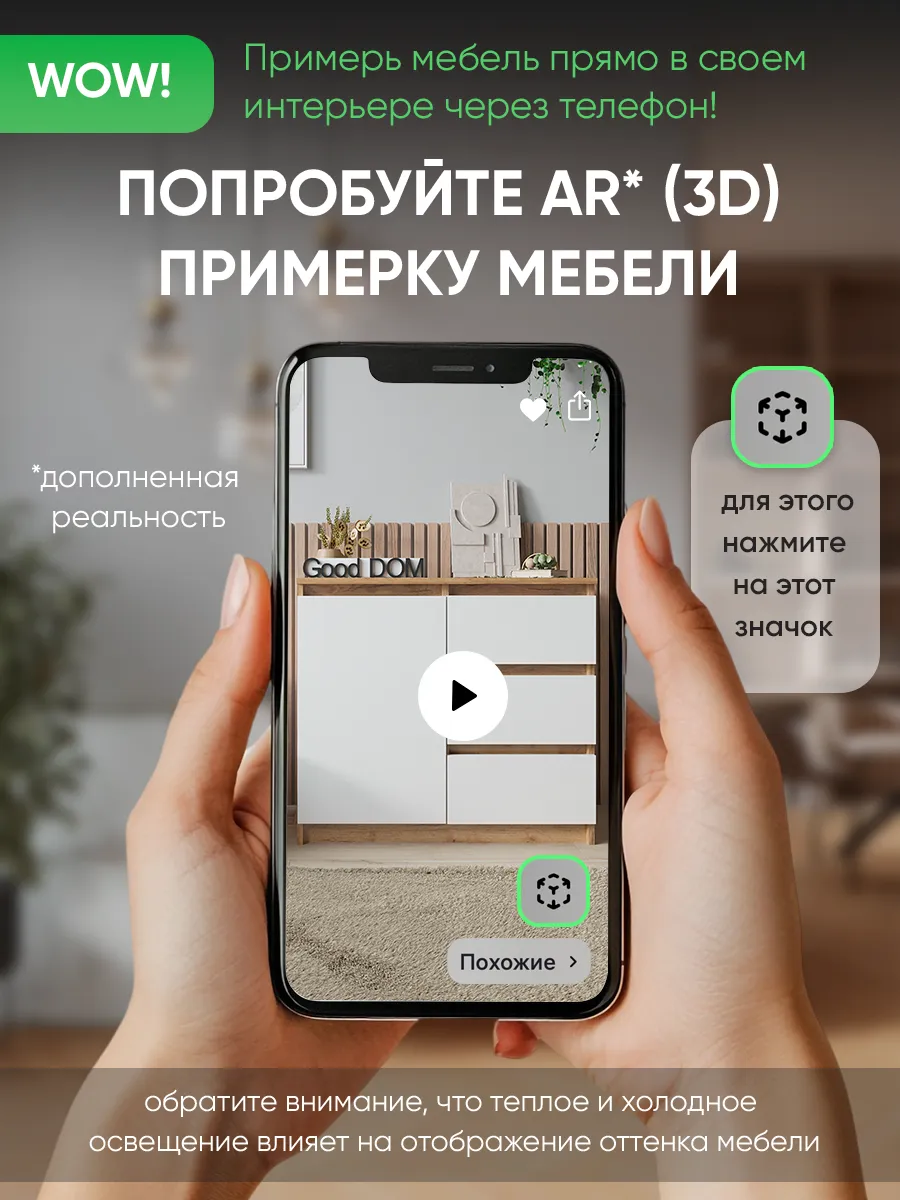 Два отделения с полкой и три выдвижных ящика позволяют аккуратно разместить все необходимые вещи, обеспечивая их удобное хранение и быстрый доступ. Отсутствие ручек не только делает его современным и модным, но и обеспечивает безопасность, особенно если в доме есть маленькие дети. Использовать комодик можно практически в любых помещениях дома и квартиры: в гостиной, для зала и гардеробной, для детских комнат, в коридор, для балкона, и лождии.