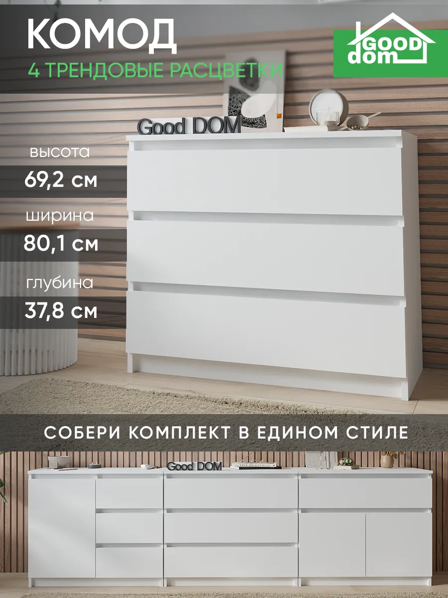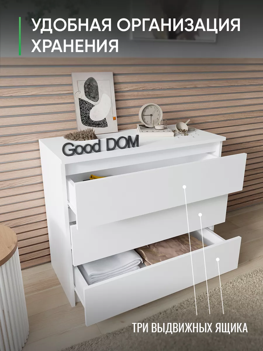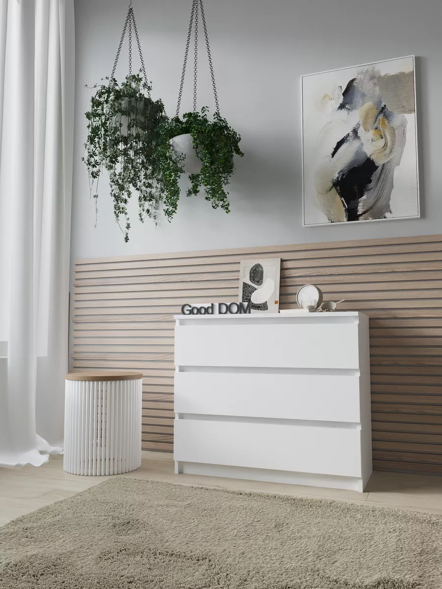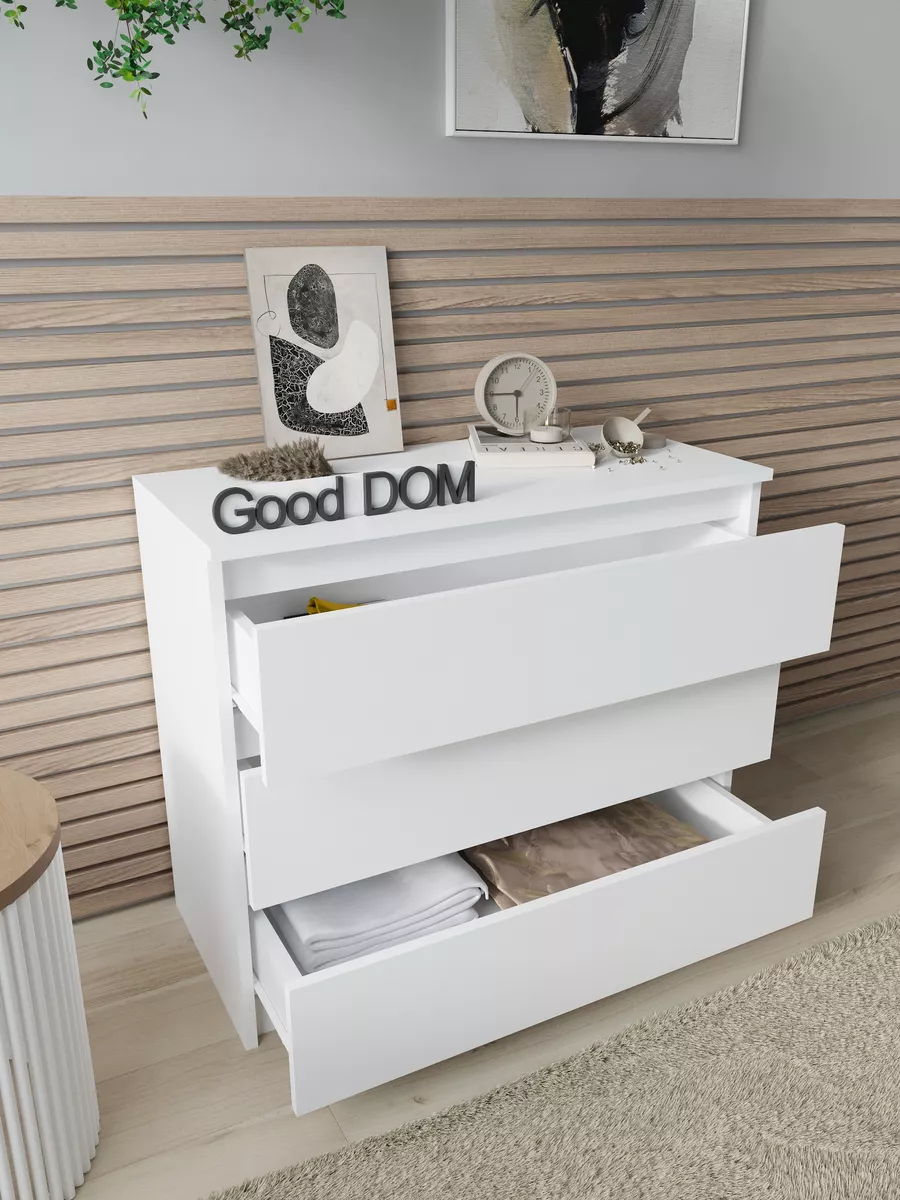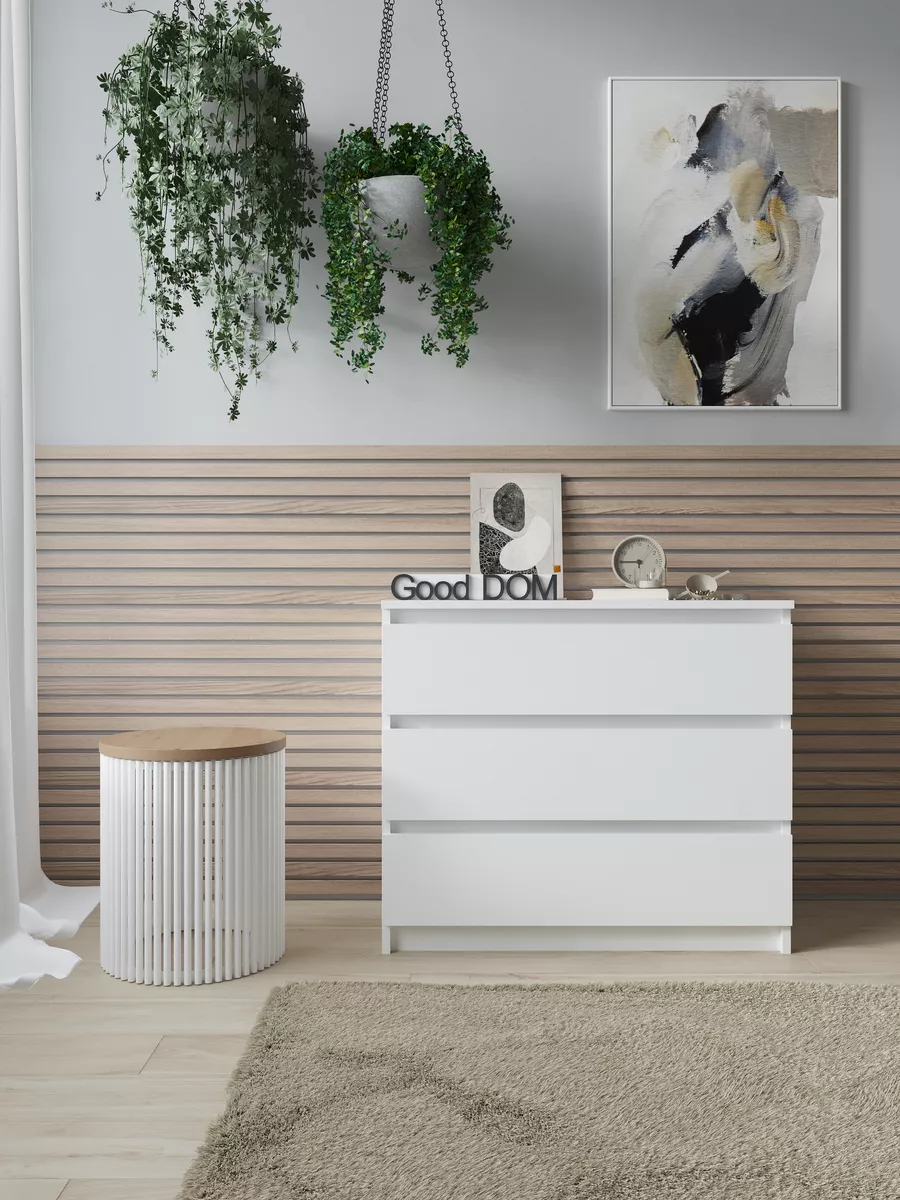 Стильный и современный корпусный комод станет отличным решением для хранения мелочей в детской комнате, спальне, прихожей или гостиной. Светлый цвет и дизайнерский декор создают уютный и классический стиль, который легко впишется в любой интерьер, включая кухню, балкон или офисное пространство. Удлиненный ящик с доводчиком и удобной ручкой обеспечивает плавное открывание, а большая столешница позволяет использовать мебель как столик для маникюра или размещения посуды. Этот хороший предмет мебели подходит для хранения документов, гардеробных вещей и различных домашних вещей, помогая поддерживать порядок и логику в доме. Отличный выбор для тех, кто ценит функциональность и стиль в одном изделии.