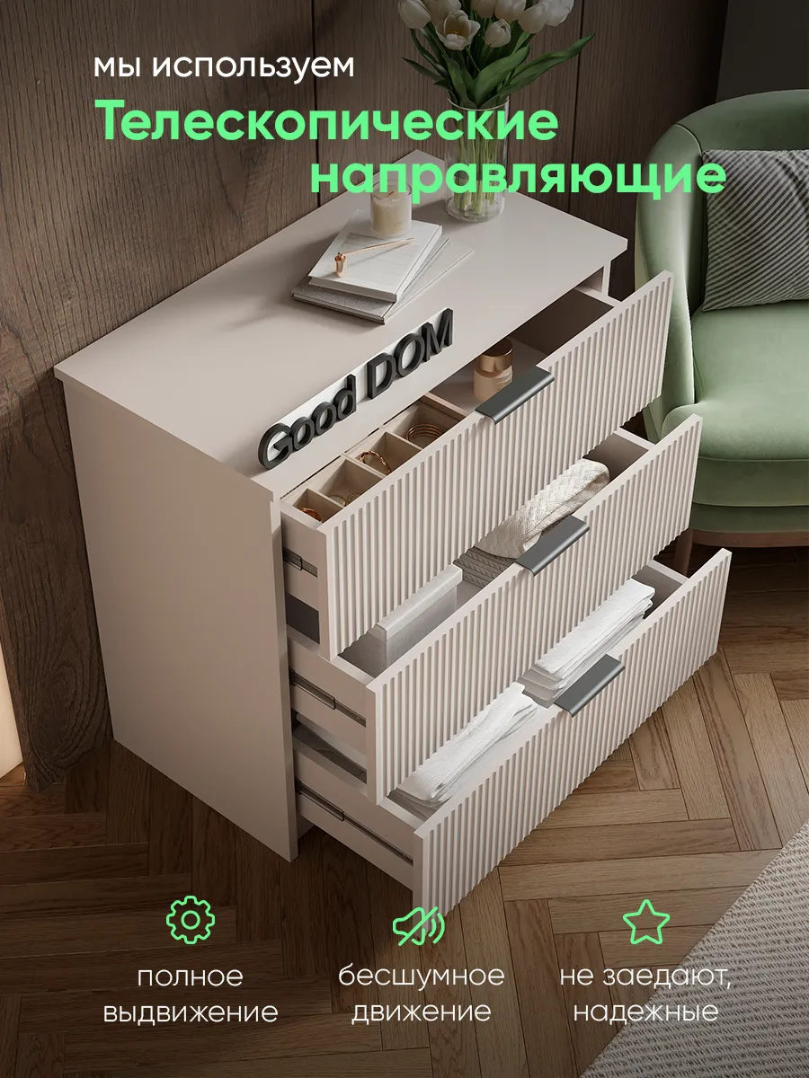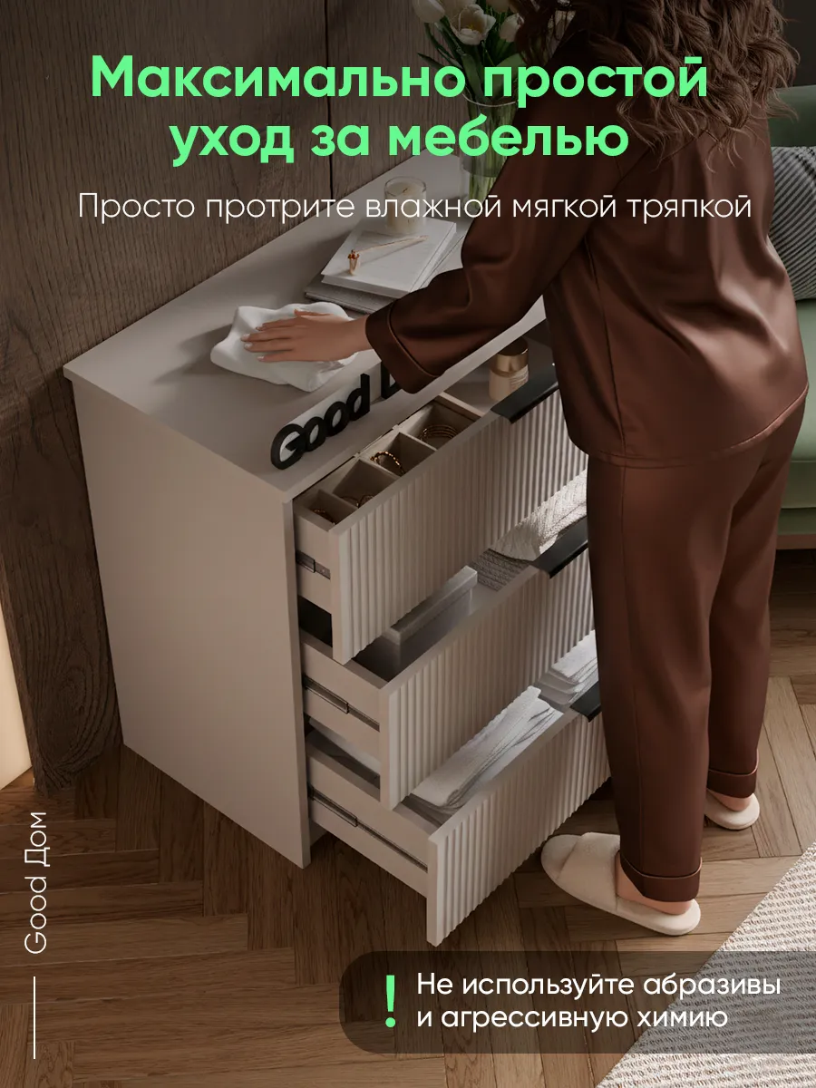 Комод — функциональный и уютный элемент мебели для хранения вещей в любой комнате дома. Благодаря продуманной конструкции с выдвижными ящиками, удобно размещать документы, косметику, детские принадлежности, посуду, предметы гардероба или постельное бельё. Современный стиль и универсальный цвет гармонично сочетаются с интерьером спальни, гостиной, прихожей или даже кухни. Эргономичные ручки на фасаде обеспечивает легкое открытие ящиков, а надежная сборка гарантирует долговечность эксплуатации. Длинные и глубокие ящики идеально подходят для крупных вещей, также выполняют функцию хранения мелочей, включая аксессуары для маникюра или предметы младенца. Классическая форма комодика впишется в стиль лофт, хай-тек, дизайнерский или классический декор, подчеркнув стиль и логику интерьера. Используйте такой удачный вариант мебели для создания порядка в офисном пространстве, салоне, детской или гардеробной.