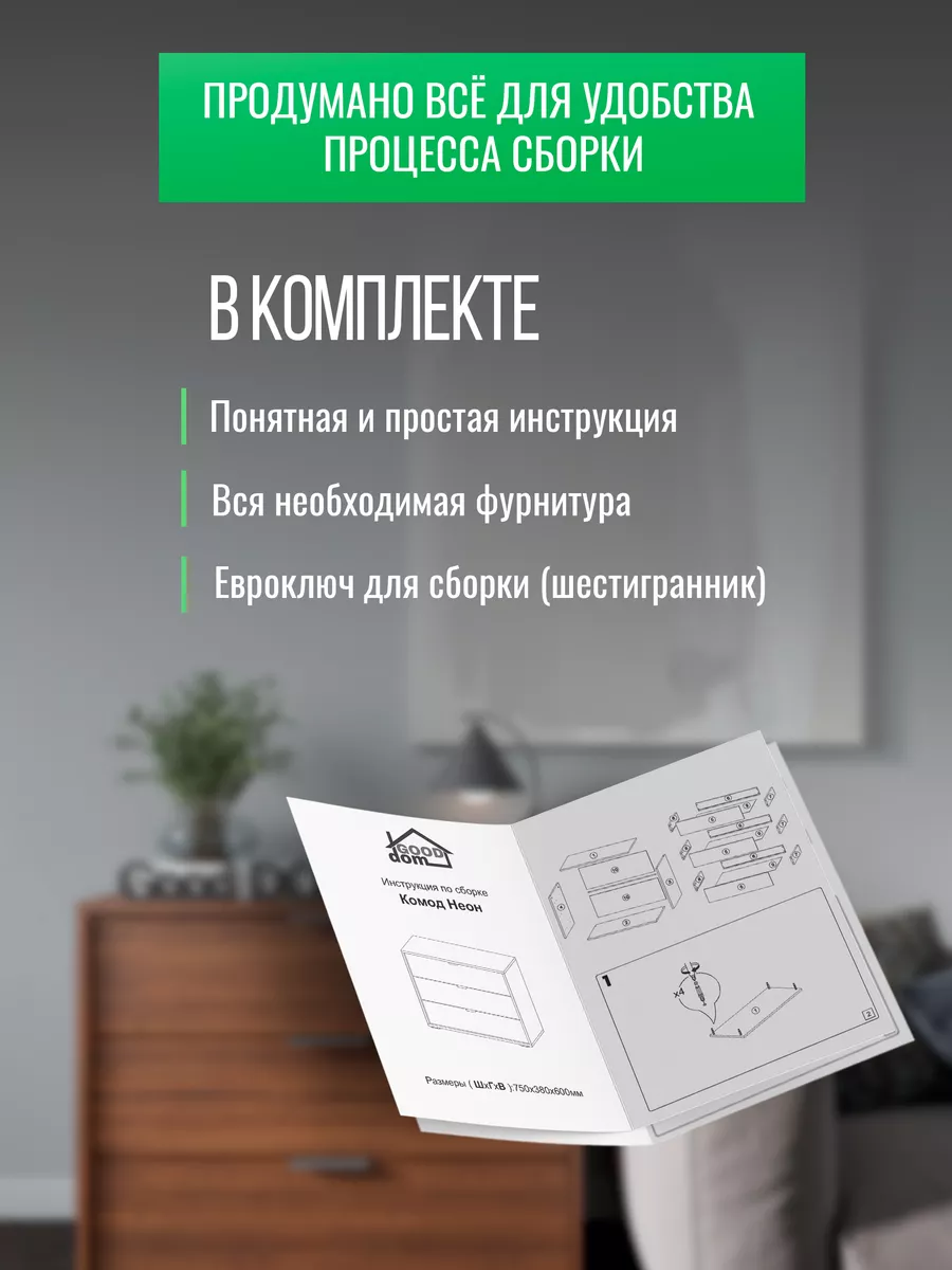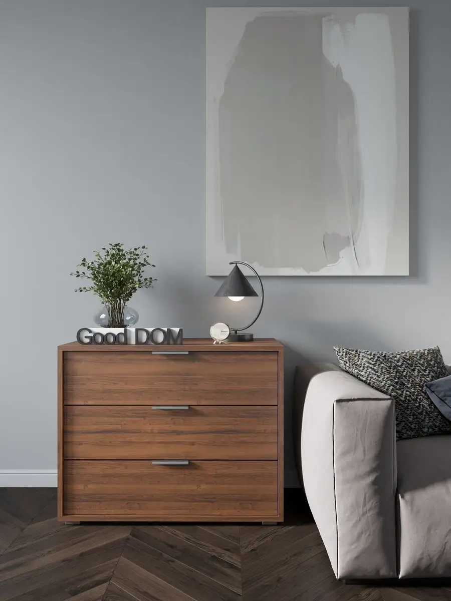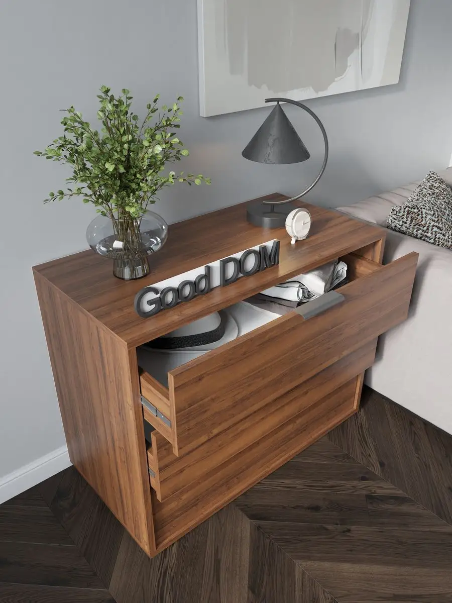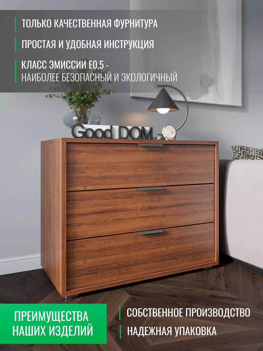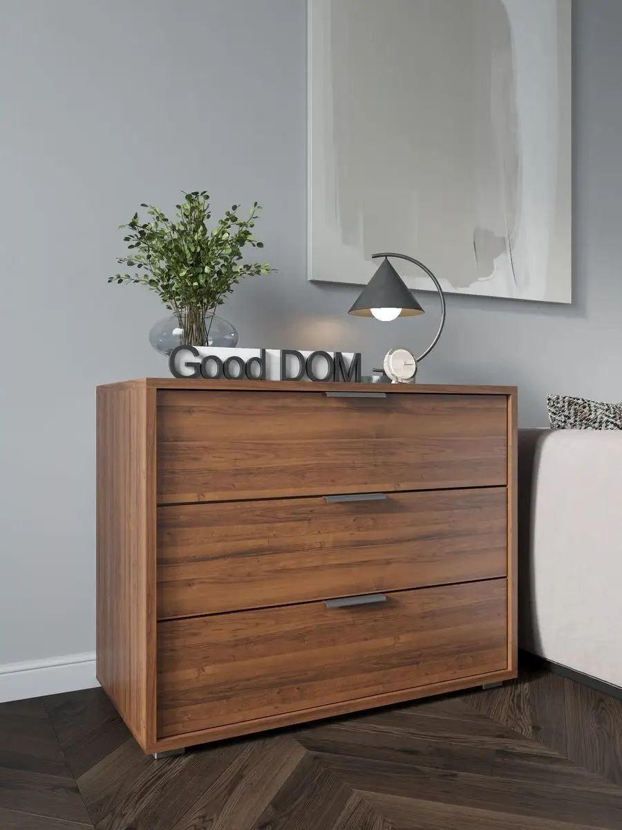 Комод для вещей - это важный элемент мебели, без которого не обходятся ни один дом или квартира. Широкий комод с ящиками уместен в любой комнате. В гостиной комод выполняет функцию тумбы под вещи или книжной полки. Деревянный комод на ножках легко заменит рабочий шкаф и место для хранения офисных вещей. Высокий комод с зеркалом прекрасно подойдет для спальни вместо туалетного столика. Комод детский для игрушек станет помощником в хранении учебников, тетрадей и любимых сказок. Если его разместить в прихожей, то узкий комод мини для обуви удобно спрячет ваши туфли от домашних животных. Большой глубокий комод прекрасно впишется на балкон или на кухню для грамотного и экономного хранения вещей. Для изготовления нашей мебели используются только высококачественные ЛДСП и мебельная фурнитура, поэтому наши изделия прослужат Вам не один год.
