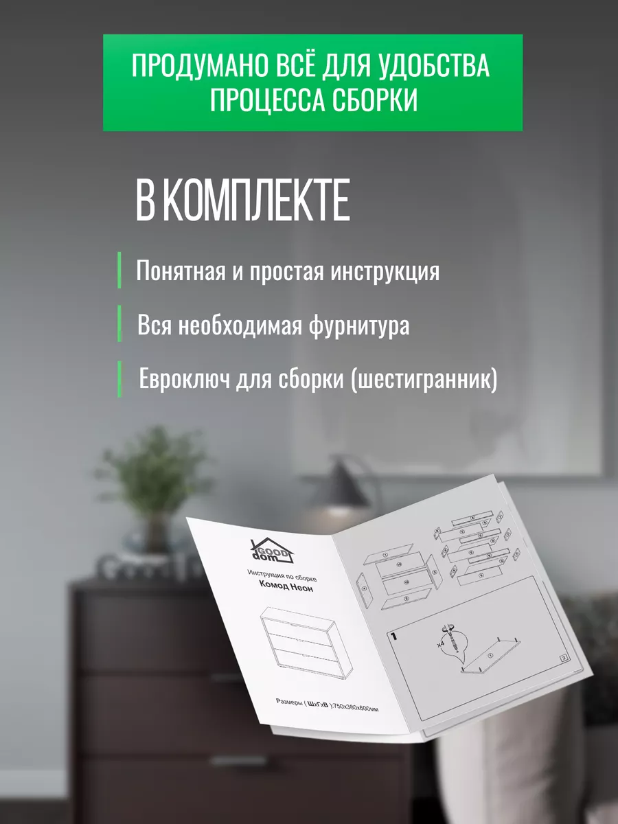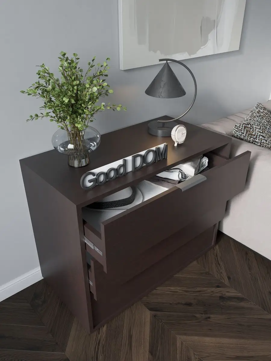 Комод для вещей - это важный элемент мебели, без которого не обходятся ни один дом или квартира. Широкий комод с ящиками уместен в любой комнате. В гостиной комод выполняет функцию тумбы под вещи или книжной полки. Деревянный комод на ножках легко заменит рабочий шкаф и место для хранения офисных вещей. Высокий комод с зеркалом прекрасно подойдет для спальни вместо туалетного столика. Комод детский для игрушек станет помощником в хранении учебников, тетрадей и любимых сказок. Если его разместить в прихожей, то узкий комод мини для обуви удобно спрячет ваши туфли от домашних животных. Большой глубокий комод прекрасно впишется на балкон или на кухню для грамотного и экономного хранения вещей. Для изготовления нашей мебели используются только высококачественные ЛДСП и мебельная фурнитура, поэтому наши изделия прослужат Вам не один год.
