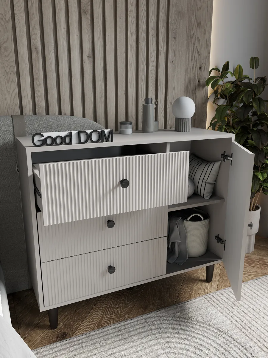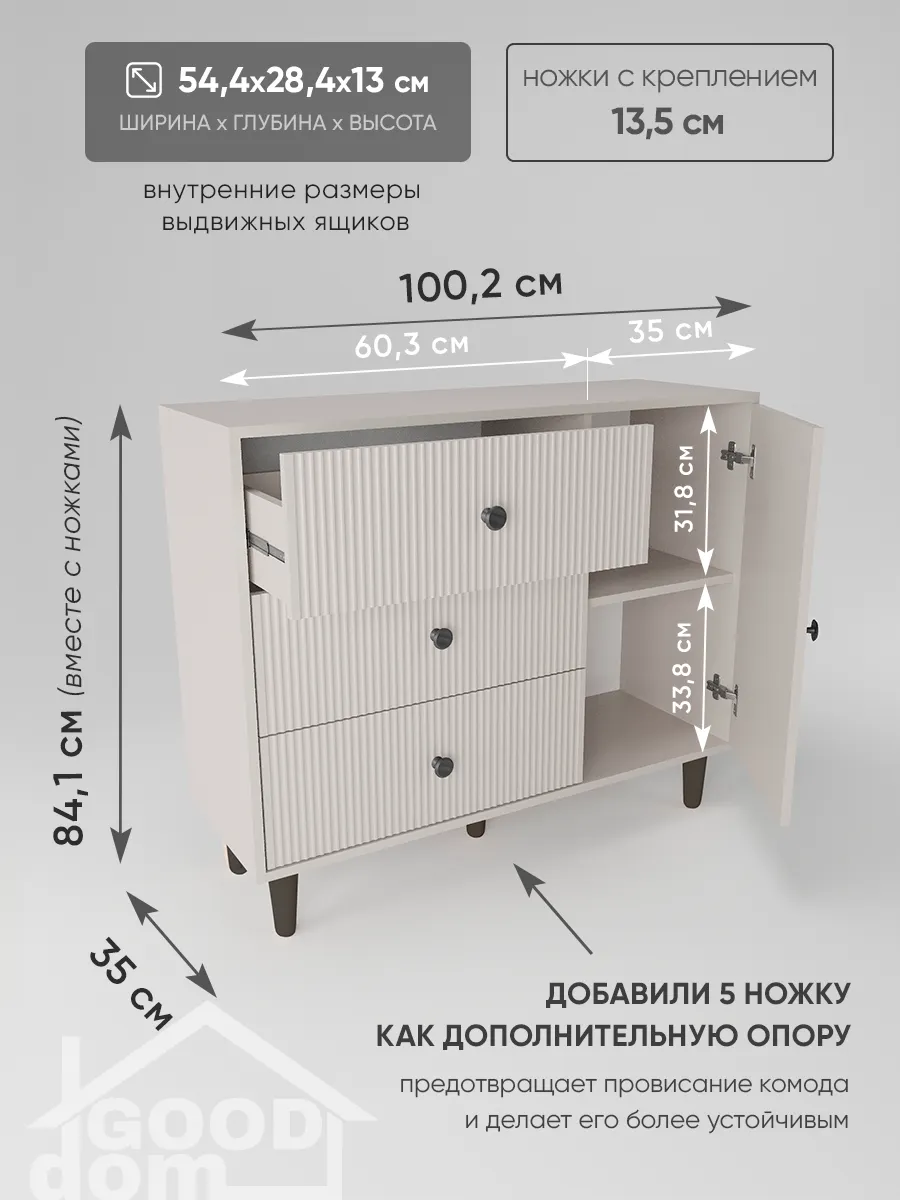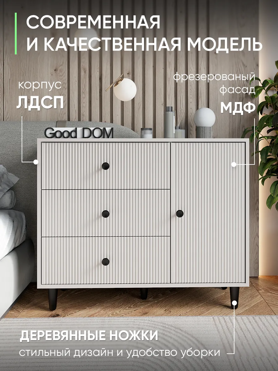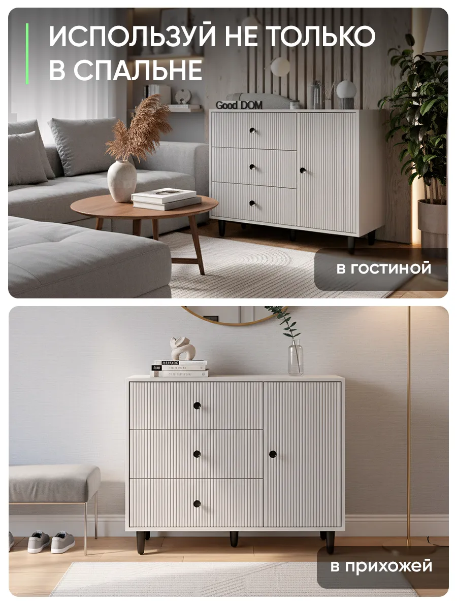 Универсальный комод представляет собой стильное и функциональное решение для хранения в спальне, гостиной или офисном пространстве. Изготовленный из качественного деревянного лиспа, он отличается прочностью и долговечностью, а светлый бежевый цвет с оттенками мокко и верди придает мебели уют и гармонию в любом интерьере. Широкий и глубокий ящик с выдвижным механизмом и доводчиком обеспечивают удобный доступ к вещам, а наличие дверки и дверцы позволяет организовать место для посуды, косметики или документов. Подходит для детской комнаты, маленького балкона, а также кухни и зала.