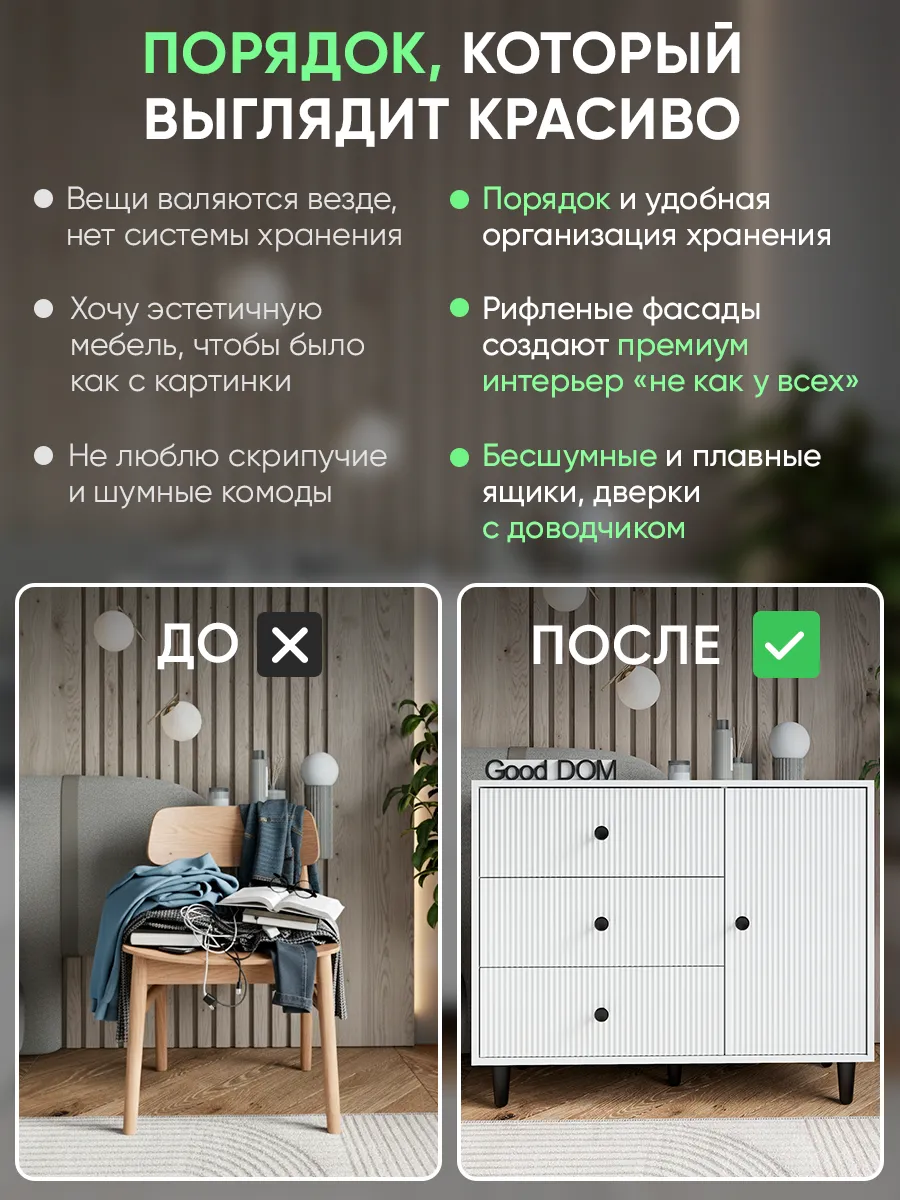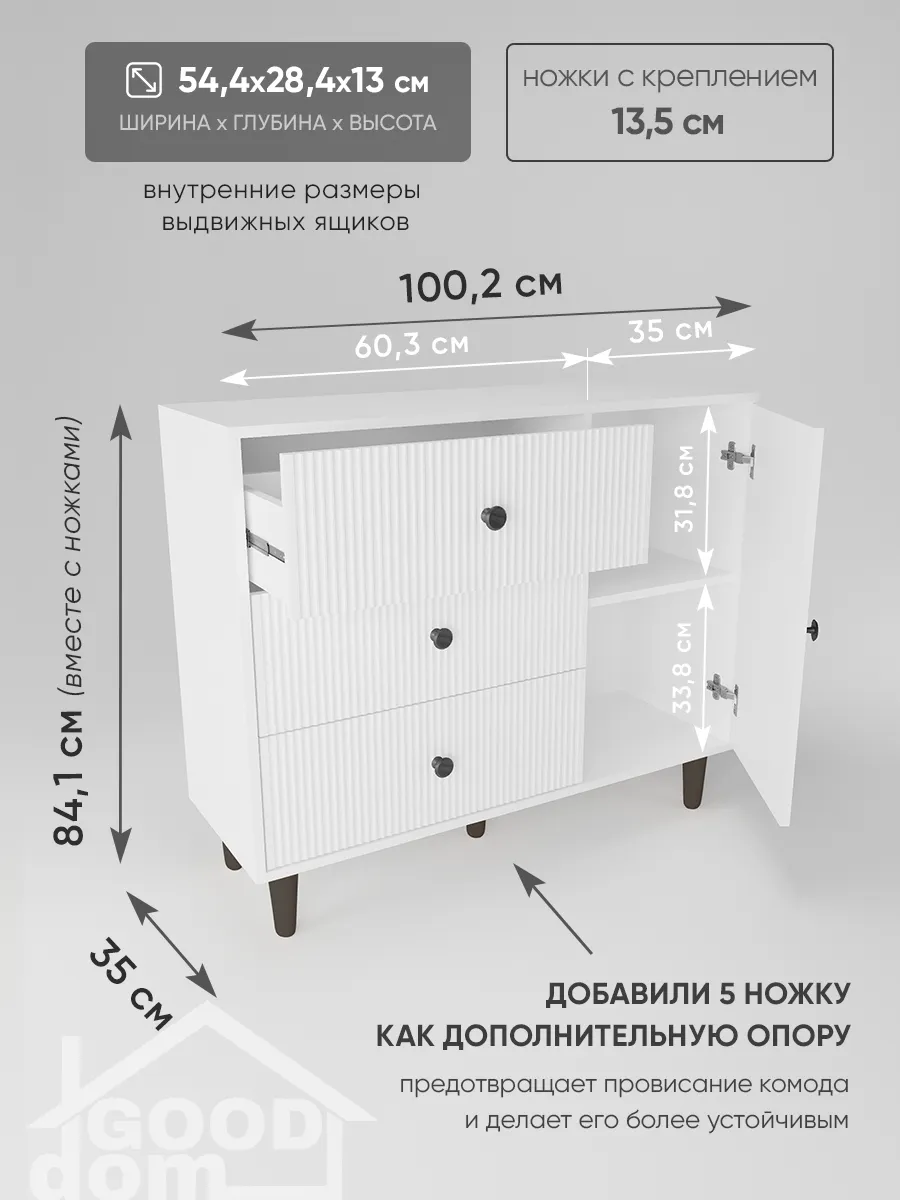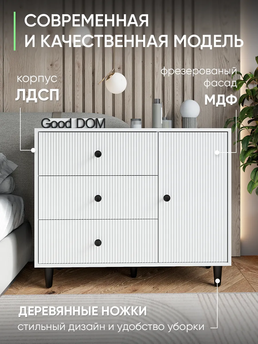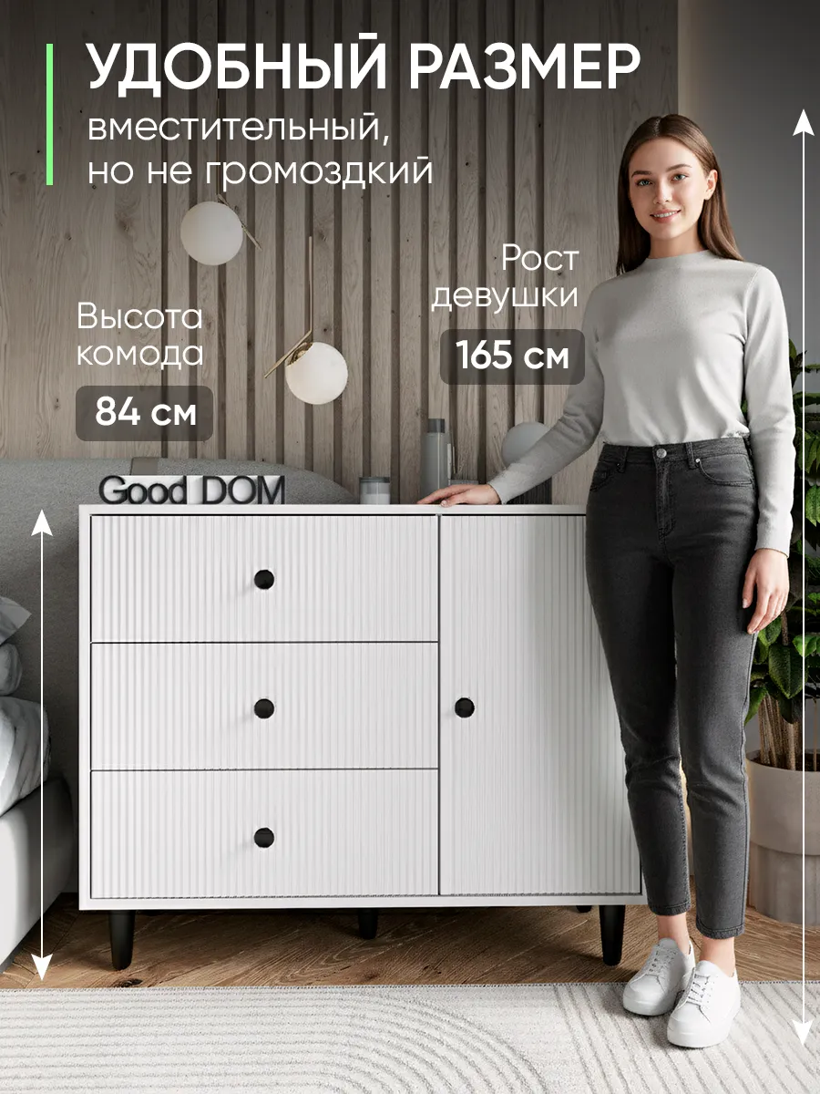 Комод – это современная и стильная мебель для хранения вещей в доме, отлично подходящая для гостиной, спальни, коридора, офисного пространства, детской или гардеробной. Благодаря продуманной конструкции с выдвижными ящиками он удобен для хранения одежды, посуды, косметики, документов, а также позволяет разместить полочка или предметы декора. Белый цвет и дизайнерский внешний вид позволяют гармонично вписать комодик в интерьер любой комнаты — будь то зал, кухня, балкон, мини гардероб, детский уголок или даже уютная дача. Сканди или лофт стиль станет заметен благодаря лаконичным ручка, ножка и необычным деталям оформления, которые акцентируют современный подход к оформлению пространства.