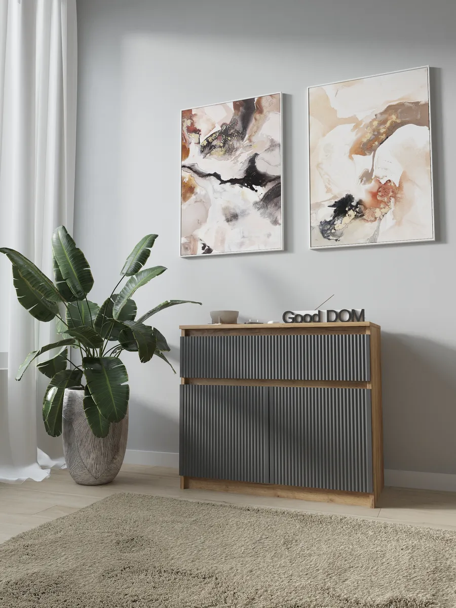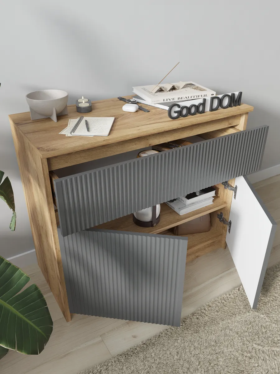 Комод с выдвижным ящиком и отделением с полкой. Специально разработанная современная модель в трендовых цветах от надежного производителя мебели Good Дом. Комод - удобная и функциональная вещь в любом помещении.