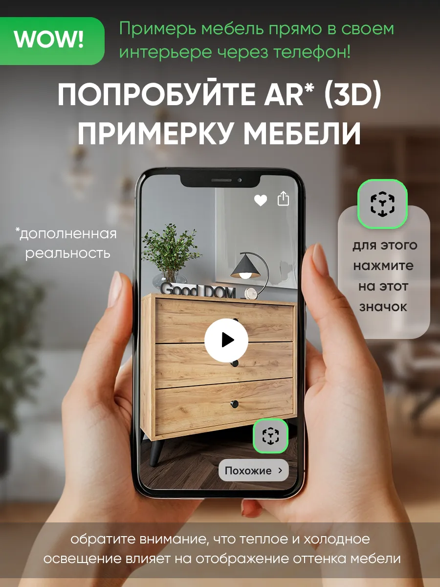 Наш комод изготовлен на новом оборудовании из высококачественных материалов ЛДСП. Мы дорожим качеством и внешним видом нашей продукции, поэтому вся продукция проверяется перед отправкой отделом контроля и упаковывается в коробки с дополнительной твердой защитой. В нашем ассортименте есть много интересных моделей мебели, что позволяет собрать комплект мебели от бренда Good дом, все в Дом, которая сочетается между собой. Чтобы посмотреть всё - просто нажмите на иконку логотипа.
