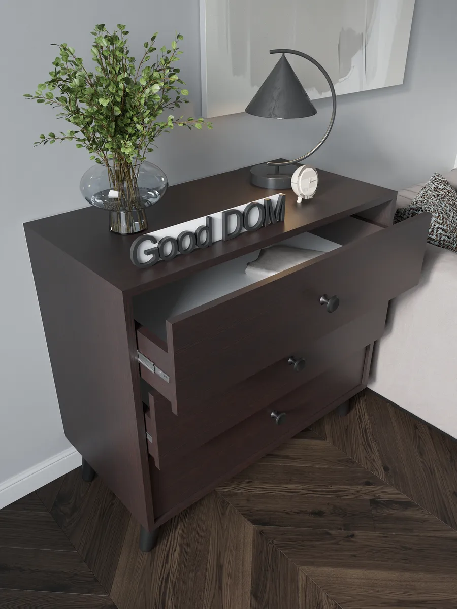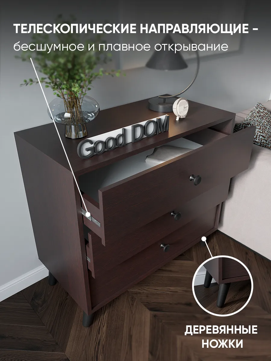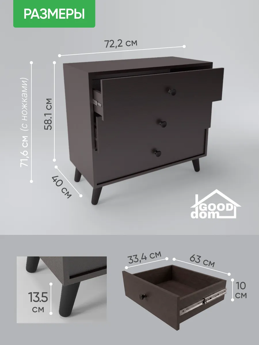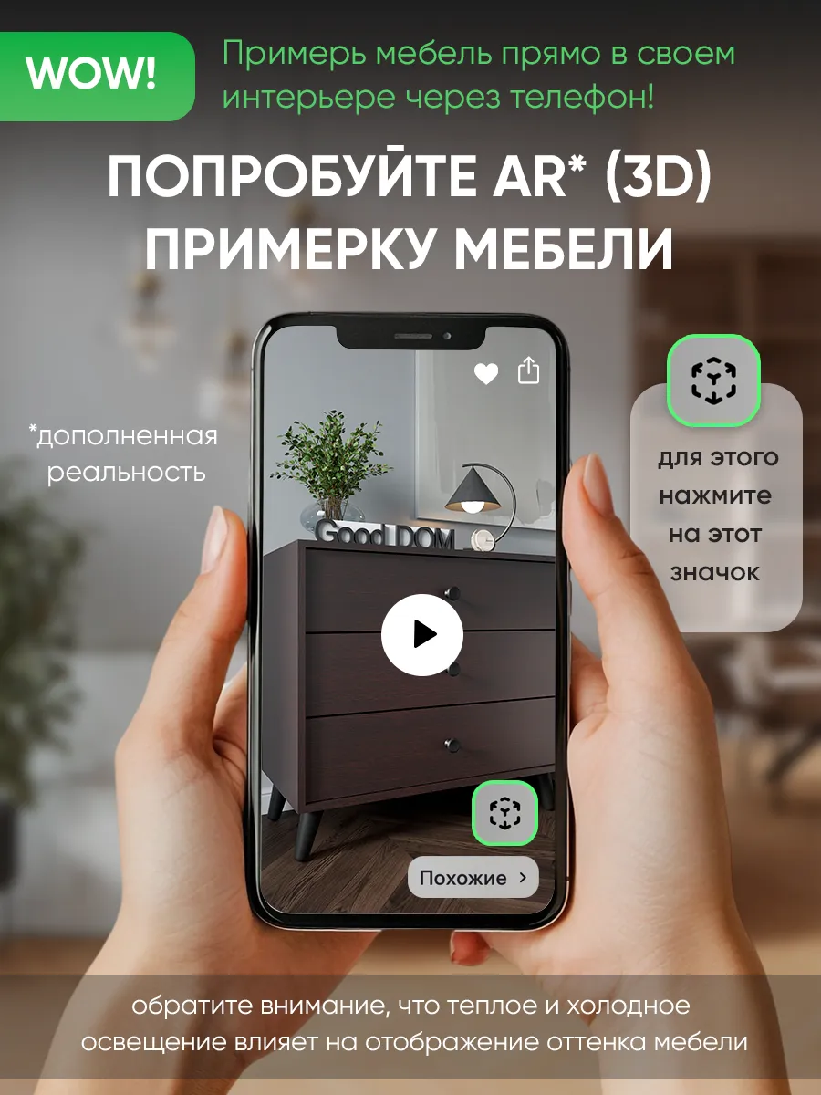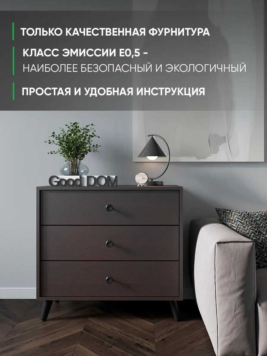 Наш комод изготовлен на новом оборудовании из высококачественных материалов ЛДСП. Мы дорожим качеством и внешним видом нашей продукции, поэтому вся продукция проверяется перед отправкой отделом контроля и упаковывается в коробки с дополнительной твердой защитой. В нашем ассортименте есть много интересных моделей мебели, что позволяет собрать комплект мебели от бренда Good дом, все в Дом, которая сочетается между собой. Чтобы посмотреть всё - просто нажмите на иконку логотипа.