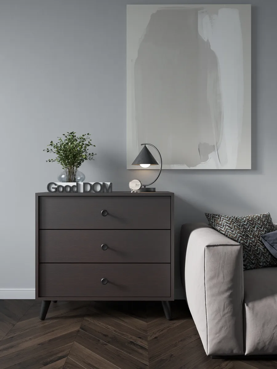 Дизайнерский комод выполнен в скандинавском стиле с акцентом на минимализм и функциональность. Цвет мокко придает уют и гармонию любому интерьеру, сочетаясь с кухонным, гардеробным или детским помещением. Компактный размер и миниатюрные ножки делают изделие удачным выбором для зала, балкона и даже салона, позволяя использовать его и как настольную тумбочку или консоль.
