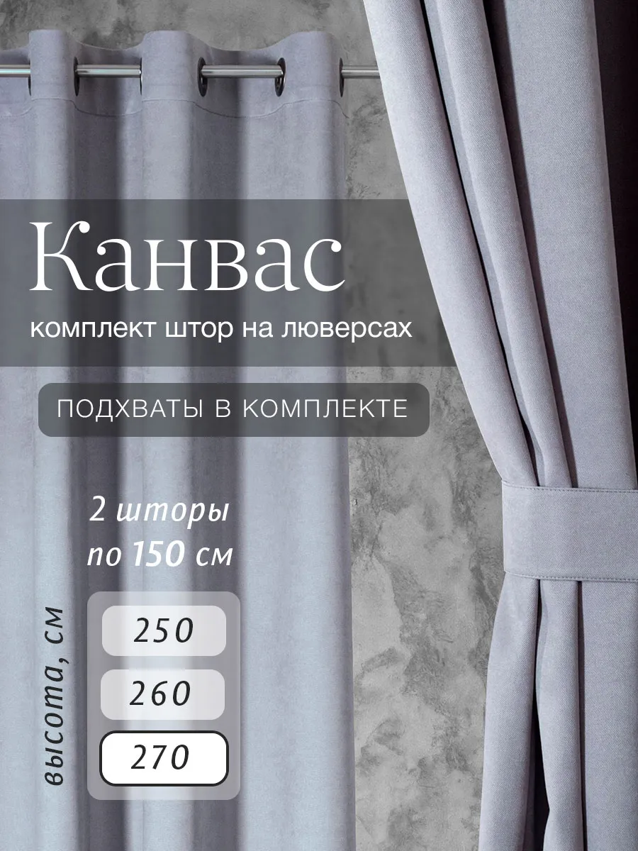 Шторы для комнаты из плотной турецкой ткани Канвас. В упаковке - 2 шторы. Идеальное решение для создания уюта и стиля в вашем интерьере. В комплект входят две плотные занавески, которые не только украсят ваше пространство, но и обеспечат надежную защиту от света благодаря блэкаут-тканям. Кроме того, в комплекте идут подхваты, которые помогут аккуратно расположить шторы, когда они открыты. Шторы Канвас подходят для различных помещений: они будут отлично смотреться в спальне, создавая уютную и спокойную атмосферу, или на кухне, добавляя нотку элегантности и защиты от лишних взглядов. Шторы также прекрасно впишутся в интерьер гостиной, добавив мягкости и уюта вашему дому.Для удобства использования шторы оборудованы люверсами, благодаря которым они легко вешаются на карниз для штор.