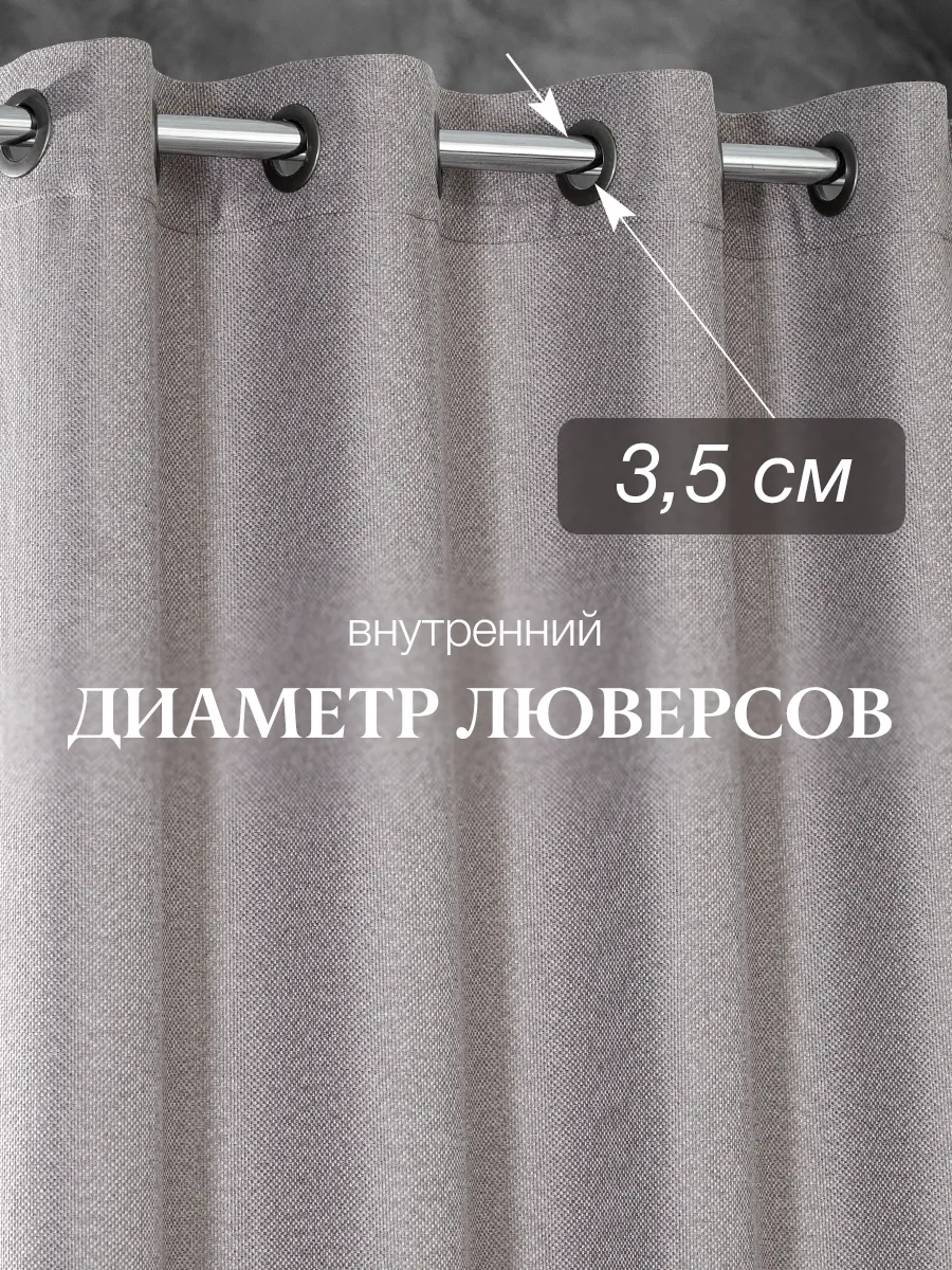 Шторы блэкаут Рогожка на люверсах. Штора плотная, устойчивая к выгоранию, хорошо затемняет комнату. Рогожка это прочная ткань, имеющая высокую степень износоустойчивости, прекрасно держит форму. Шторы с имитацией льна выглядят фактурно, стильно, привносят в интерьер неповторимый колорит и завершенность. Плотные занавески подойдут для любителей минимализма, экостиля, замечательно впишутся в лофт. Эта штора для окна сохранит приятный микроклимат в комнате (летом прохладу, зимой тепло). В ночное время шторы обеспечат защиту от ярких фонарей, фар, рекламных баннеров. Перед обычными занавесками у штор на люверсах есть несколько преимуществ. Во-первых, это удобно – надеть штору на гардину или карниз – сущий пустяк, а еще они очень легко открываются и закрываются, так как кольца великолепно скользят по карнизу.