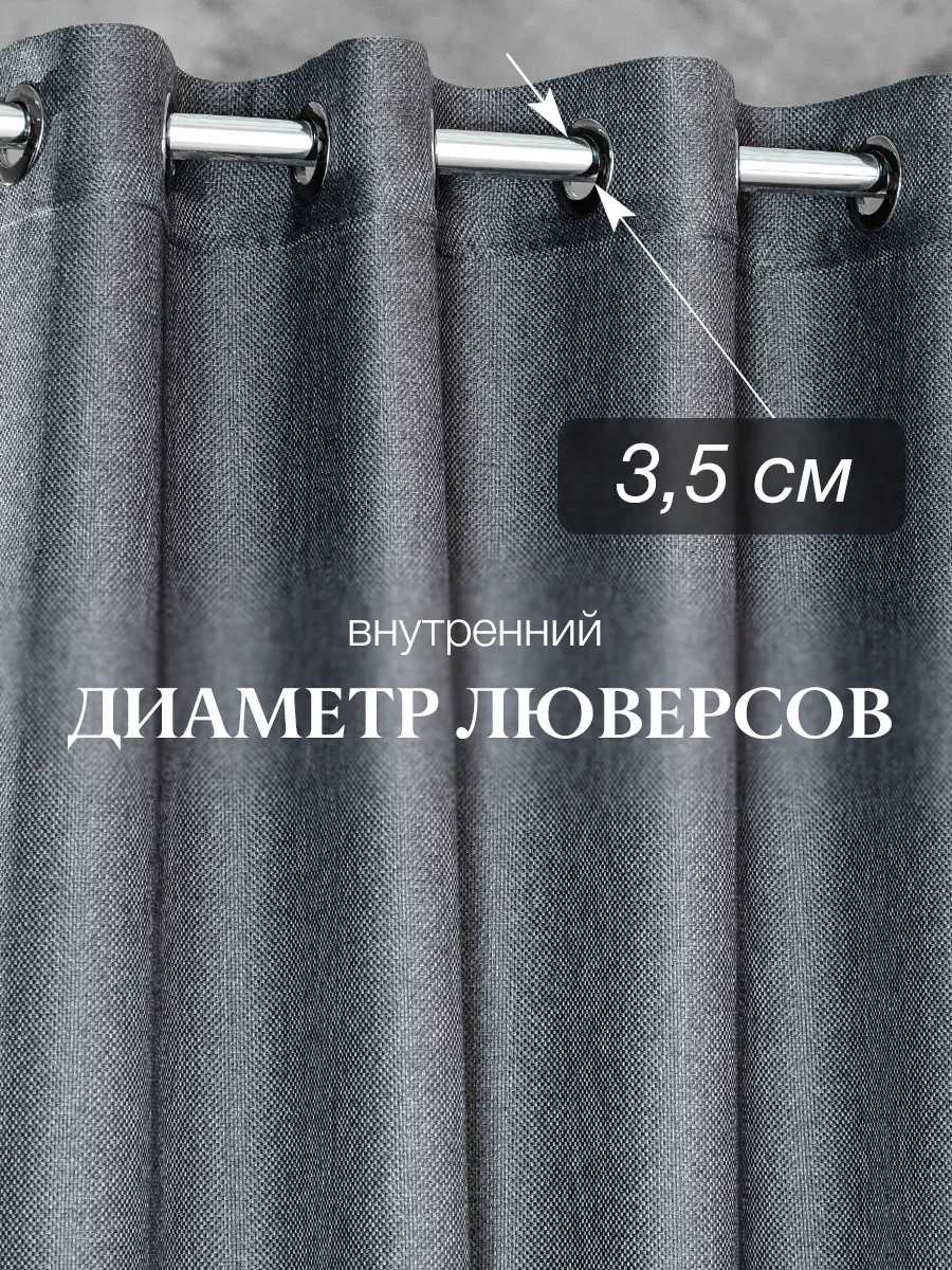 Шторы блэкаут Рогожка на люверсах. Штора плотная, устойчивая к выгоранию, хорошо затемняет комнату. Рогожка это прочная ткань, имеющая высокую степень износоустойчивости, прекрасно держит форму. Шторы с имитацией льна выглядят фактурно, стильно, привносят в интерьер неповторимый колорит и завершенность. Плотные занавески подойдут для любителей минимализма, экостиля, замечательно впишутся в лофт. Эта штора для окна сохранит приятный микроклимат в комнате (летом прохладу, зимой тепло). В ночное время шторы обеспечат защиту от ярких фонарей, фар, рекламных баннеров. Перед обычными занавесками у штор на люверсах есть несколько преимуществ. Во-первых, это удобно – надеть штору на гардину или карниз – сущий пустяк, а еще они очень легко открываются и закрываются, так как кольца великолепно скользят по карнизу.