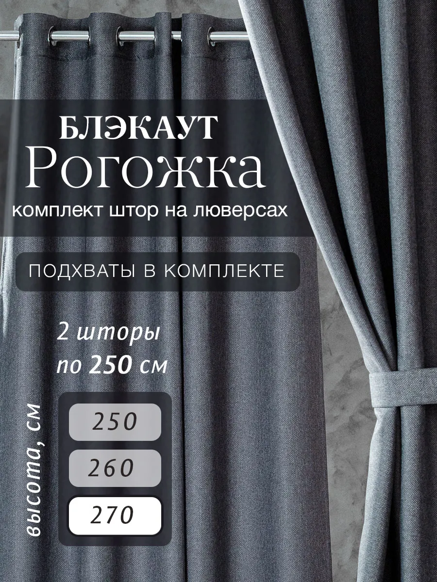 Шторы блэкаут Рогожка на люверсах. Штора плотная, устойчивая к выгоранию, хорошо затемняет комнату. Рогожка это прочная ткань, имеющая высокую степень износоустойчивости, прекрасно держит форму. Шторы с имитацией льна выглядят фактурно, стильно, привносят в интерьер неповторимый колорит и завершенность. Плотные занавески подойдут для любителей минимализма, экостиля, замечательно впишутся в лофт. Эта штора для окна сохранит приятный микроклимат в комнате (летом прохладу, зимой тепло). В ночное время шторы обеспечат защиту от ярких фонарей, фар, рекламных баннеров. Перед обычными занавесками у штор на люверсах есть несколько преимуществ. Во-первых, это удобно – надеть штору на гардину или карниз – сущий пустяк, а еще они очень легко открываются и закрываются, так как кольца великолепно скользят по карнизу.