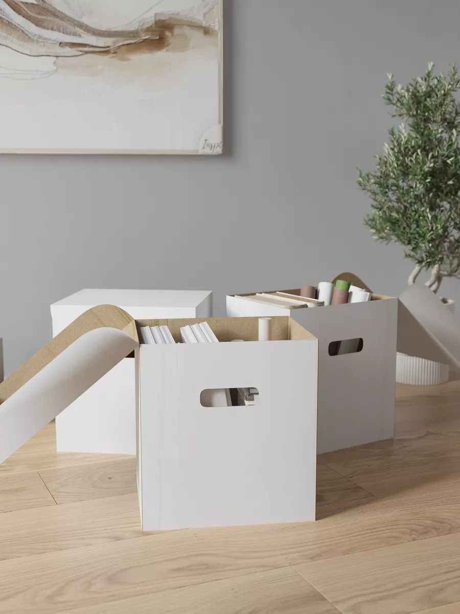 Картонные коробки с крышкой – отличный вариант для хранения ваших вещей и документов. Архивный картонный короб поможет удобно организовать хранение и навести порядок в доме. Обратите внимание, что в комплекте идут 3 шт. Коробки складные для хранения сделаны из гофрокартона повышенной прочности. Удобные ручки по бокам позволят удобно перемещать содержимое. Так же удобно, что на коробке можно делать надписи и ставить их друг на друга. Кроме организации хранения, коробки могут стать отличным помощником в переезде или для гаражного хранения. Однотонный белый цвет самосборного короба впишется в любой интерьер и подойдет для упаковки объемных подарков. Еще одним преимуществом является возможность быстро собрать и разобрать коробку. Размер коробки подобран так, что удобно вмещается во многие стеллажи нашего бренда. Чтобы посмотреть весь ассортимент – просто нажмите на логотип.