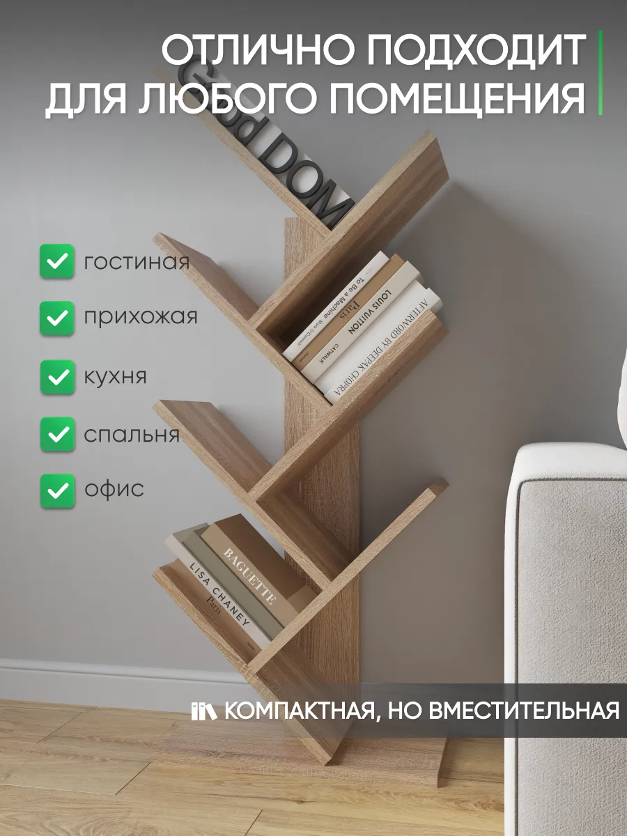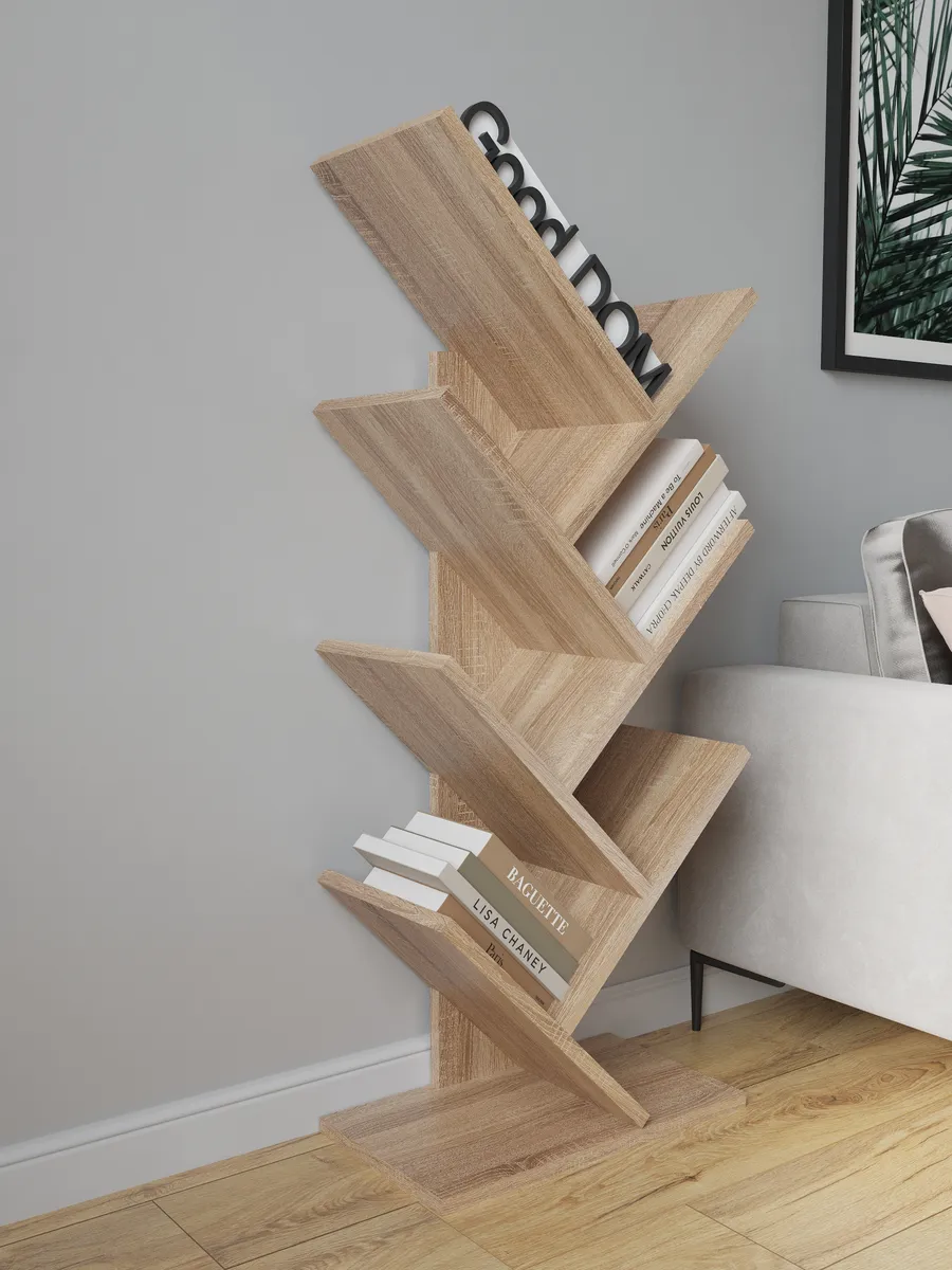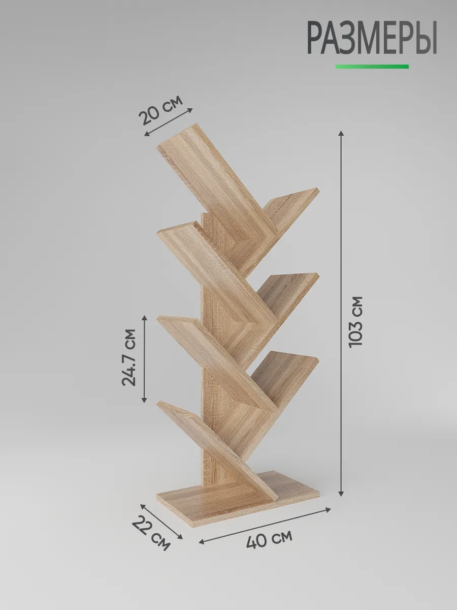 Напольная книжная полка "Елка"поможет вам хранить книги, журналы, учебники, тетради всегда под рукой. Стеллаж с полками - это отличный вариант мебели для тех, кому нужно иметь литературу или учебные материалы в постоянном доступе. На деревянном стеллаже можно расположить свои любимые художественные произведения в гостиной, чтобы в любой момент взять любую книгу и перечитать - удобная мебельная стенка. Можно заказать такой книжный шкаф для книг в детскую комнату, подростка, школьника или студента - получится удобный шкаф для книг и учебников. В этом случае учебная литература не будет валяться в беспорядке по столам и подоконникам, а будет аккуратно стоять на напольной полке. Такая мини стенка для гостиной впишется в любой интерьер. Шкаф белый в детскую точно порадует вас и ребенка, поможет имет все любимые книги под рукой. Книжный шкаф напольный не займет много места, поскольку полка для книг "растет" вверх. Выделите ей немного пространства на полу, и вы удивитесь, сколько книг и журналов уместит полка напольная книжная! Полочка для книг легко собирается и устойчива. Цвета: белый, орех, дуб сонома, дуб атланта. Размеры стелажа для книг: высота - 103 см, ширина - 40 см, глубина - 22 см.