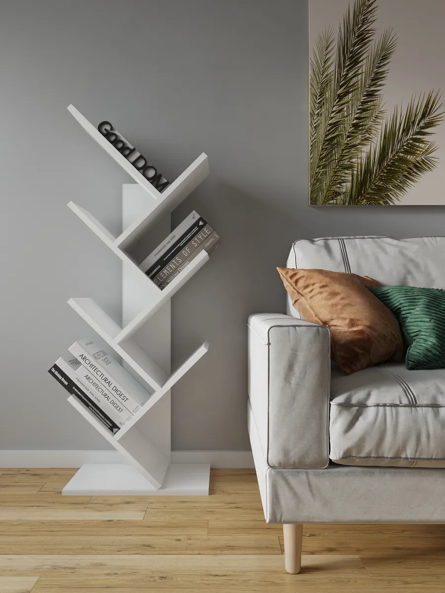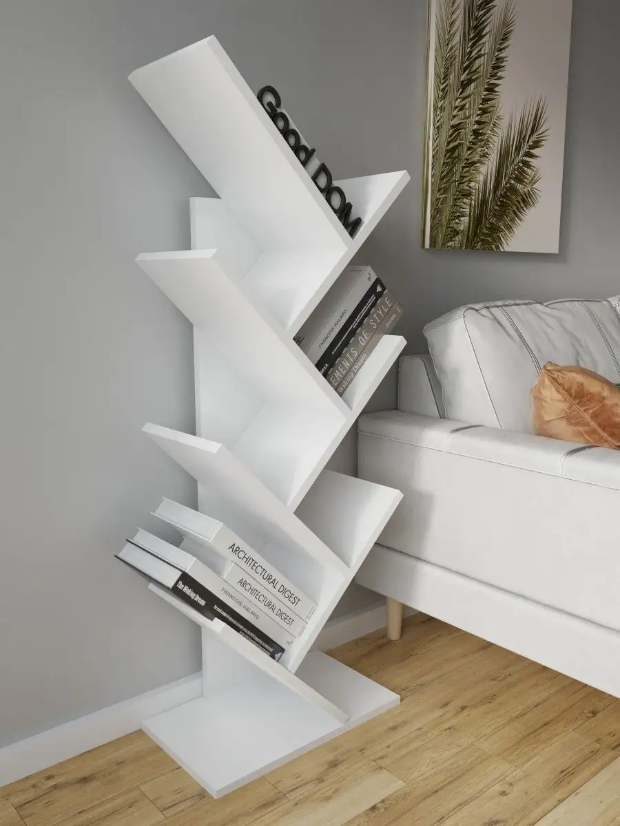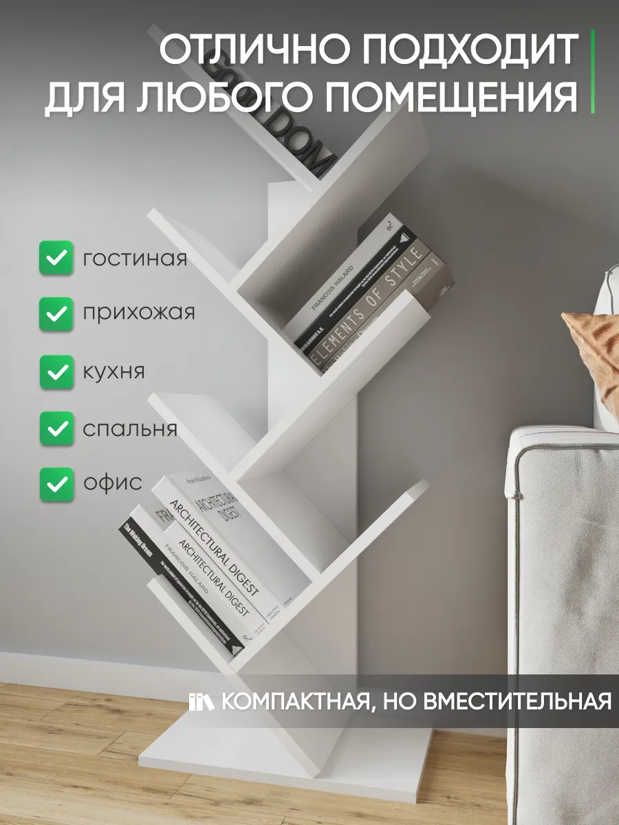 Напольная книжная полка – это функциональное мебельное изделие для грамотного хранения и организации книг, учебников, предметов интерьера и мелких штучек в комнате. Такой шкаф станет отличным решением для гостиной, детской или комнаты подростка, благодаря универсальному дизайну мебель удобно разместить у стены, создавая уют и визуально дополняя интерьер. Этажерка подходит для студентов, школьников и детей, обеспечивая легкий доступ к любимым книгам и учебным материалам. Конструкция предусматривает полочку и шкафчик для компактного размещения разных вещей и позволяет использовать ее как мини стеллаж, органично вписываясь в спальню, домашний кабинет или общую жилую зону. Белый цвет добавляет современный дизайнерский вид, а деревянный материал обеспечивает прочность и долговечность изделия. Легкая по весу, полочная мебель не требует сложного сверления или крепления – ее можно поставить прямо на пол или половую поверхность, что удобно для быстрой смены обстановки и перестановки в комнате.