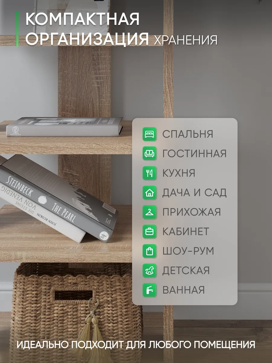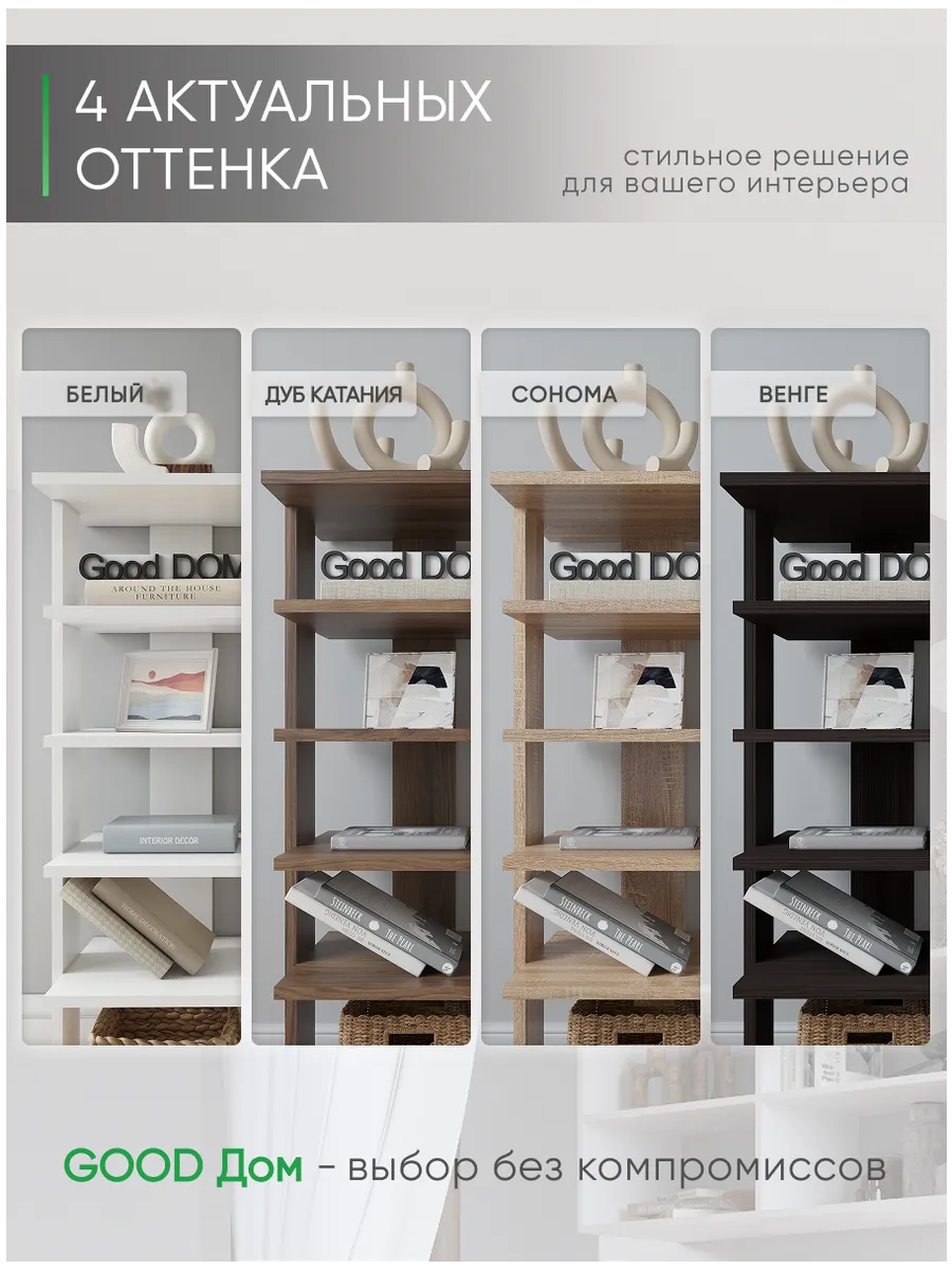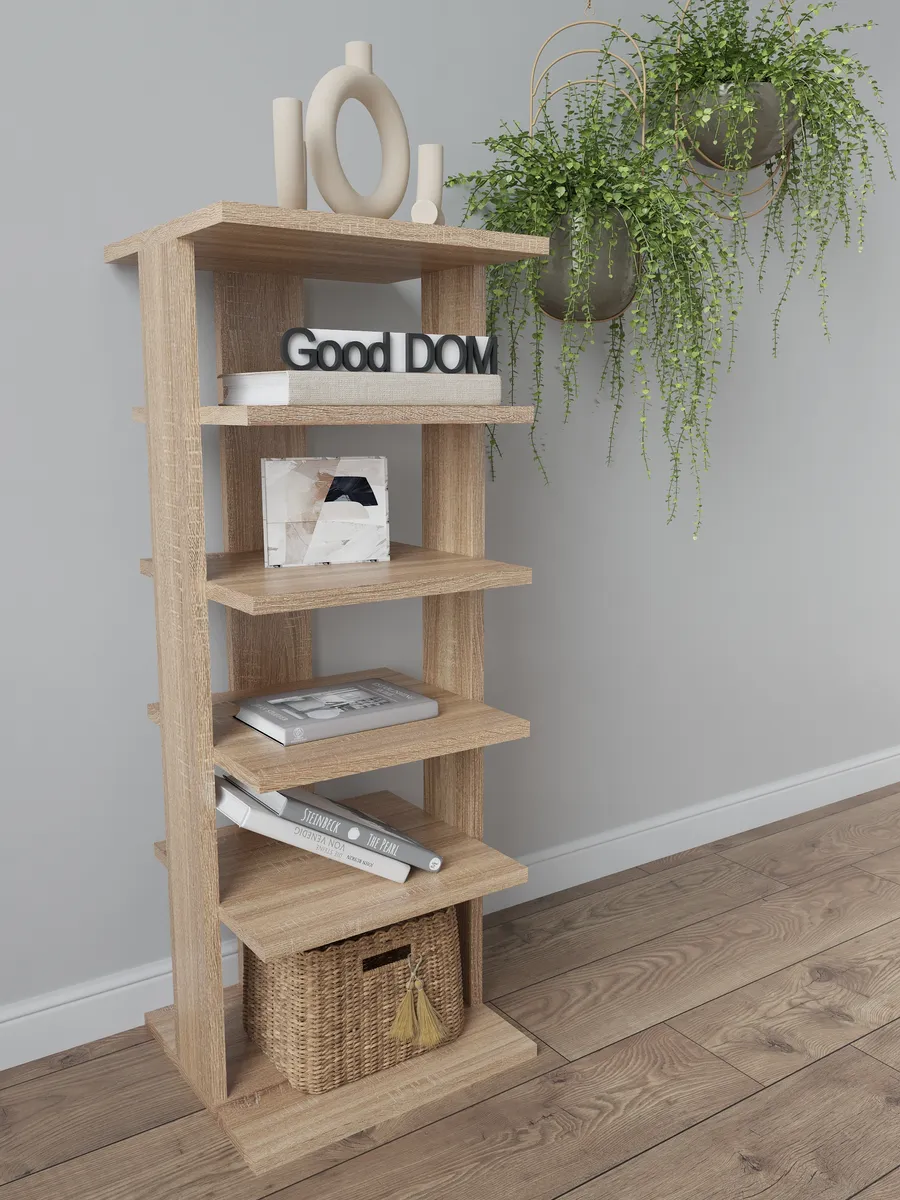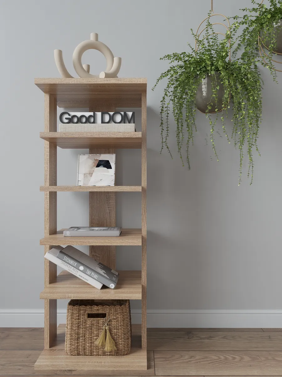 Многофункциональная мебель от бренда Good дом, все в Дом отличается своей универсальностью как и напольная полка. Многообразие цветов позволяет подобрать полку именно под Ваш интерьер, а открытые полки позволяют сделать любой цветовой акцент: разместить на полочках яркие детали, создать в помещении настроение. Полка для книг не только мебель, но и декор для любого помещения Вашего дома, квартиры, дачи, офиса. В прихожей можно хранить любую мелочь, небольшие сумочки, домашнюю обувь, а верхнюю полочку использовать для стационарного телефона, роутера. Хорошо впишется и в детскую комнату: для хранения книг со сказками или учебников, стелаж для игрушек, конструкторов, настольных игр. В гостиной используется как стеллаж для книг, фотографий, цветов. Универсальная полка позволяет экспериментировать с применением и назначением - ведь она выполняет действительно любую функцию: будь то стеллаж для книг, полка для косметики, для контейнеров с ватными дисками и ушными палочками, полка на кухню для специй, бумажных полотенец и прочего, полка для цветов или рассады. Легкий и прочный материал ЛДСП прост в уходе, размеры полки: высота - 95 см, ширина - 33,5 см, глубина - 30,5 см, вес - 9,2 кг, 5 отделений. Расстояние между полками: 16-21 см, толщина полок: 1,6 см. Имеется необходимый набор фурнитуры и подробная инструкция по сборке.