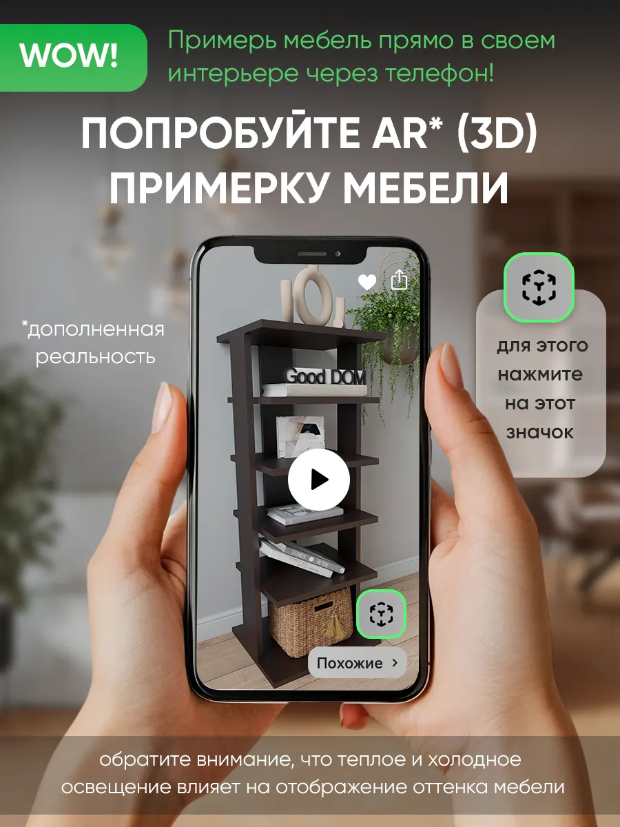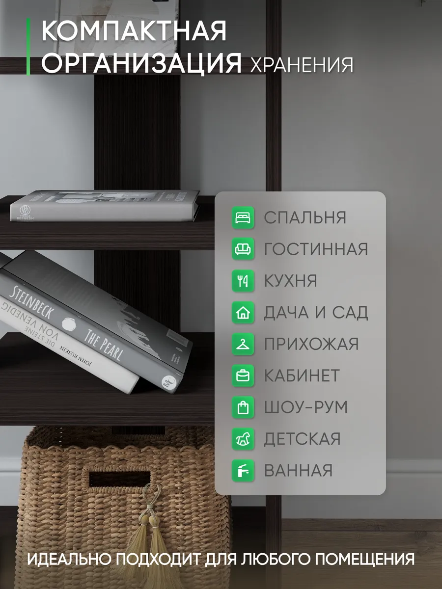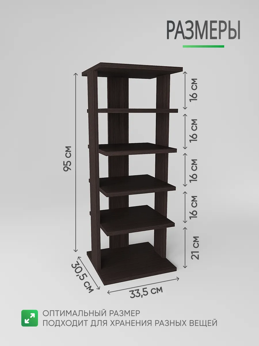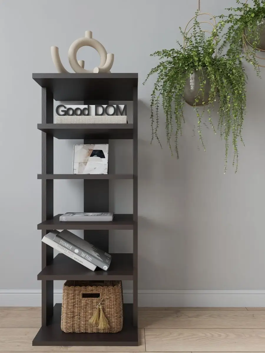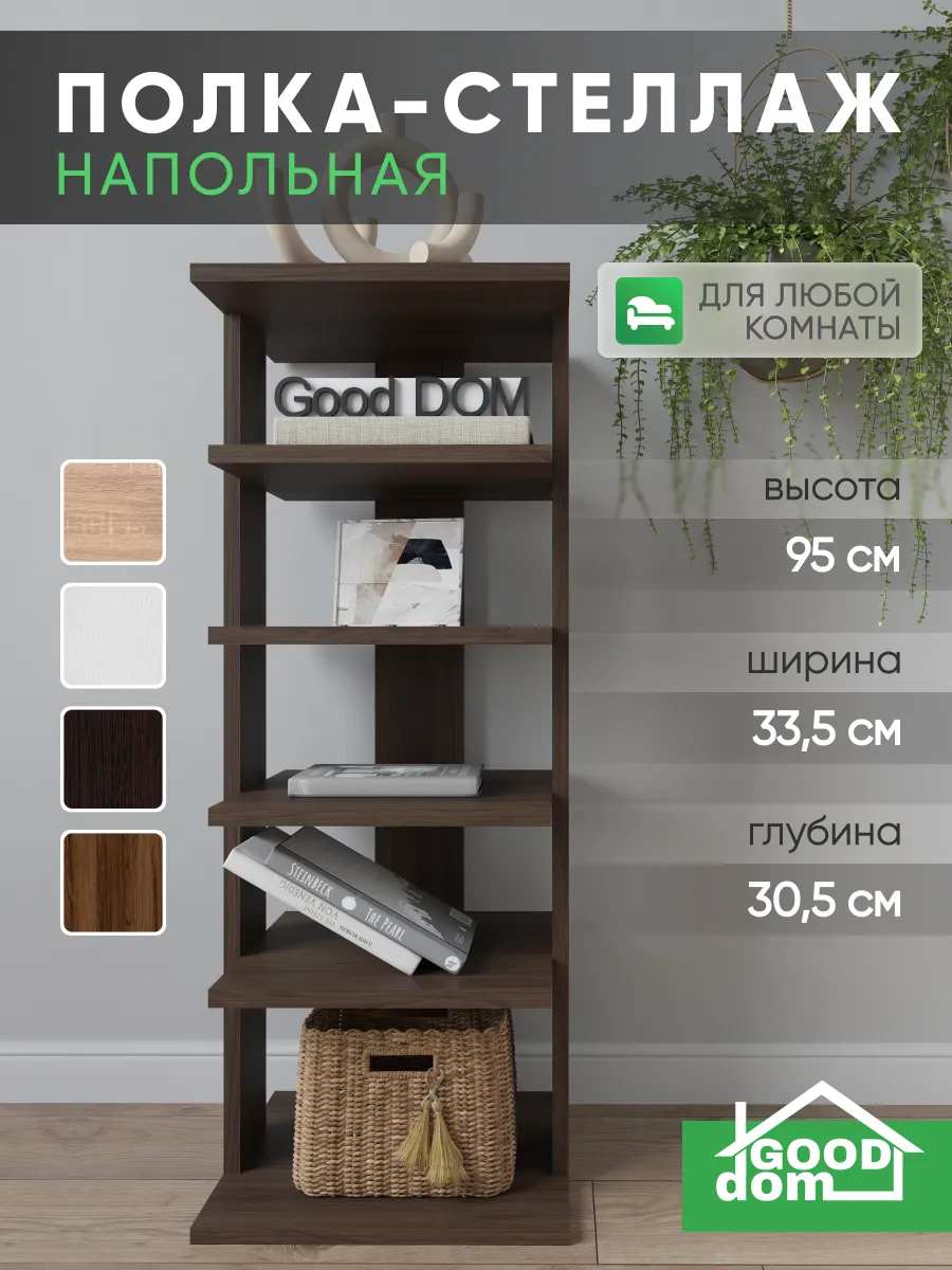 Многофункциональная мебель от бренда Good дом, все в Дом отличается своей универсальностью как и напольная полка. Многообразие цветов позволяет подобрать полку именно под Ваш интерьер, а открытые полки позволяют сделать любой цветовой акцент: разместить на полочках яркие детали, создать в помещении настроение. Полка для книг не только мебель, но и декор для любого помещения Вашего дома, квартиры, дачи, офиса. В прихожей можно хранить любую мелочь, небольшие сумочки, домашнюю обувь, а верхнюю полочку использовать для стационарного телефона, роутера. Хорошо впишется и в детскую комнату: для хранения книг со сказками или учебников, стелаж для игрушек, конструкторов, настольных игр. В гостиной используется как стеллаж для книг, фотографий, цветов. Универсальная полка позволяет экспериментировать с применением и назначением - ведь она выполняет действительно любую функцию: будь то стеллаж для книг, полка для косметики, для контейнеров с ватными дисками и ушными палочками, полка на кухню для специй, бумажных полотенец и прочего, полка для цветов или рассады. Легкий и прочный материал ЛДСП прост в уходе, размеры полки: высота - 95 см, ширина - 33,5 см, глубина - 30,5 см, вес - 9,2 кг, 5 отделений. Расстояние между полками: 16-21 см, толщина полок: 1,6 см. Имеется необходимый набор фурнитуры и подробная инструкция по сборке.