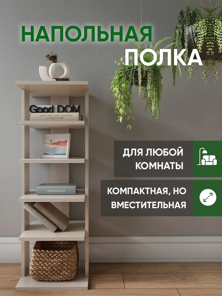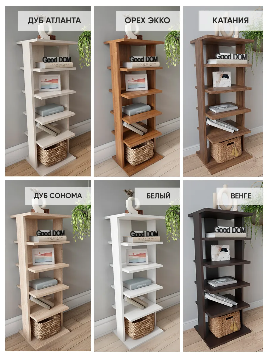 Многофункциональная мебель от бренда Good дом, все в Дом отличается своей универсальностью как и напольная полка. Многообразие цветов позволяет подобрать полку именно под Ваш интерьер, а открытые полки позволяют сделать любой цветовой акцент: разместить на полочках яркие детали, создать в помещении настроение. Полка для книг не только мебель, но и декор для любого помещения Вашего дома, квартиры, дачи, офиса. В прихожей можно хранить любую мелочь, небольшие сумочки, домашнюю обувь, а верхнюю полочку использовать для стационарного телефона, роутера. Хорошо впишется и в детскую комнату: для хранения книг со сказками или учебников, стелаж для игрушек, конструкторов, настольных игр. В гостиной используется как стеллаж для книг, фотографий, цветов. Универсальная полка позволяет экспериментировать с применением и назначением - ведь она выполняет действительно любую функцию: будь то стеллаж для книг, полка для косметики, для контейнеров с ватными дисками и ушными палочками, полка на кухню для специй, бумажных полотенец и прочего, полка для цветов или рассады. Легкий и прочный материал ЛДСП прост в уходе, размеры полки: высота - 95 см, ширина - 33,5 см, глубина - 30,5 см, вес - 9,2 кг, 5 отделений. Расстояние между полками: 16-21 см, толщина полок: 1,6 см. Имеется необходимый набор фурнитуры и подробная инструкция по сборке.