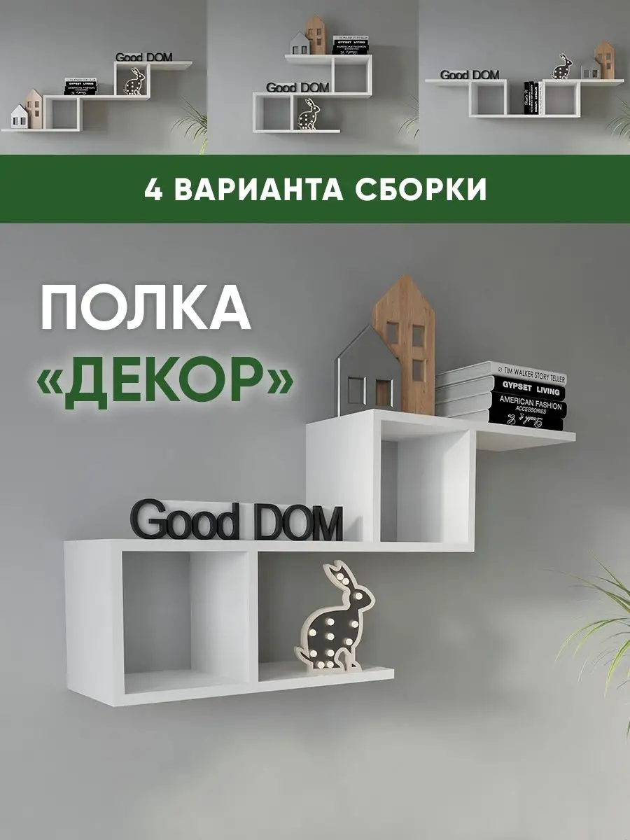 Полка настенная “Декор” – это мебель трансформер. Полка двухъярусная с секциями имеет 4 варианта сборки, что позволит выбрать вариант навесной полки, подходящий именно Вам. Полка универсальна, подходит в любое помещение: спальня, прихожая, коридор, гостиная, детская. Наша полка на стену с легкостью заменит громоздкую стенку в гостиной, стеллаж или комод. Полка белая отлично впишется в детскую комнату для игрушек, картин, фотографий, детских книжек, как полка для кухни подойдёт для хранения посуды, специй, банок, растений на кухне (кухонная полка), как полка для икон. Подвесная полка превосходно будет смотреться и в кабинете как полка настенная книжная или для цветов. На балкон - для инструментов или для рассады Полочка может стать полкой под цветы, стенкой в спальню, полкой для книг, уместит на себе вещи для декора комнаты – полочка декоративная. Полка в прихожую поможет разместить головные уборы, зонтики, сумки, письма, документы, для роутера. Полку можно использовать в салоне – полка для лаков, для косметики, как витринную полку для продажи товара. Мебельная полка украсит абсолютно любой интерьер, а палитра поможет выбрать шкаф навесной под Ваш существующий интерьер. Полка легко собирается, вес необходимый комплект фурнитуры для сборки идёт в комплекте. Полка-трансформер очень интересное решение, теперь чтобы освежить пространство не обязательно покупать новую мебель, достаточно поменять сборку и помещение заиграет по новому. Легкий материал полки ЛДСП практичен, долговечен и прост в уходе. В нашем ассортименте представлена другая мебель интересных и практичных моделей – вы можете легко посмотреть весь ассортимент, щелкнув на значок логотипа. Мы постоянно работаем над качеством нашей продукции, поэтому улучшили упаковку - наша УСИЛЕННАЯ УПАКОВКА ЗАЩИТИТ Вашу полку при доставке ОТ СЛОМАННЫХ УГЛОВ и СКОЛОВ!