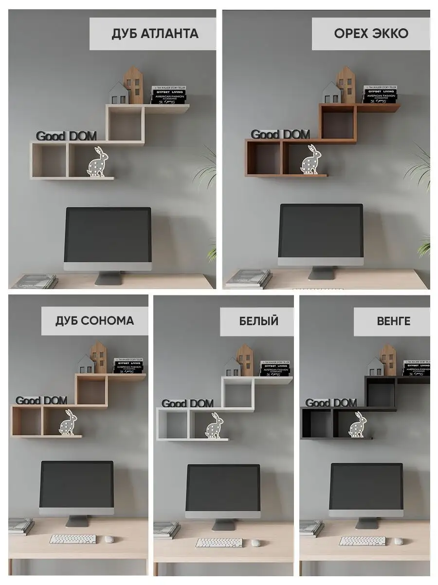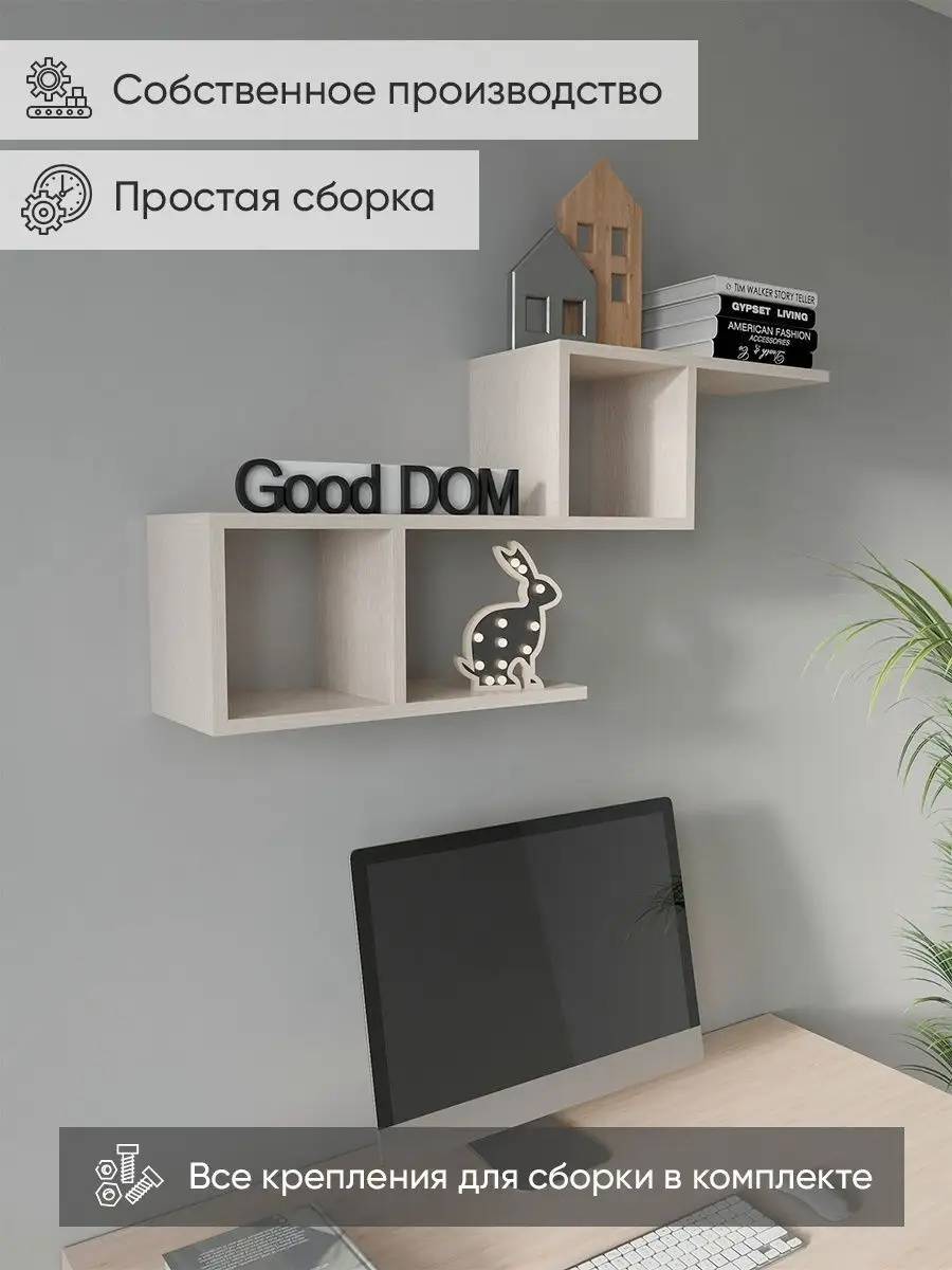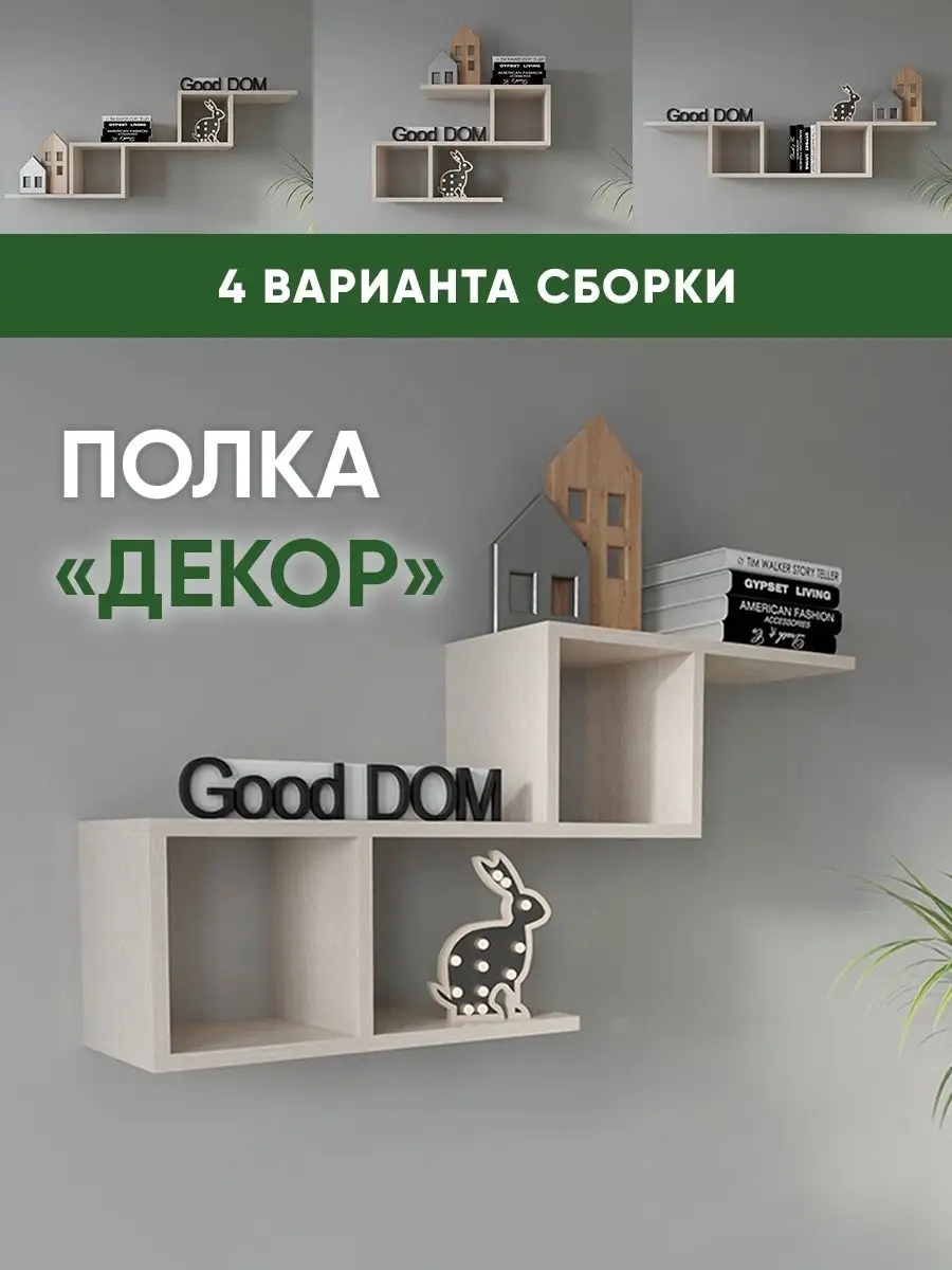 Полка настенная “Декор” – это мебель трансформер. Полка двухъярусная с секциями имеет 4 варианта сборки, что позволит выбрать вариант навесной полки, подходящий именно Вам. Полка универсальна, подходит в любое помещение: спальня, прихожая, коридор, гостиная, детская. Наша полка на стену с легкостью заменит громоздкую стенку в гостиной, стеллаж или комод. Полка белая отлично впишется в детскую комнату для игрушек, картин, фотографий, детских книжек, как полка для кухни подойдёт для хранения посуды, специй, банок, растений на кухне (кухонная полка), как полка для икон. Подвесная полка превосходно будет смотреться и в кабинете как полка настенная книжная или для цветов. На балкон - для инструментов или для рассады Полочка может стать полкой под цветы, стенкой в спальню, полкой для книг, уместит на себе вещи для декора комнаты – полочка декоративная. Полка в прихожую поможет разместить головные уборы, зонтики, сумки, письма, документы, для роутера. Полку можно использовать в салоне – полка для лаков, для косметики, как витринную полку для продажи товара. Мебельная полка украсит абсолютно любой интерьер, а палитра поможет выбрать шкаф навесной под Ваш существующий интерьер. Полка легко собирается, вес необходимый комплект фурнитуры для сборки идёт в комплекте. Полка-трансформер очень интересное решение, теперь чтобы освежить пространство не обязательно покупать новую мебель, достаточно поменять сборку и помещение заиграет по новому. Легкий материал полки ЛДСП практичен, долговечен и прост в уходе. В нашем ассортименте представлена другая мебель интересных и практичных моделей – вы можете легко посмотреть весь ассортимент, щелкнув на значок логотипа. Мы постоянно работаем над качеством нашей продукции, поэтому улучшили упаковку - наша УСИЛЕННАЯ УПАКОВКА ЗАЩИТИТ Вашу полку при доставке ОТ СЛОМАННЫХ УГЛОВ и СКОЛОВ!
