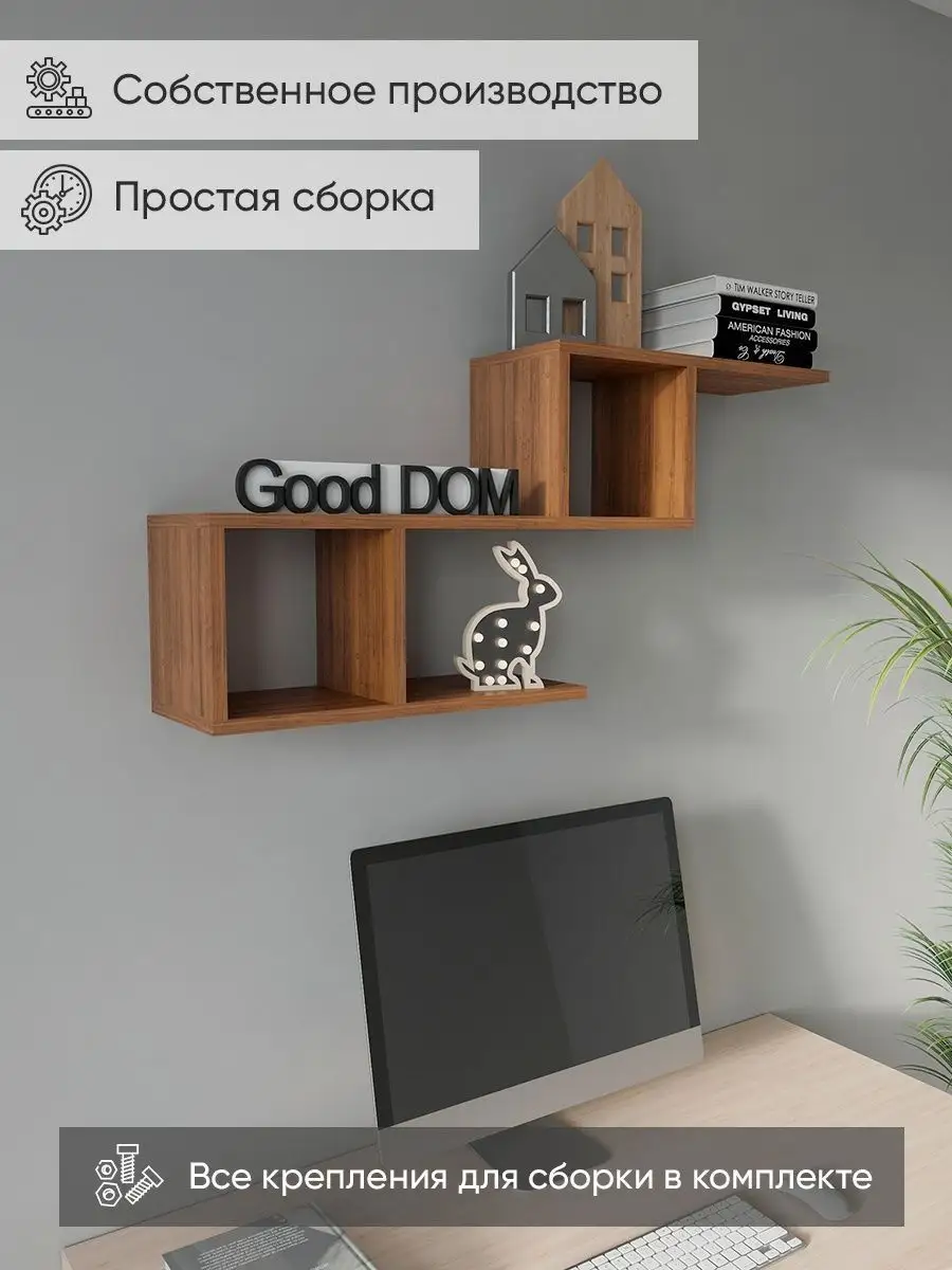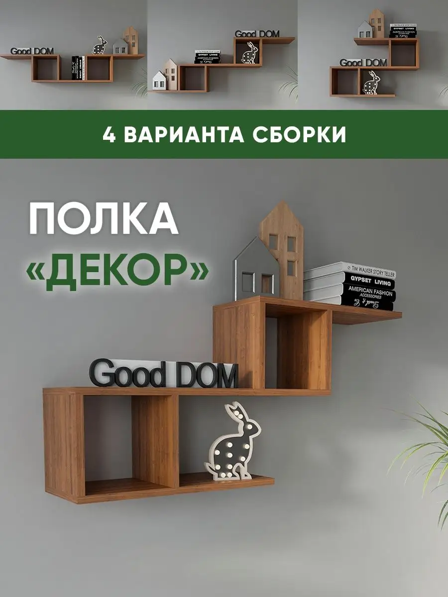 Полка настенная “Декор” – это мебель трансформер. Полка двухъярусная с секциями имеет 4 варианта сборки, что позволит выбрать вариант навесной полки, подходящий именно Вам. Полка универсальна, подходит в любое помещение: спальня, прихожая, коридор, гостиная, детская. Наша полка на стену с легкостью заменит громоздкую стенку в гостиной, стеллаж или комод. Полка белая отлично впишется в детскую комнату для игрушек, картин, фотографий, детских книжек, как полка для кухни подойдёт для хранения посуды, специй, банок, растений на кухне (кухонная полка), как полка для икон. Подвесная полка превосходно будет смотреться и в кабинете как полка настенная книжная или для цветов. На балкон - для инструментов или для рассады Полочка может стать полкой под цветы, стенкой в спальню, полкой для книг, уместит на себе вещи для декора комнаты – полочка декоративная. Полка в прихожую поможет разместить головные уборы, зонтики, сумки, письма, документы, для роутера. Полку можно использовать в салоне – полка для лаков, для косметики, как витринную полку для продажи товара. Мебельная полка украсит абсолютно любой интерьер, а палитра поможет выбрать шкаф навесной под Ваш существующий интерьер. Полка легко собирается, вес необходимый комплект фурнитуры для сборки идёт в комплекте. Полка-трансформер очень интересное решение, теперь чтобы освежить пространство не обязательно покупать новую мебель, достаточно поменять сборку и помещение заиграет по новому. Легкий материал полки ЛДСП практичен, долговечен и прост в уходе. В нашем ассортименте представлена другая мебель интересных и практичных моделей – вы можете легко посмотреть весь ассортимент, щелкнув на значок логотипа. Мы постоянно работаем над качеством нашей продукции, поэтому улучшили упаковку - наша УСИЛЕННАЯ УПАКОВКА ЗАЩИТИТ Вашу полку при доставке ОТ СЛОМАННЫХ УГЛОВ и СКОЛОВ!
