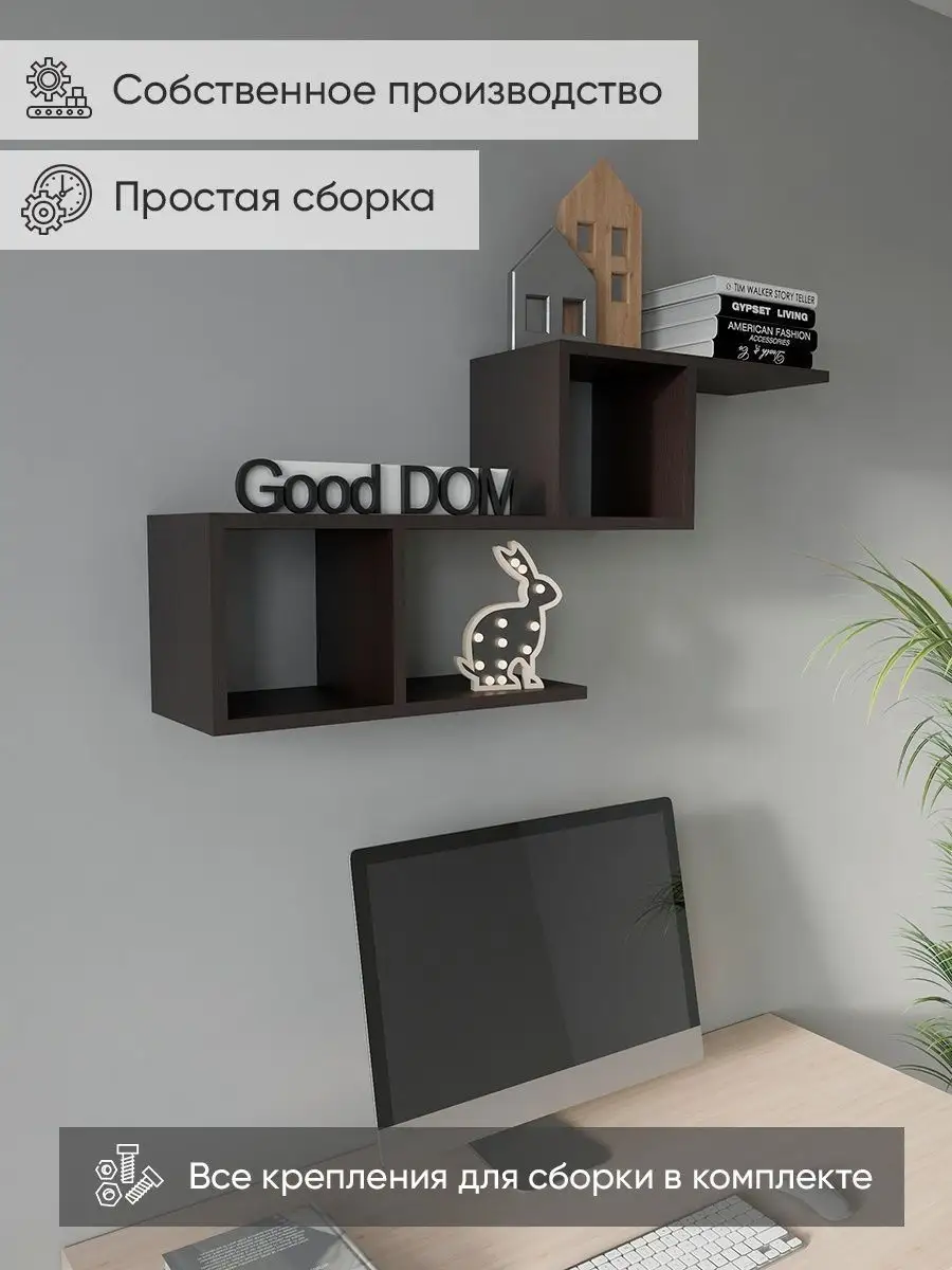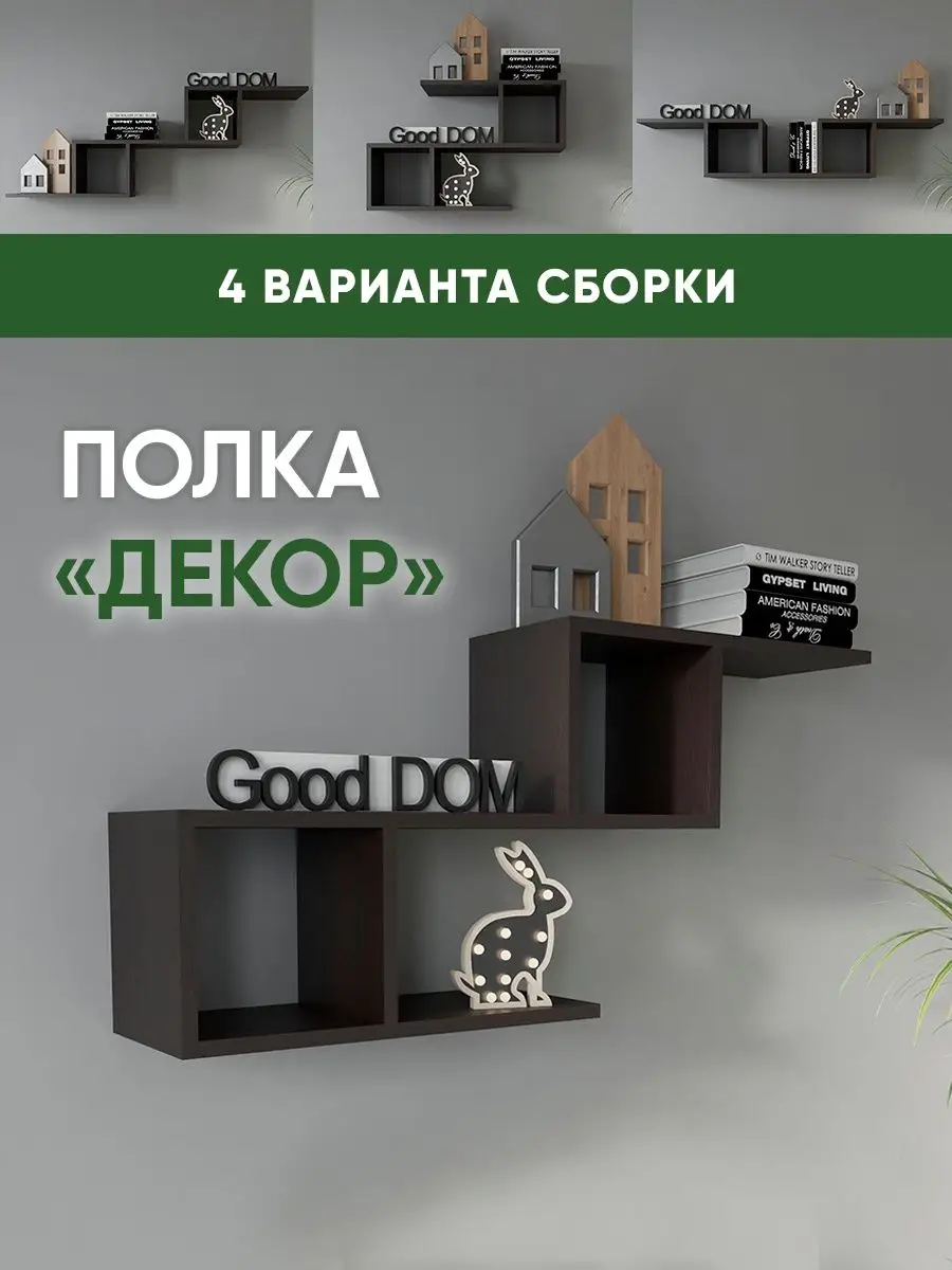 Полка настенная “Декор” – это мебель трансформер. Полка двухъярусная с секциями имеет 4 варианта сборки, что позволит выбрать вариант навесной полки, подходящий именно Вам. Полка универсальна, подходит в любое помещение: спальня, прихожая, коридор, гостиная, детская. Наша полка на стену с легкостью заменит громоздкую стенку в гостиной, стеллаж или комод. Полка белая отлично впишется в детскую комнату для игрушек, картин, фотографий, детских книжек, как полка для кухни подойдёт для хранения посуды, специй, банок, растений на кухне (кухонная полка), как полка для икон. Подвесная полка превосходно будет смотреться и в кабинете как полка настенная книжная или для цветов. На балкон - для инструментов или для рассады Полочка может стать полкой под цветы, стенкой в спальню, полкой для книг, уместит на себе вещи для декора комнаты – полочка декоративная. Полка в прихожую поможет разместить головные уборы, зонтики, сумки, письма, документы, для роутера. Полку можно использовать в салоне – полка для лаков, для косметики, как витринную полку для продажи товара. Мебельная полка украсит абсолютно любой интерьер, а палитра поможет выбрать шкаф навесной под Ваш существующий интерьер. Полка легко собирается, вес необходимый комплект фурнитуры для сборки идёт в комплекте. Полка-трансформер очень интересное решение, теперь чтобы освежить пространство не обязательно покупать новую мебель, достаточно поменять сборку и помещение заиграет по новому. Легкий материал полки ЛДСП практичен, долговечен и прост в уходе. В нашем ассортименте представлена другая мебель интересных и практичных моделей – вы можете легко посмотреть весь ассортимент, щелкнув на значок логотипа. Мы постоянно работаем над качеством нашей продукции, поэтому улучшили упаковку - наша УСИЛЕННАЯ УПАКОВКА ЗАЩИТИТ Вашу полку при доставке ОТ СЛОМАННЫХ УГЛОВ и СКОЛОВ!