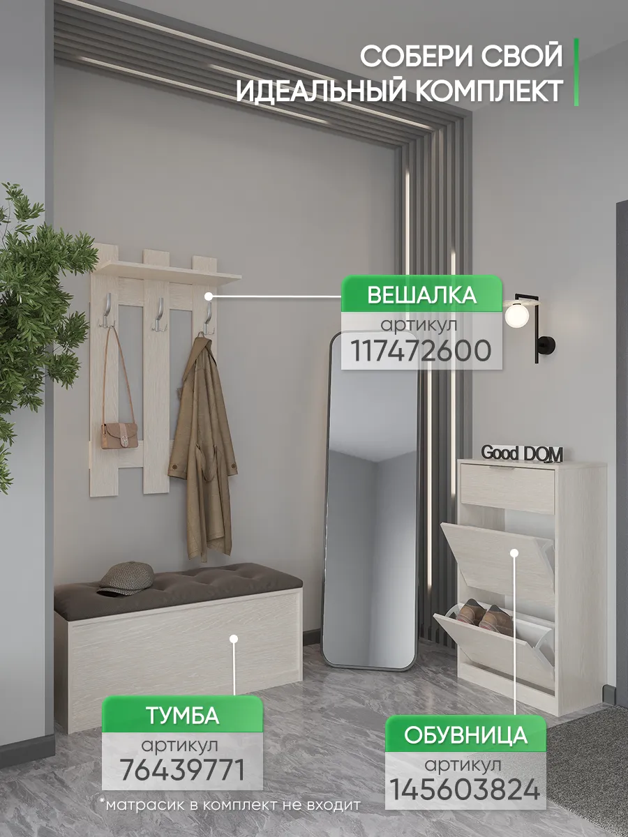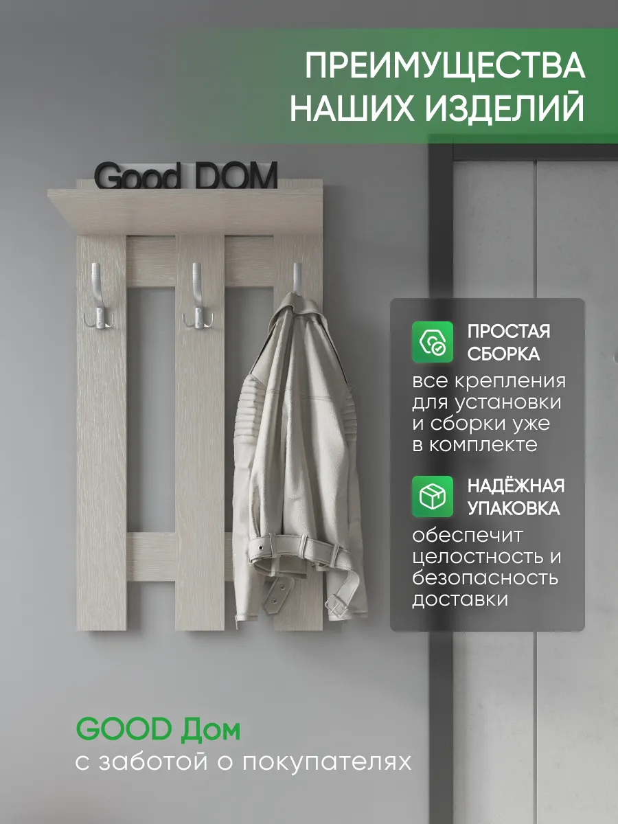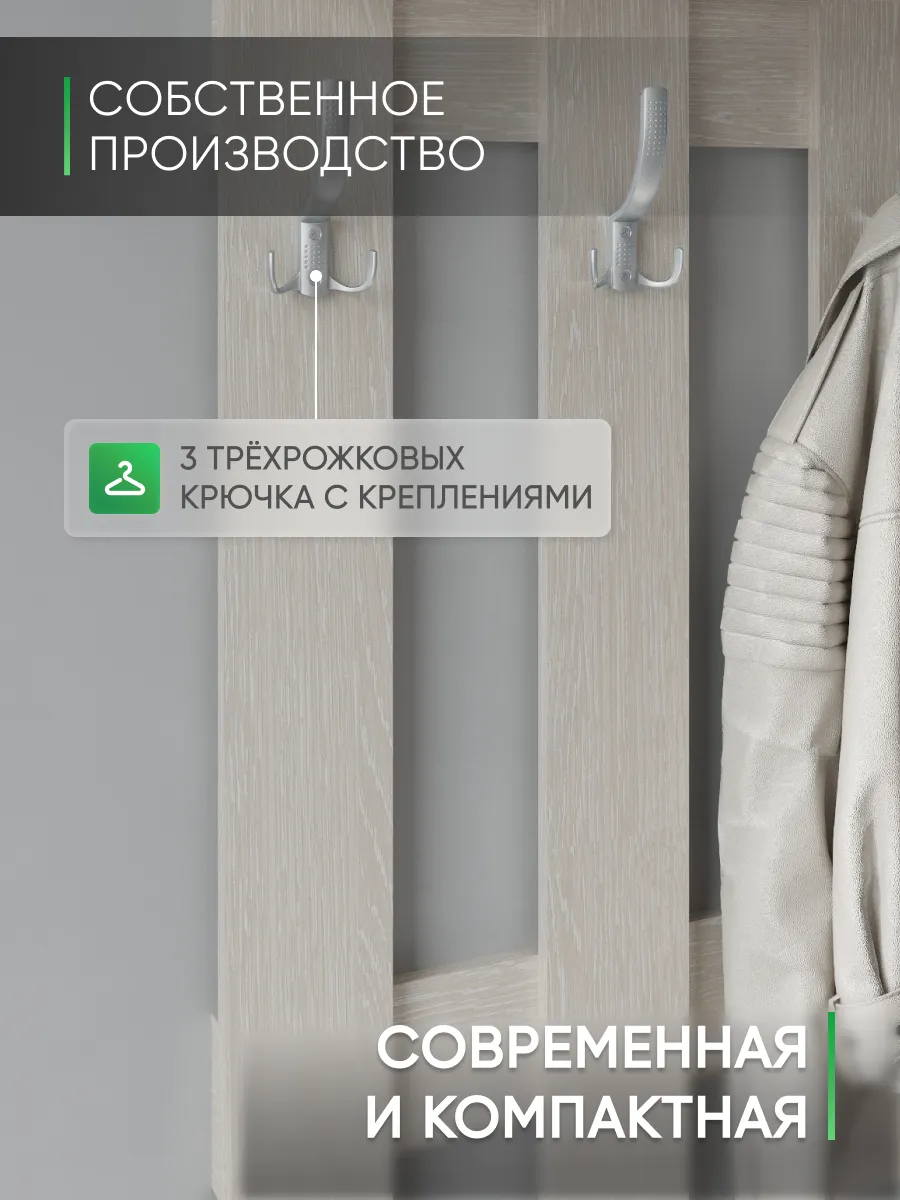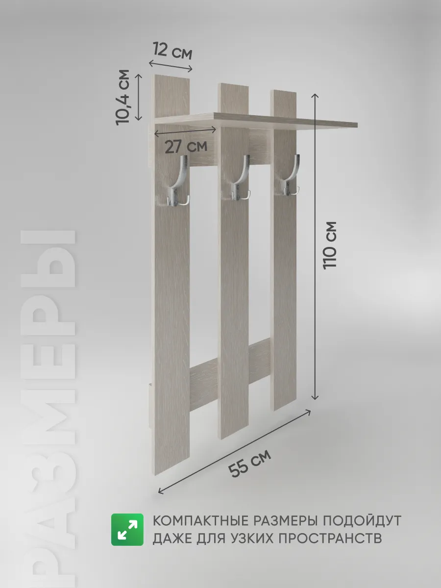 Эргономичная и практичная вешалка для одежды настенная в прихожую помогает решать сразу несколько задач. Прихожая мебель вешалка прекрасно вписывается в интерьер, не загромождает пространство и позволяет комфортно расположить верхнюю одежду и головные уборы. Компактный размер мебели в прихожую позволяет разместить вешалку даже в самой маленькой прихожей, при необходимости рядом можно повесить зеркало на стену. Вешалка в прихожую настенная идет в комплекте с необходимым комплектом фурнитуры. Крючки для одежды являются стильным дополнением вешалки на стену. На верхней навесной полке можно разместить головные уборы, шарфы, перчатки. Вешалка деревянная в коридор в летнее время становится вешалкой для сумок, рюкзаков, пляжных сумок. Вешалка с крючками на стену выполнена ЛДСП, цвета: белая, дуб сонома, орех, атланта, венге, дуб золотой, антрацит, дуб катания. Используемые материалы легки в уходе. Так же в нашем магазине Good дом, все в Дом вы можете подобрать другую мебель для прихожей этого же цвета и сохранить единый стиль.