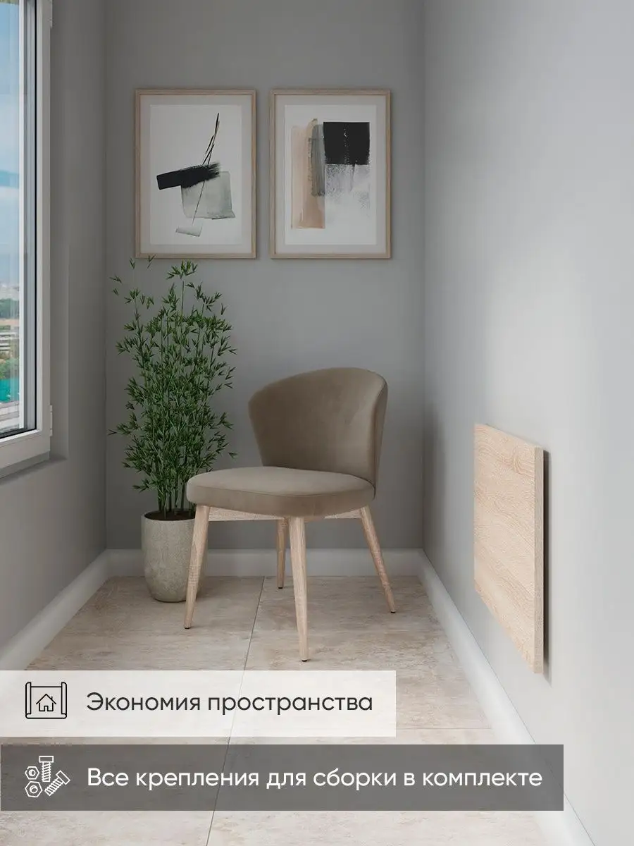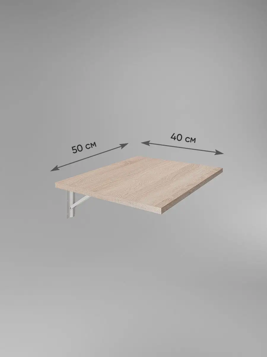 Откидной настенный стол “Сатурн” со своей конструкцией и креплениями к стене отлично подойдет в качестве мебели на кухню, балкон, в загородный дом (для дачи), в любую комнату. Отменное качество мебели может служить Вам долгое время в качестве обеденного, письменного, журнального, компьютерного стола. Стол откидной можно установить абсолютно в любое помещение, где Вам необходимо. Требуется лишь вертикальная поверхность, к которой он крепится надежными креплениями из стали. Конструкция стола позволяет выдерживать распределенную нагрузку до 50 кг. Поэтому складной стол настенный предполагает очень широкое применение. На кухне и даче на нем можно выполнять любые хозяйственные работы: резать продукты, месить тесто, ставить на него тяжелые кастрюли. В комнате за столом удобно писать, механизм для откидного стола обеспечивает легкий поворот и надежную фиксацию. Качественная, удобная и совсем недорогая конструкция решит ваши проблемы: не будет ни тесноты, ни обид. В небольших помещениях, таких как балкон и лоджия, можно организовать уютное место для отдыха, за столиком приятно попить чай или кофе, полистать журналы и почитать книги, газеты. В сложенном виде стол выглядит как просто дощечка, прижатая к стене, а в разложенном - удобная, прочная и многофункциональная поверхность. Стол на стену изготовлен из ЛДСП - материала крепкого, надежного и долговечного. Товар сертифицирован, соответствует ГОСТам, действует гарантия от производителя. В сложенном виде от стены до столешницы 3 см. + столешница 1,6 см.