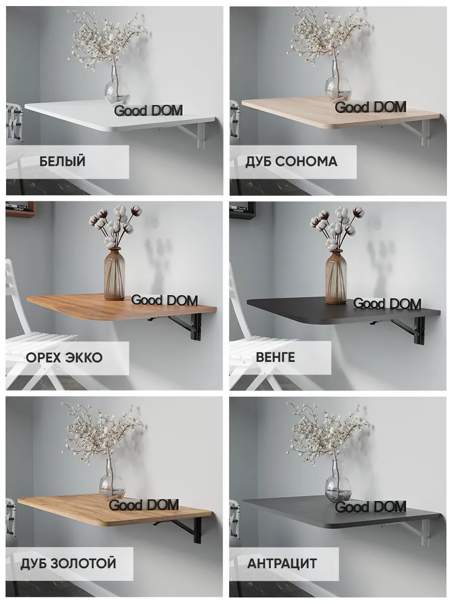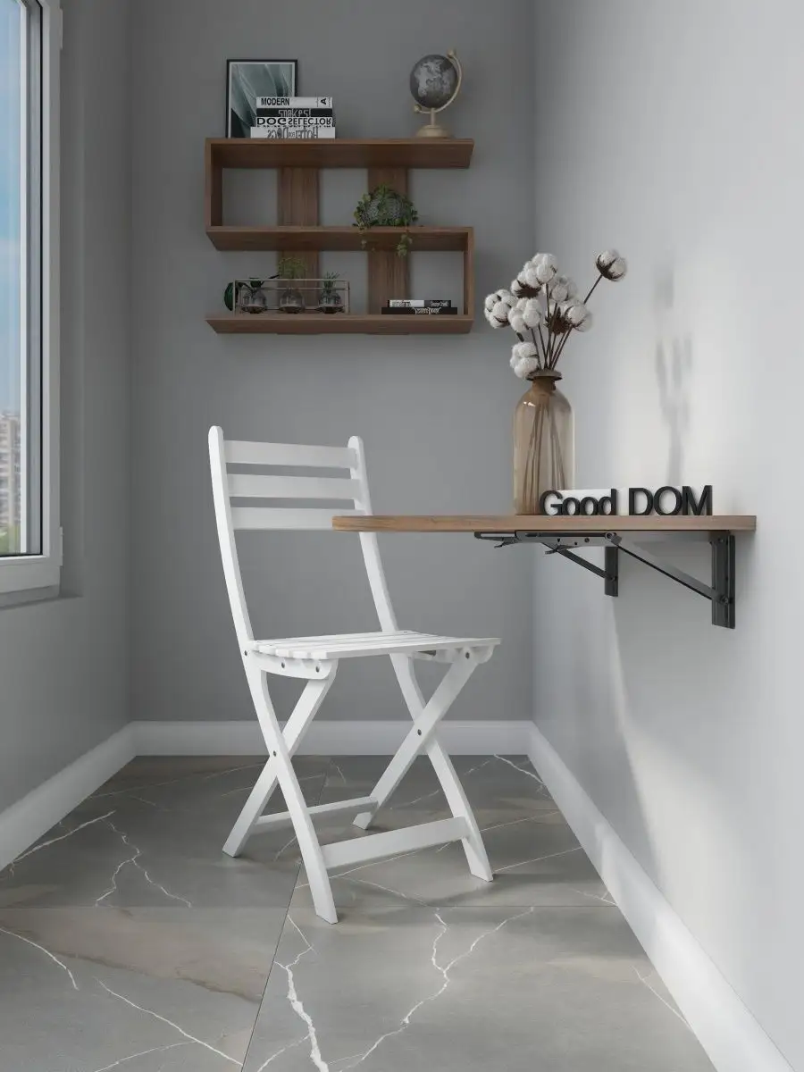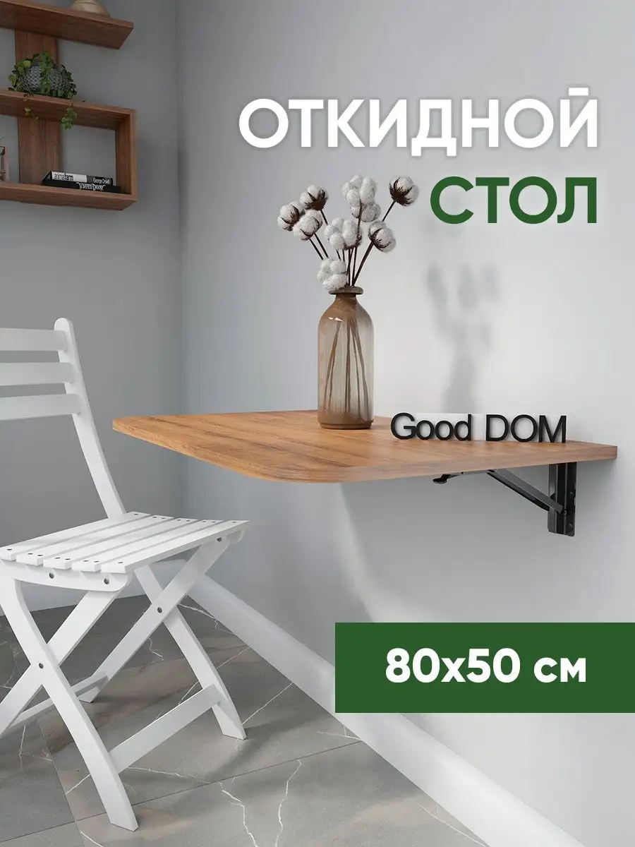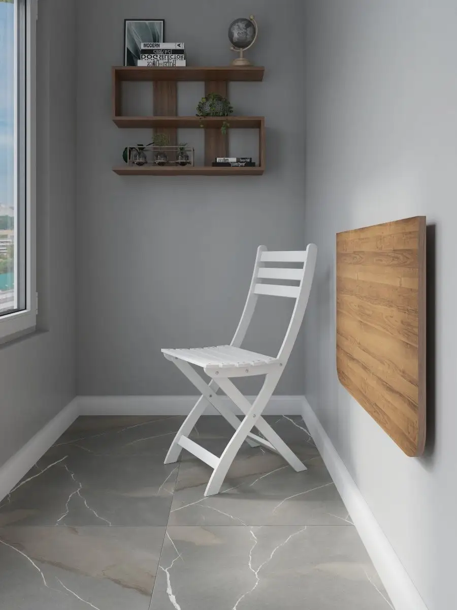 Откидной настенный стол “Сатурн” со своей конструкцией и креплениями к стене отлично подойдет в качестве мебели на кухню, балкон, в загородный дом (для дачи), в любую комнату. Отменное качество мебели может служить Вам долгое время в качестве обеденного, письменного, журнального, компьютерного стола. Стол откидной можно установить абсолютно в любое помещение, где Вам необходимо. Требуется лишь вертикальная поверхность, к которой он крепится надежными креплениями из стали. Конструкция стола позволяет выдерживать распределенную нагрузку до 50 кг. Поэтому складной стол настенный предполагает очень широкое применение. На кухне и даче на нем можно выполнять любые хозяйственные работы: резать продукты, месить тесто, ставить на него тяжелые кастрюли. В комнате за столом удобно писать, механизм для откидного стола обеспечивает легкий поворот и надежную фиксацию. Качественная, удобная и совсем недорогая конструкция решит ваши проблемы: не будет ни тесноты, ни обид. В небольших помещениях, таких как балкон и лоджия, можно организовать уютное место для отдыха, за столиком приятно попить чай или кофе, полистать журналы и почитать книги, газеты. В сложенном виде стол выглядит как просто дощечка, прижатая к стене, а в разложенном - удобная, прочная и многофункциональная поверхность. Стол на стену изготовлен из ЛДСП - материала крепкого, надежного и долговечного. Товар сертифицирован, соответствует ГОСТам, действует гарантия от производителя. В сложенном виде от стены до столешницы 3 см. + столешница 1,6 см.