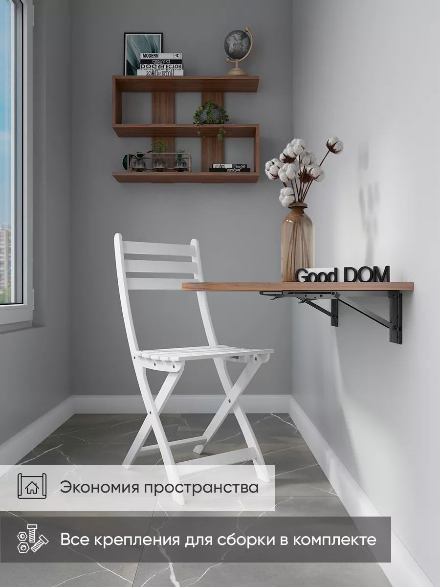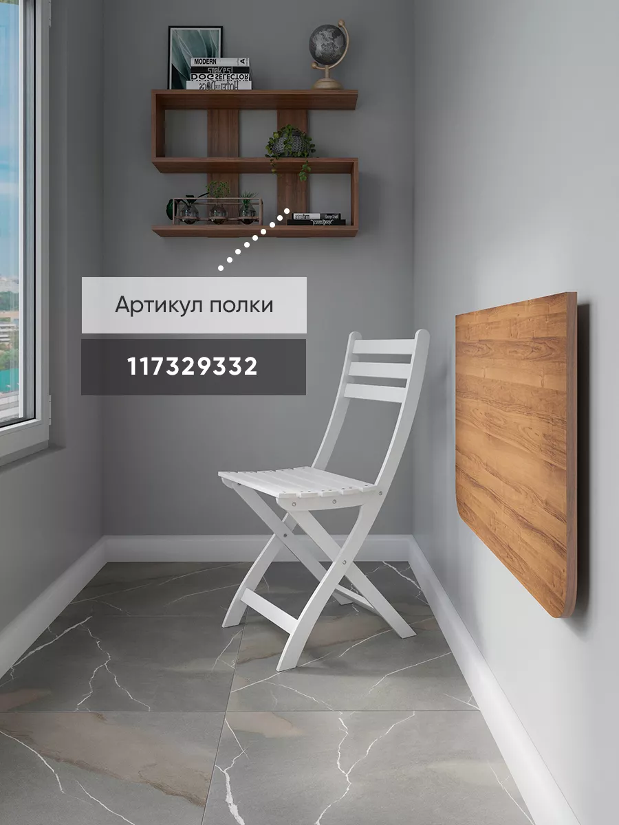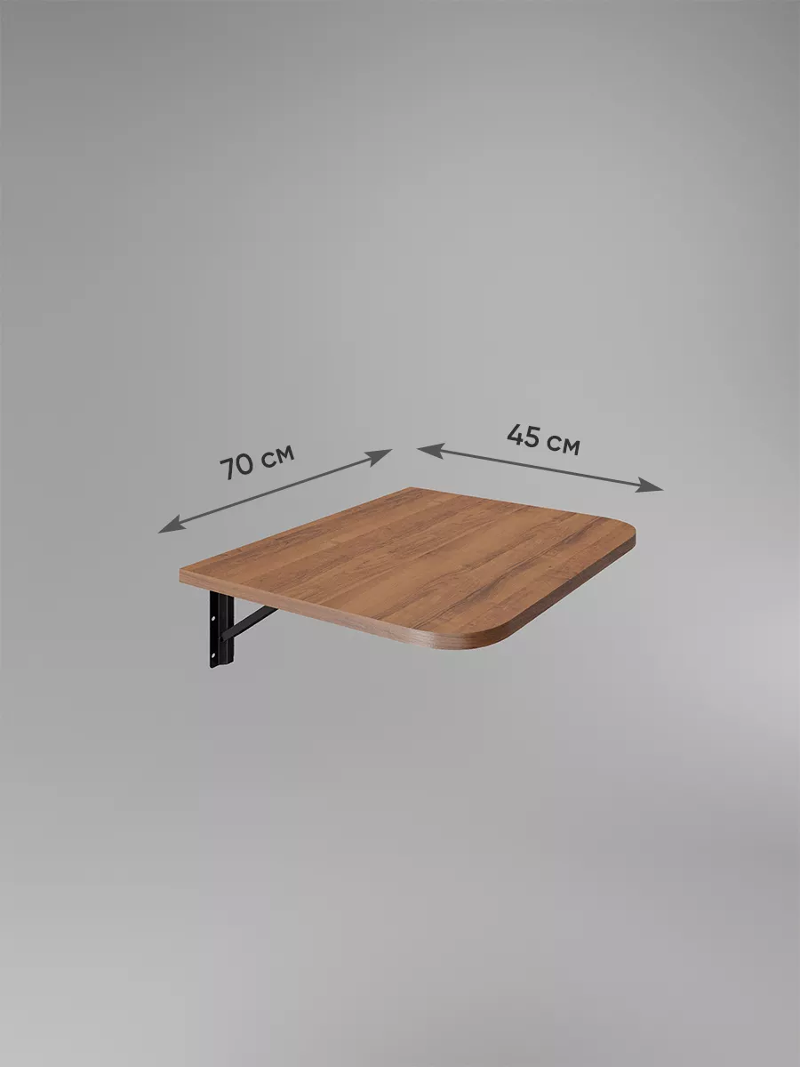 Откидной настенный стол “Сатурн” со своей конструкцией и креплениями к стене отлично подойдет в качестве мебели на кухню, балкон, в загородный дом (для дачи), в любую комнату. Отменное качество мебели может служить Вам долгое время в качестве обеденного, письменного, журнального, компьютерного стола. Стол откидной можно установить абсолютно в любое помещение, где Вам необходимо. Требуется лишь вертикальная поверхность, к которой он крепится надежными креплениями из стали. Конструкция стола позволяет выдерживать распределенную нагрузку до 50 кг. Поэтому складной стол настенный предполагает очень широкое применение. На кухне и даче на нем можно выполнять любые хозяйственные работы: резать продукты, месить тесто, ставить на него тяжелые кастрюли. В комнате за столом удобно писать, механизм для откидного стола обеспечивает легкий поворот и надежную фиксацию. Качественная, удобная и совсем недорогая конструкция решит ваши проблемы: не будет ни тесноты, ни обид. В небольших помещениях, таких как балкон и лоджия, можно организовать уютное место для отдыха, за столиком приятно попить чай или кофе, полистать журналы и почитать книги, газеты. В сложенном виде стол выглядит как просто дощечка, прижатая к стене, а в разложенном - удобная, прочная и многофункциональная поверхность. Стол на стену изготовлен из ЛДСП - материала крепкого, надежного и долговечного. Товар сертифицирован, соответствует ГОСТам, действует гарантия от производителя. В сложенном виде от стены до столешницы 3 см. + столешница 1,6 см.