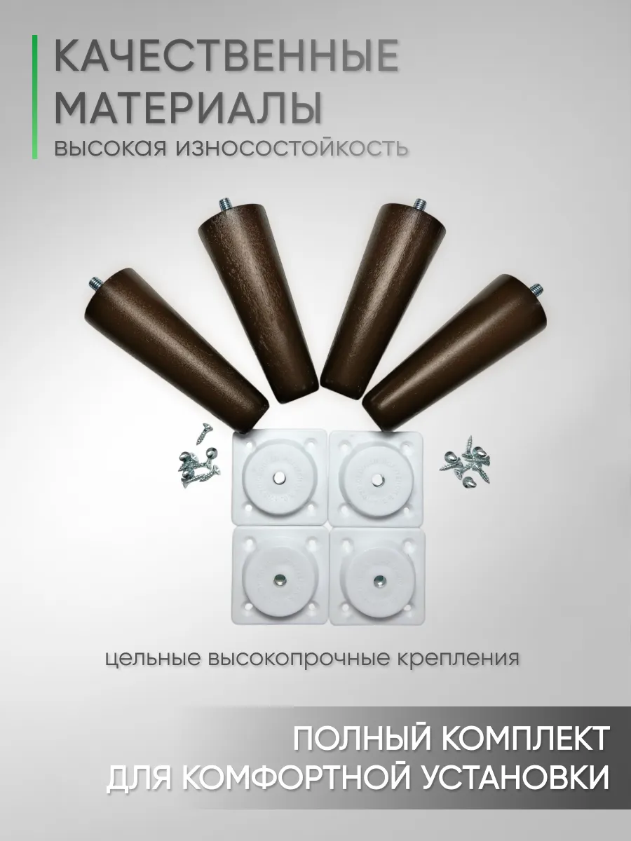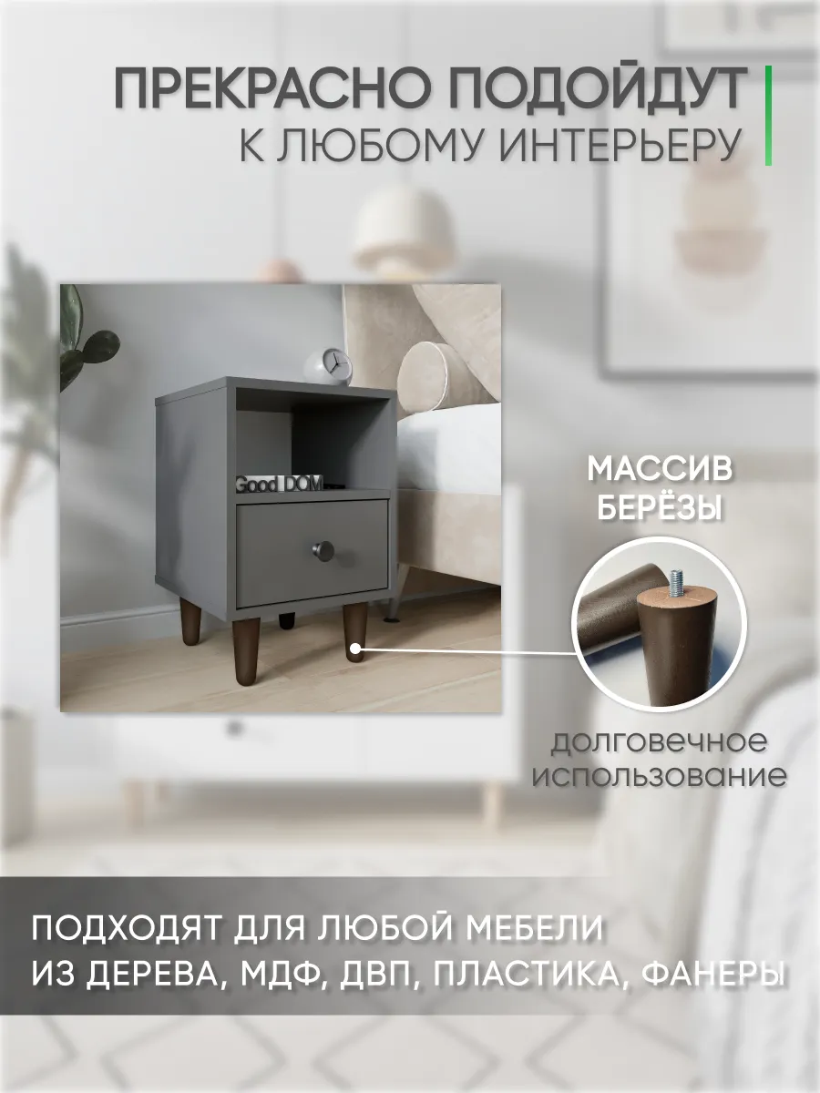 Ножки деревянные придадут мебели стильный и аккуратный вид. Комплект ножек состоит из набора из 4 прямых деревянных ножек высотой 120 мм, 4 литых крепления из высокопрочного пластика и саморезов. Ножки мебельные изготовлены из прочного массива березы, покрыты износостойкой краской, устойчивой к истиранию и влаге. Гладкая поверхность деревянных ножек не требует дополнительной обработки. Комплект мебельных ножек идеально подходят для комодов, тумбочек, шкафов и другой мебели. Легкая и быстрая установка – в комплекте ножек идет надежный крепеж. Обновите интерьер быстро и просто! В производстве деревянных ножек мы используем натуральные и экологичные материалы. Прямой дизайн деревянных ножек – универсален для любой мебели. Создавайте уют в современном стиле, добавив своей мебели качественные деревянные ножки с опорами. В нашем производстве мебели мы так же используем деревянные ножки и уверены в качестве продукции. Так же в нашем магазине Good дом, все в Дом вы можете подобрать качественную и стильную мебель для вашего интерьера.