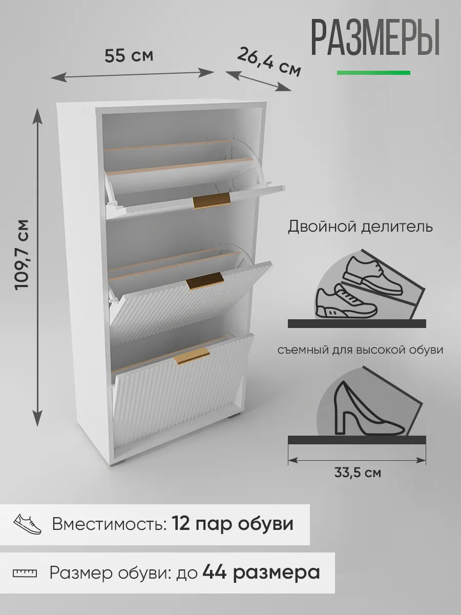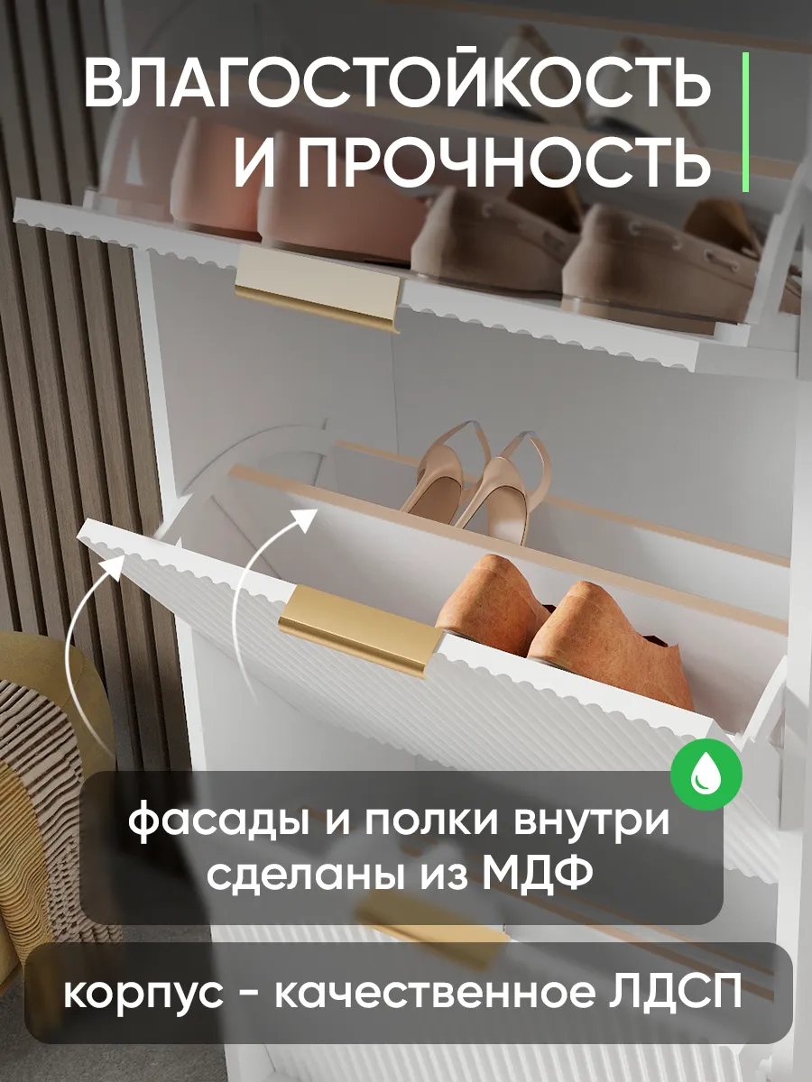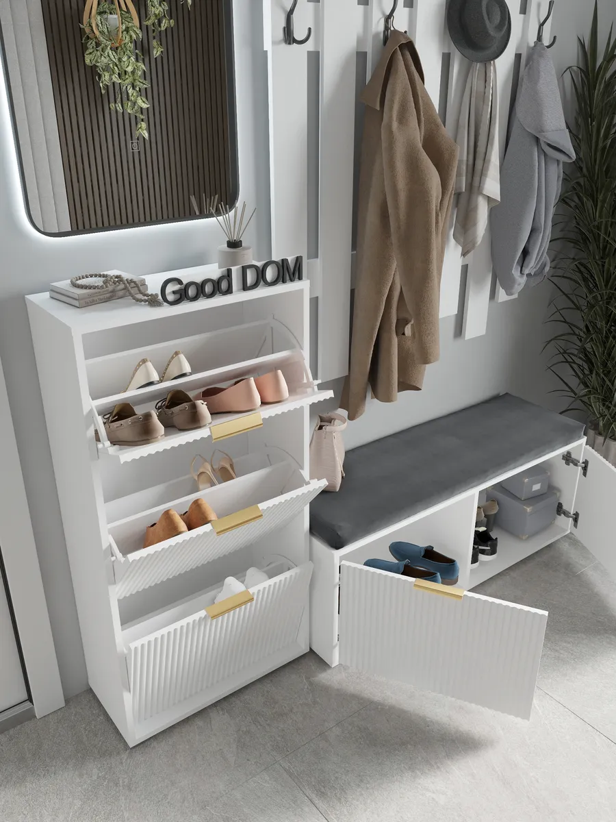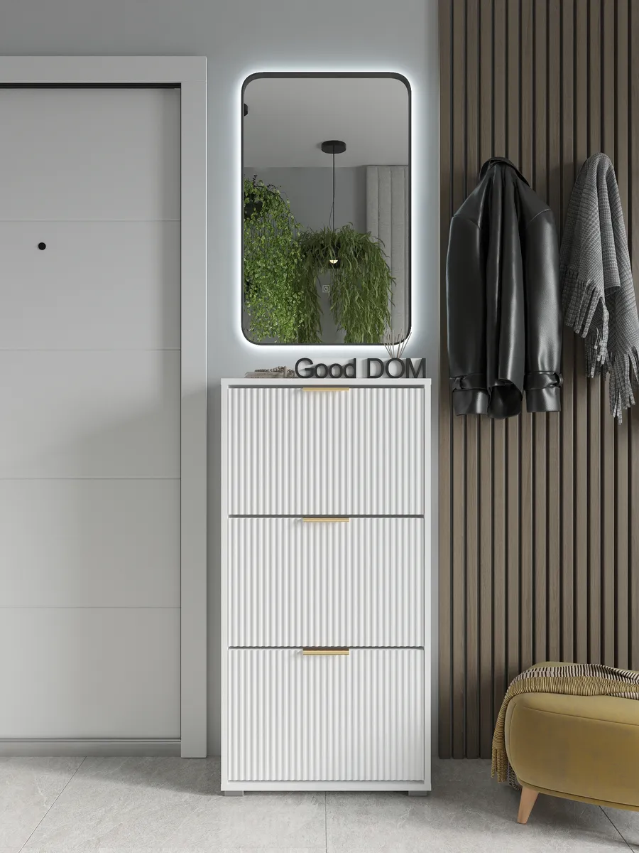 Обувница станет отличным решением для хранения обуви в прихожей, коридоре или даже на балконе. Дизайнерский стиль и лаконичный внешний вид гармонично вписываются в любой интерьер, будь то современный лофт, минимализм или классика. Удобная полка позволяет аккуратно размещать разную обувь, включая сапоги или туфли, а закрытый корпус защищает ваши вещи от пыли. Узкий и компактный формат делает изделие идеальным для небольших помещений, кладовой или гардероба. Задний вырез позволяет разместить обувную подставку вплотную к стене или плинтусу. Мебель выполнена в белом и зеркальном исполнении, что визуально увеличивает пространство и добавляет света комнате. Высокий и тонкий профиль поможет сохранить порядок, даже если у вас большая пара обуви. Дверца открывается легко, предоставляя доступ к содержимому, а аккуратная накидка защитит хрупкие вещи. Обувной стеллаж подходит как для отдельной эксплуатации, так и в комплекте с другой мебелью для хранения.