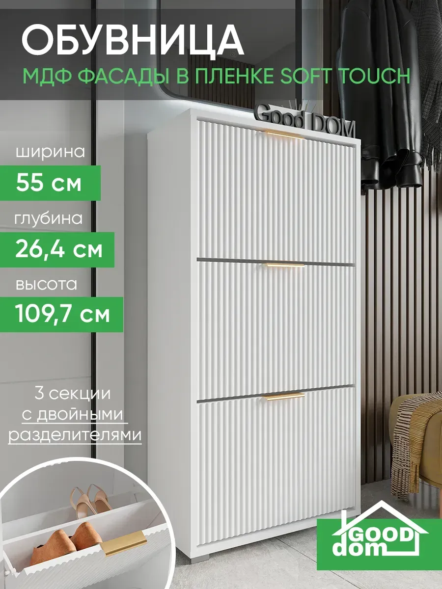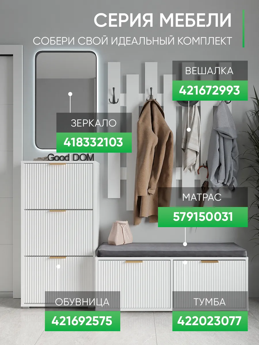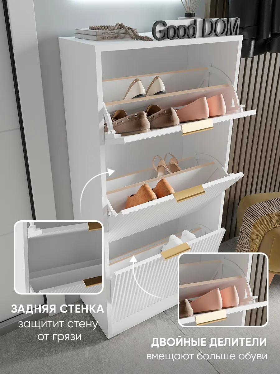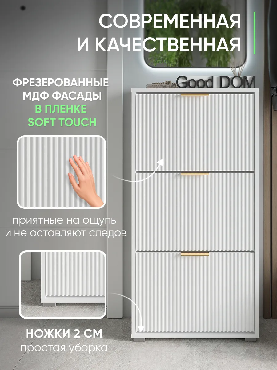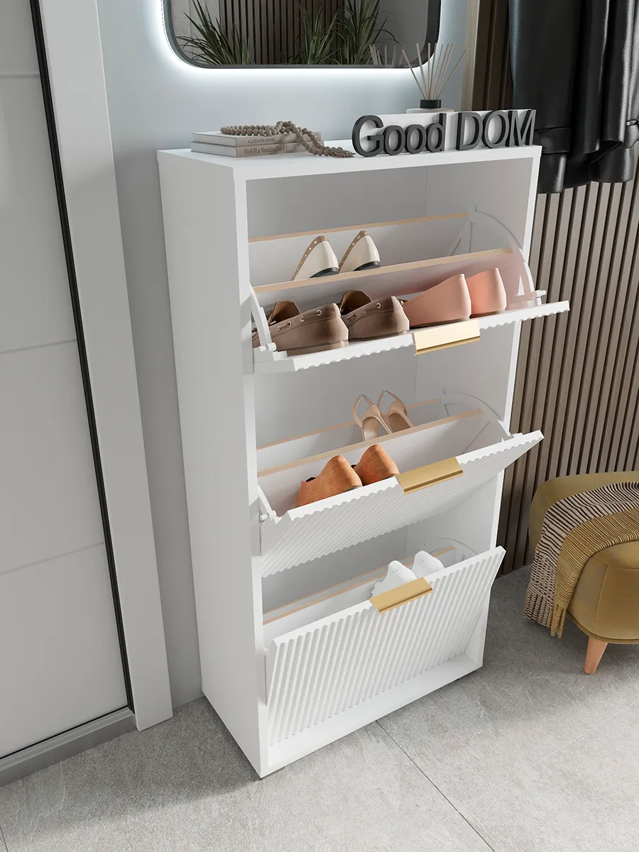 Обувница станет отличным решением для хранения обуви в прихожей, коридоре или даже на балконе. Дизайнерский стиль и лаконичный внешний вид гармонично вписываются в любой интерьер, будь то современный лофт, минимализм или классика. Удобная полка позволяет аккуратно размещать разную обувь, включая сапоги или туфли, а закрытый корпус защищает ваши вещи от пыли. Узкий и компактный формат делает изделие идеальным для небольших помещений, кладовой или гардероба. Задний вырез позволяет разместить обувную подставку вплотную к стене или плинтусу. Мебель выполнена в белом и зеркальном исполнении, что визуально увеличивает пространство и добавляет света комнате. Высокий и тонкий профиль поможет сохранить порядок, даже если у вас большая пара обуви. Дверца открывается легко, предоставляя доступ к содержимому, а аккуратная накидка защитит хрупкие вещи. Обувной стеллаж подходит как для отдельной эксплуатации, так и в комплекте с другой мебелью для хранения.