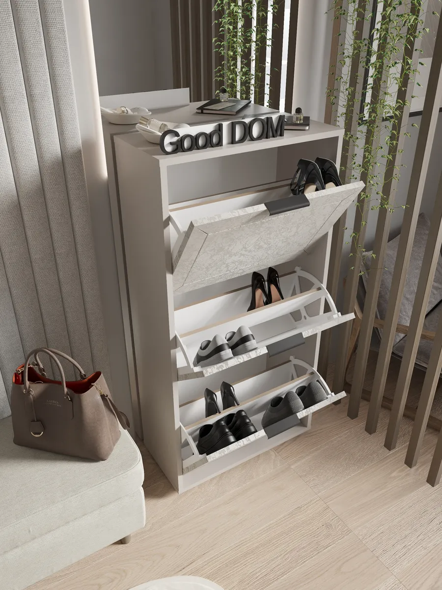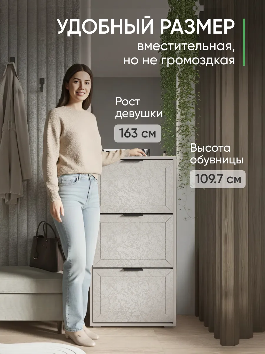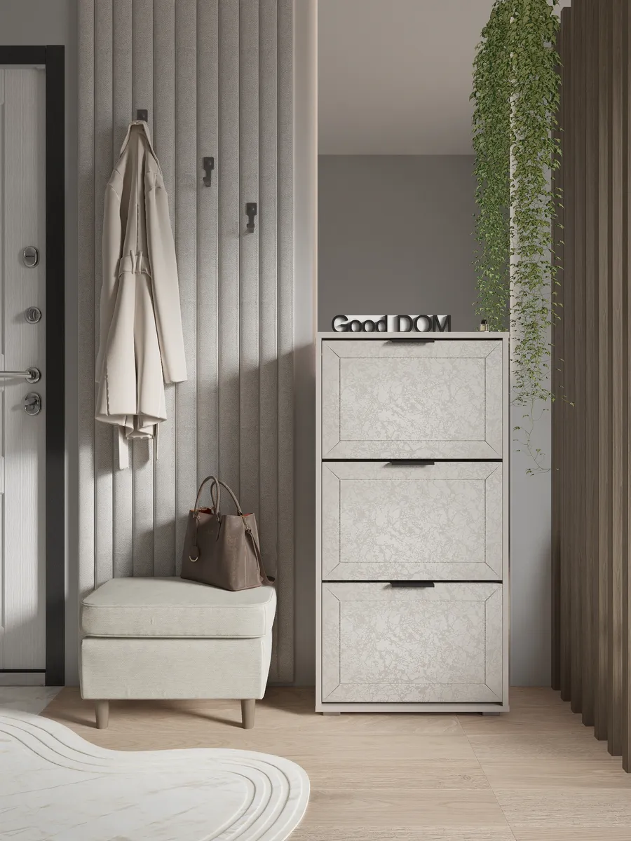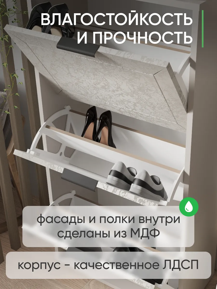 Обувной шкаф отличается прочной стенкой и устойчивостью, что позволяет использовать его как этажерку для различных предметов.