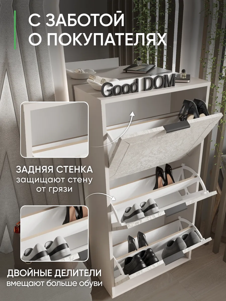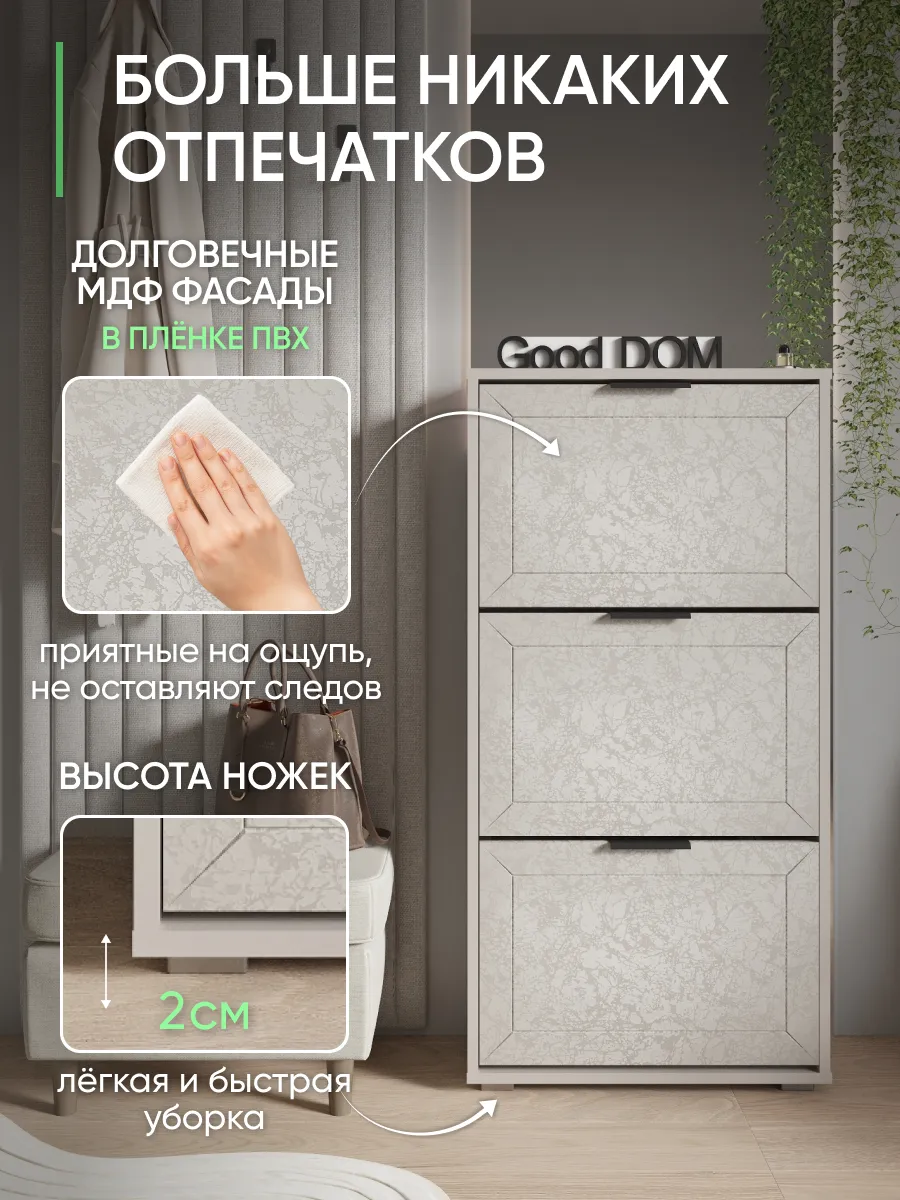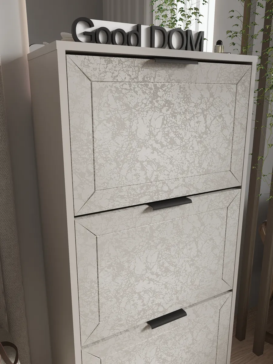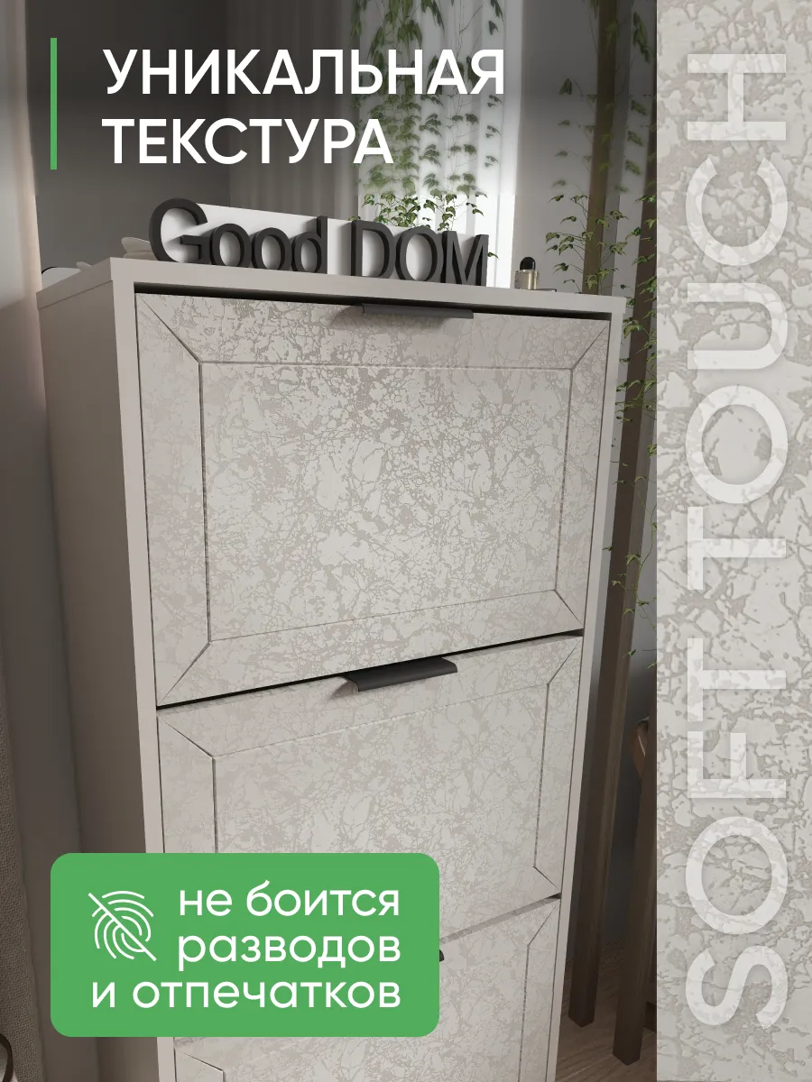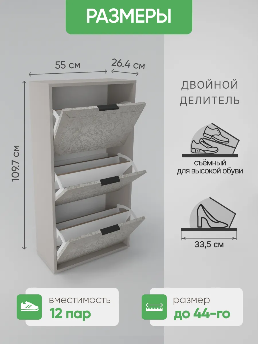 Обувной шкаф отличается прочной стенкой и устойчивостью, что позволяет использовать его как этажерку для различных предметов.