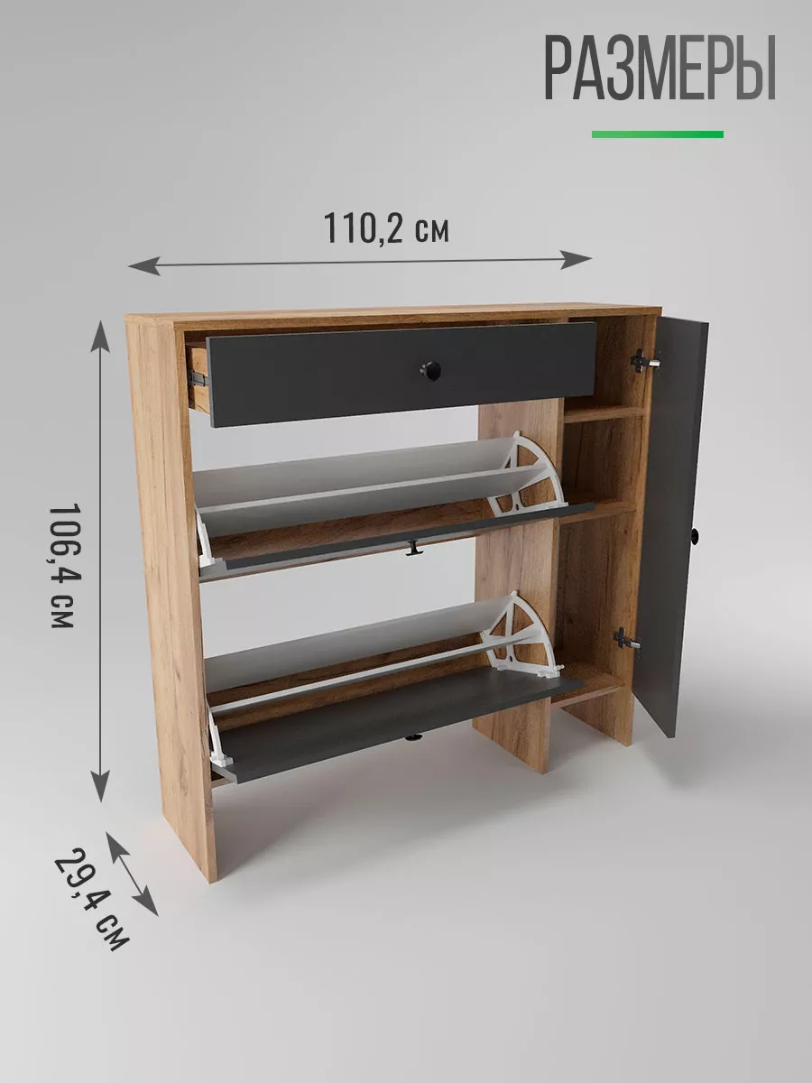 Галошница выполнена в современном дизайне, а черные ручки-кнопки придают обувнице уникальный вид. Наша обувница для обуви - это не просто полка или шкаф, а настоящий гардеробный стеллаж для обуви, который поможет организовать пространство стильно и удобно. Комод с ящиками вместит всю вашу коллекцию обуви без лишних хлопот. Эта высокая этажерка для обуви с легкостью разместившись в углу прихожей, коридора, балкон станет незаменимым помощником для поддержания порядка и сохранности вашей обуви. Если вы цените в мебели функциональность и качество - то этот шкаф для обуви Ваш. Кроме многочисленных отделений для хранения вы можете зайдействовать поверхность сверху! И организовать на ней храние ключей, документов, мелочевки.