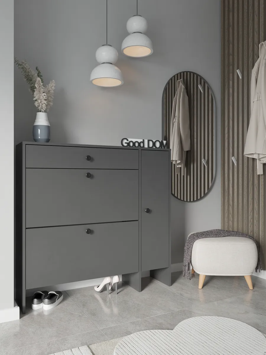 Галошница выполнена в современном дизайне, а черные ручки-кнопки придают обувнице уникальный вид. Наша обувница для обуви - это не просто полка или шкаф, а настоящий гардеробный стеллаж для обуви, который поможет организовать пространство стильно и удобно. Комод с ящиками вместит всю вашу коллекцию обуви без лишних хлопот. Эта высокая этажерка для обуви с легкостью разместившись в углу прихожей, коридора, балкон станет незаменимым помощником для поддержания порядка и сохранности вашей обуви. Если вы цените в мебели функциональность и качество - то этот шкаф для обуви Ваш. Кроме многочисленных отделений для хранения вы можете зайдействовать поверхность сверху! И организовать на ней храние ключей, документов, мелочевки.
