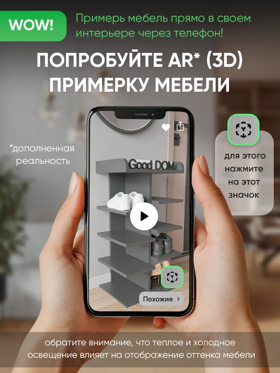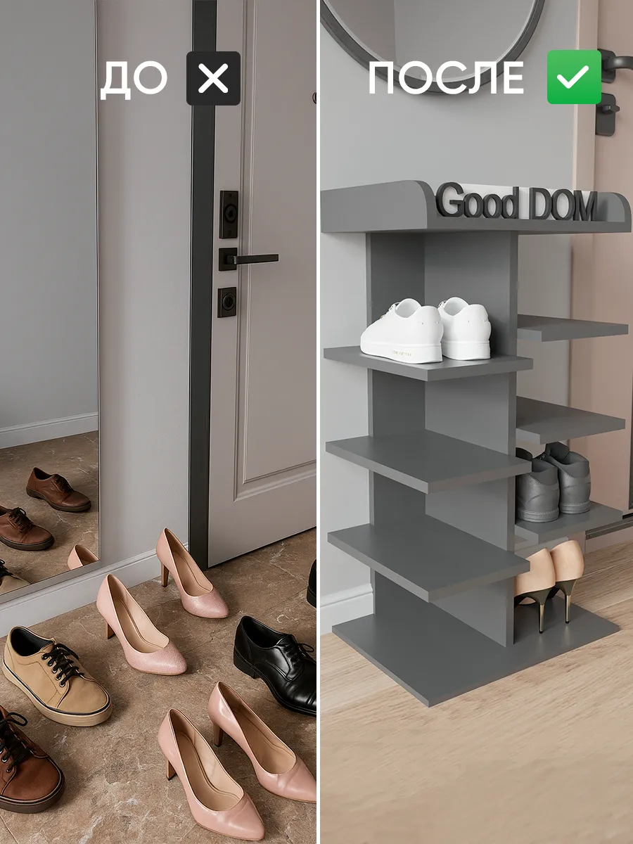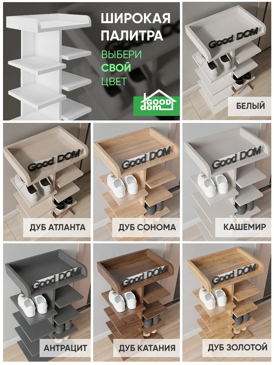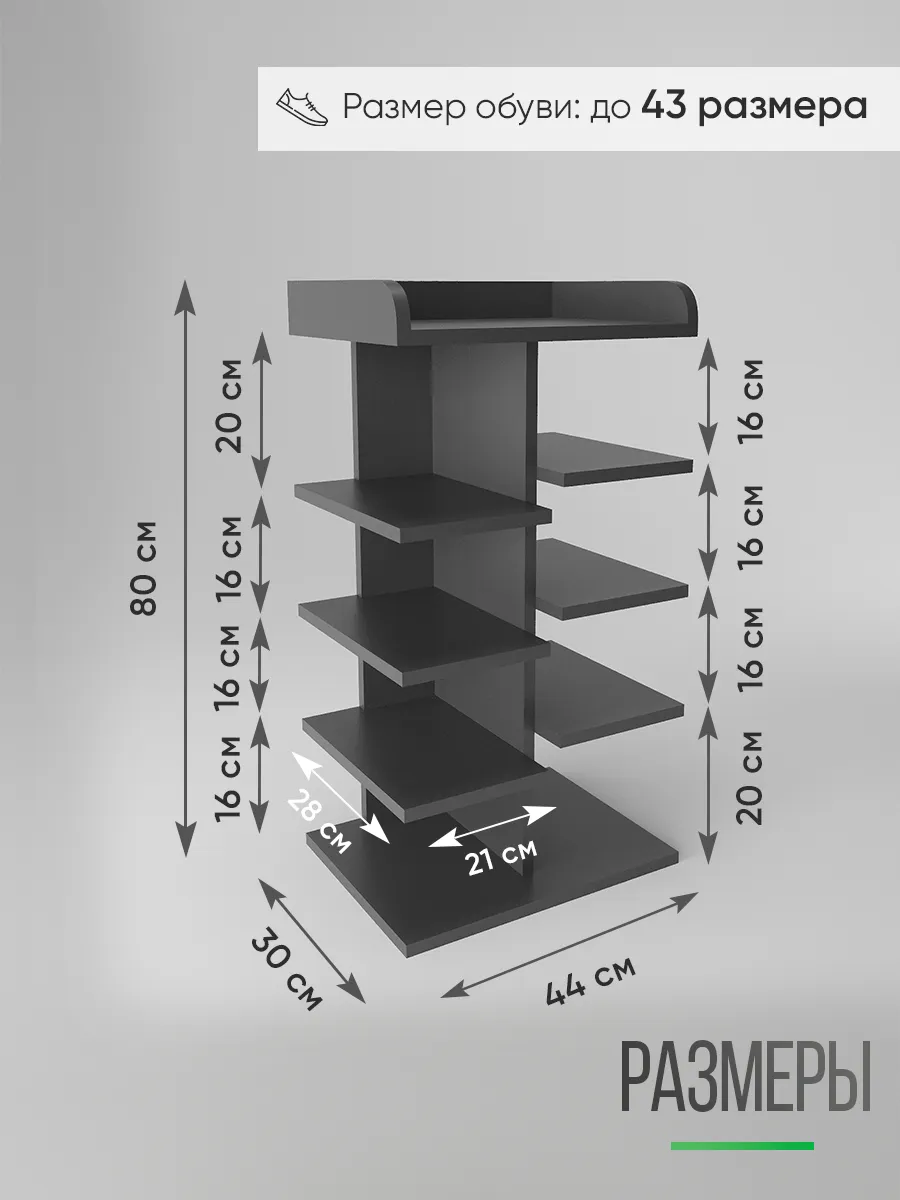 Обувница в прихожую «Компактная» – полка для обуви открытая. Прихожая мебель для функционального и удобного хранения обуви и вещей в коридоре. Тумба для обуви с полками отличный вариант для маленьких квартир – обувница узкая (подойдёт даже для небольшой прихожей), но при этом очень вместительная. Сверху у обувной полки есть открытая верхняя полка под документы, мелочевку, можно использовать её как поставку для под сумок. Наша этажерка для обуви вместимостью 8 пар обуви до 43 размера! Полка для обуви создает лучшие условия для хранения обуви – обувница открытая поможет всегда быстро взять и убрать необходимую обувь с этажерки. К тому же в галошнице обувь постоянно проветривается, а значит быстрее сохнет, что сводит к минимуму возникновение в обуви неприятного запаха. Доступные цвета подставки для обуви: белая, дуб сонома, дуб атланта, орех, дуб золотой, антрацит, дуб катания. Благодаря разнообразию цветов, вы легко подберете обувницу для обуви, подходящую к вашему интерьеру коридора, прихожей, гардеробной. Полка для обуви деревянная из ЛДСП эффектная мебель для прихожей, в отличии от дешевых пластиковых аналогов. Полки для обуви в прихожую в стиле мебель для прихожей. Также обувницу используют как стеллаж для хранения других вещей в гостиной. Полочка для обуви отлично впишется и как мебель на балкон. Размеры для обуви полки: Размеры: 80*44*30 см (глубина полки 28,4 см без задней планки), толщина полок: 1,6 см, вместимость: до 8 пар обуви. Этажерка в бОльшем размере Арт: 39429155.В нашем ассортименте представлена другая мебель для прихожей (и не только) – вы можете легко посмотреть весь ассортимент, щелкнув на значок логотипа. Мы постоянно работаем над качеством нашей продукции, поэтому улучшили упаковку - наша УСИЛЕННАЯ УПАКОВКА ЗАЩИТИТ Вашу Обувницу при доставке ОТ СЛОМАННЫХ УГЛОВ и СКОЛОВ! Выбирая продукцию отечественного производителя Good Дом, все в Дом Вы обеспечиваете себя гарантией на продукцию сроком в 1 год, Вы выбираете качество и комфорт.