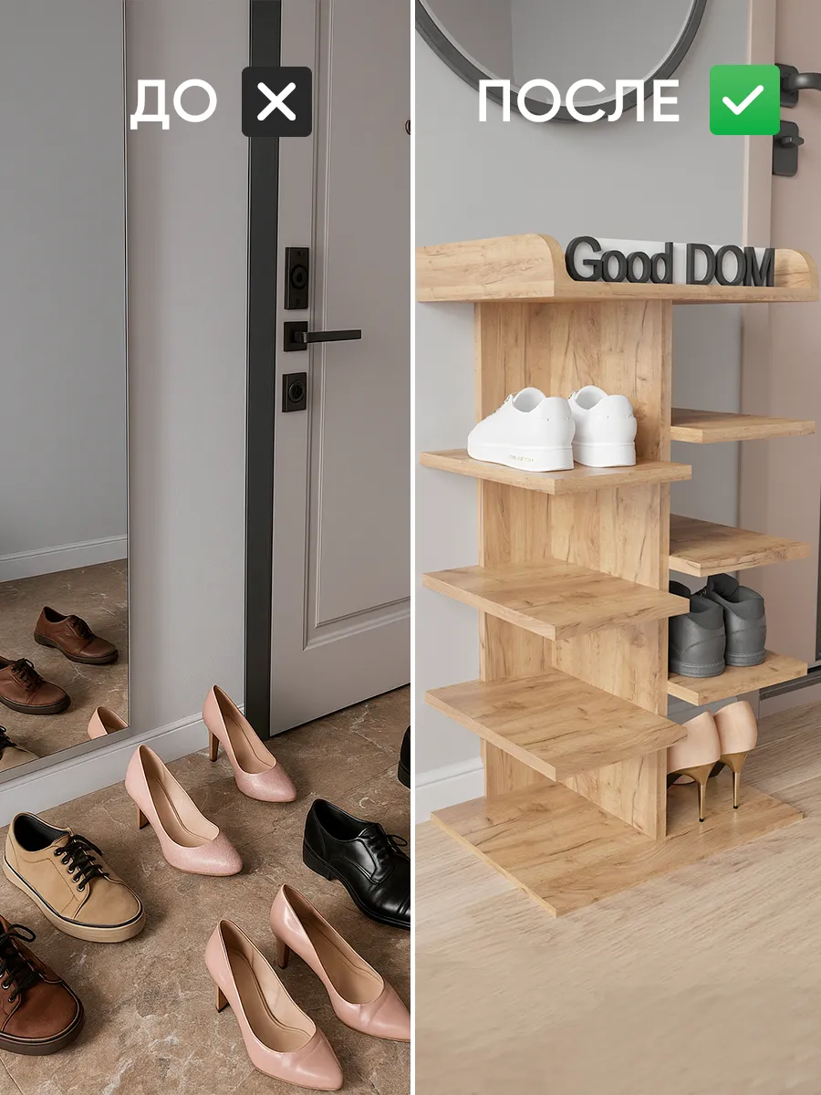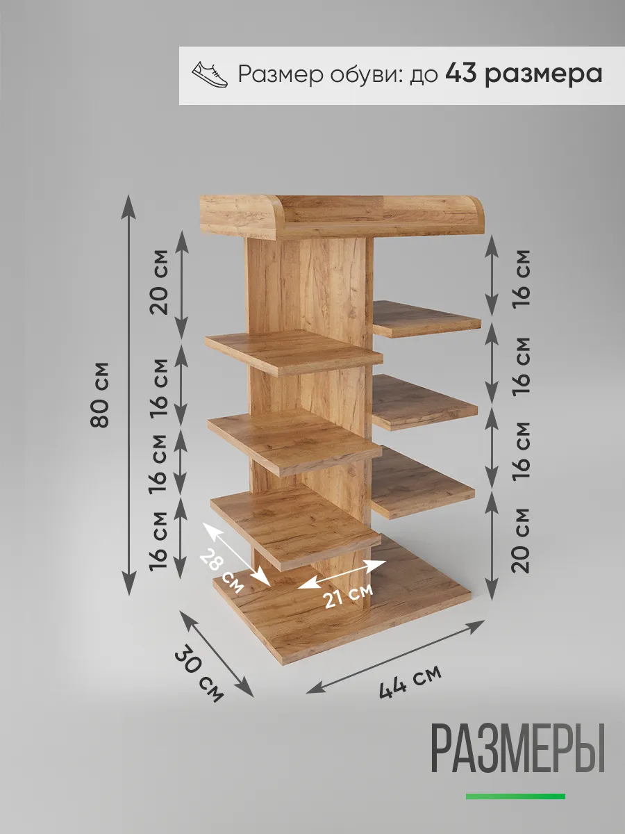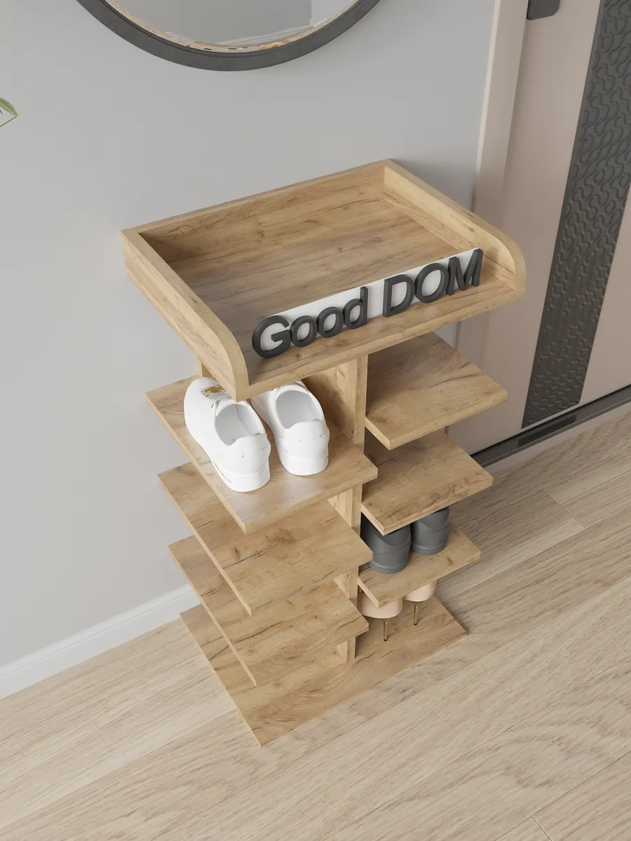 Обувница в прихожую «Компактная» – полка для обуви открытая. Прихожая мебель для функционального и удобного хранения обуви и вещей в коридоре. Тумба для обуви с полками отличный вариант для маленьких квартир – обувница узкая (подойдёт даже для небольшой прихожей), но при этом очень вместительная. Сверху у обувной полки есть открытая верхняя полка под документы, мелочевку, можно использовать её как поставку для под сумок. Наша этажерка для обуви вместимостью 8 пар обуви до 43 размера! Полка для обуви создает лучшие условия для хранения обуви – обувница открытая поможет всегда быстро взять и убрать необходимую обувь с этажерки. К тому же в галошнице обувь постоянно проветривается, а значит быстрее сохнет, что сводит к минимуму возникновение в обуви неприятного запаха. Доступные цвета подставки для обуви: белая, дуб сонома, дуб атланта, орех, дуб золотой, антрацит, дуб катания. Благодаря разнообразию цветов, вы легко подберете обувницу для обуви, подходящую к вашему интерьеру коридора, прихожей, гардеробной. Полка для обуви деревянная из ЛДСП эффектная мебель для прихожей, в отличии от дешевых пластиковых аналогов. Полки для обуви в прихожую в стиле мебель для прихожей. Также обувницу используют как стеллаж для хранения других вещей в гостиной. Полочка для обуви отлично впишется и как мебель на балкон. Размеры для обуви полки: Размеры: 80*44*30 см (глубина полки 28,4 см без задней планки), толщина полок: 1,6 см, вместимость: до 8 пар обуви. Этажерка в бОльшем размере Арт: 39429155.В нашем ассортименте представлена другая мебель для прихожей (и не только) – вы можете легко посмотреть весь ассортимент, щелкнув на значок логотипа. Мы постоянно работаем над качеством нашей продукции, поэтому улучшили упаковку - наша УСИЛЕННАЯ УПАКОВКА ЗАЩИТИТ Вашу Обувницу при доставке ОТ СЛОМАННЫХ УГЛОВ и СКОЛОВ! Выбирая продукцию отечественного производителя Good Дом, все в Дом Вы обеспечиваете себя гарантией на продукцию сроком в 1 год, Вы выбираете качество и комфорт.