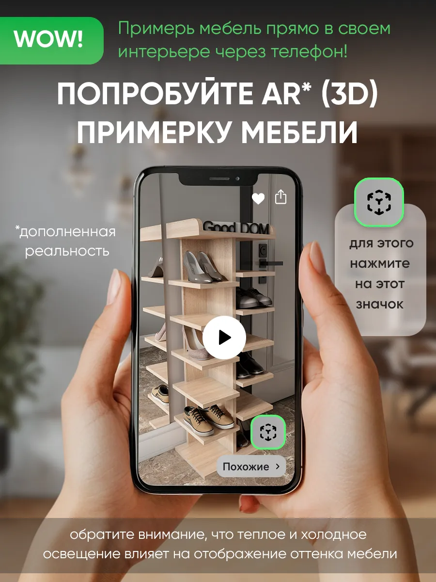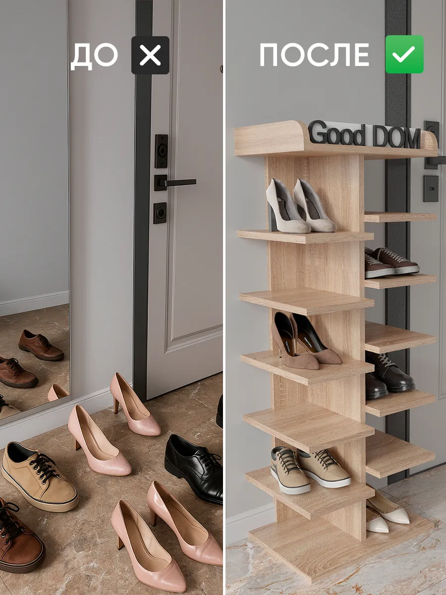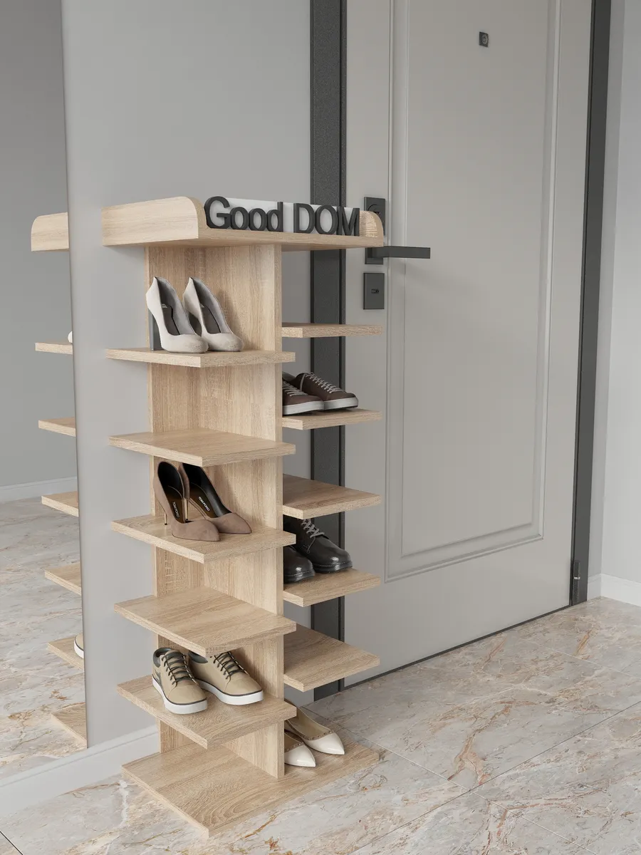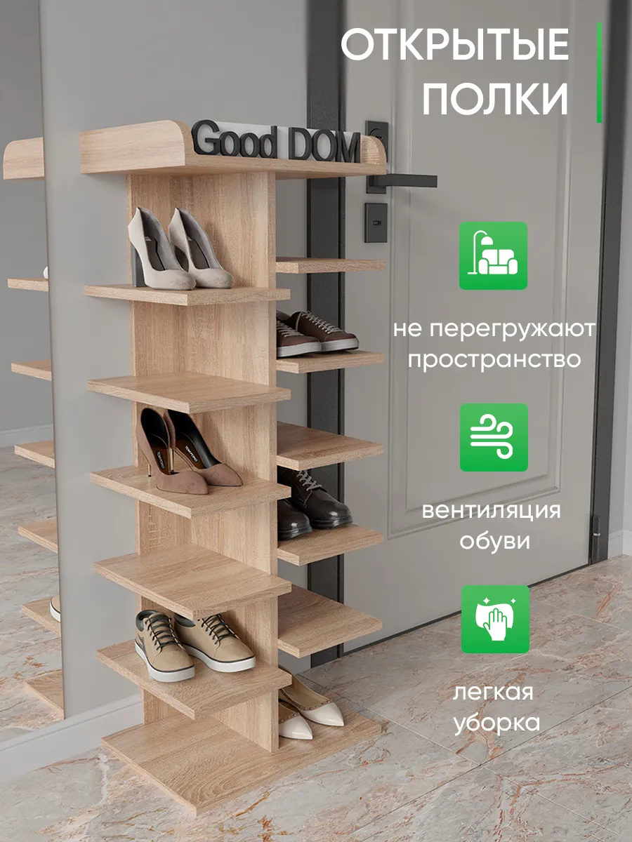 Обувница «Стойка» от бренда «Good дом, все в Дом» станет стильным решением для организации системы эстетичного хранения модных туфелек и не только! Высокая и узкая этажерка - отличный способ экономить пространство в небольшом коридоре или прихожей, держать обувь организованно и не на полу. Открытое хранилище позволит быстро находить нужную пару. Эстетичная стойка компактного размера (высота 115 см, ширина 44 см, глубина 30 см (глубина полки 28,4 см без задней планки) вмещает обувь до 43-го размера, состоит из 12 квадратных полок + 1 верхняя длинная в прямоугольной форме. Верх изделия представляет собой открытую полочку, на которой можно разместить средства по уходу за обувью, головные уборы, зонтики, документы и разные мелочи, а можно заполнить свободное пространство горшками с живыми или искусственными растениями, украсить статуэтками или фотографиями в рамочках. Также верх домашней этажерки можно использовать в качестве удобной поверхности, куда, возвращаясь домой, можно ставить сумки и класть ключи. Красивое многоярусное изделие выполнено из прочного материала - ЛДСП высокого качества (класс эмиссии Е 0.5), представлено в восьми расцветках: венге, дуб золотой, антрацит, дуб катания, дуб атланта, орех, дуб сонома и матовом белом цвете. Популярная палитра позволит подобрать компактную вертикальную стойку для любого дизайна интерьера дома или квартиры. Открытая мебельная подставка для обуви и инвентаря заменит хранение в закрытом шкафу, комоде или тумбочке, дополнит комнатную банкетку с сидением. Многофункциональная модульная мебель будет оптимально сочетаться с другими изделиями бренда. Многоуровневую обувницу можно использовать в прихожей или коридоре, а можно разместить в спальне или детской комнате для хранения одежды, детских игрушек, маленьких органайзеров с вещами, в гардеробной, в дачном или офисном помещении, на балконе или лоджии около стенки, в раздевалке. Вместительный каркасный стеллаж - галошница с 13 отделениями (секциями) станет стильным интерьерным элементом и хорошим подарком для взрослых друзей, для семьи с детьми, для лучшего друга или подруги, мамы и папы, бабушки и дедушки на новоселье! Универсальное изделие требует сборки, все детали пронумерованы, чтобы вы могли быстро собрать модель по инструкции (качественная фурнитура и схема сборки в комплекте). Мебель изготавливается на высокотехнологичном производстве (ЧПУ - станки), служба поддержки отвечает быстро, сломанные в процессе транспортировки и поставки детали заменяются, недостающие элементы досылаются, вопросы по сборке быстро решаются. Обувница доставляется в усиленной упаковке, обвязанной пластиковой лентой и оклеенной предупреждающими стикерами. Коробка из трехслойного картона усилена пенопластом по всему периметру, чтобы все детали приехали к потребителю целыми и невредимыми. У нас есть акции и распродажи, вы можете купить наши товары в подарок со скидкой!