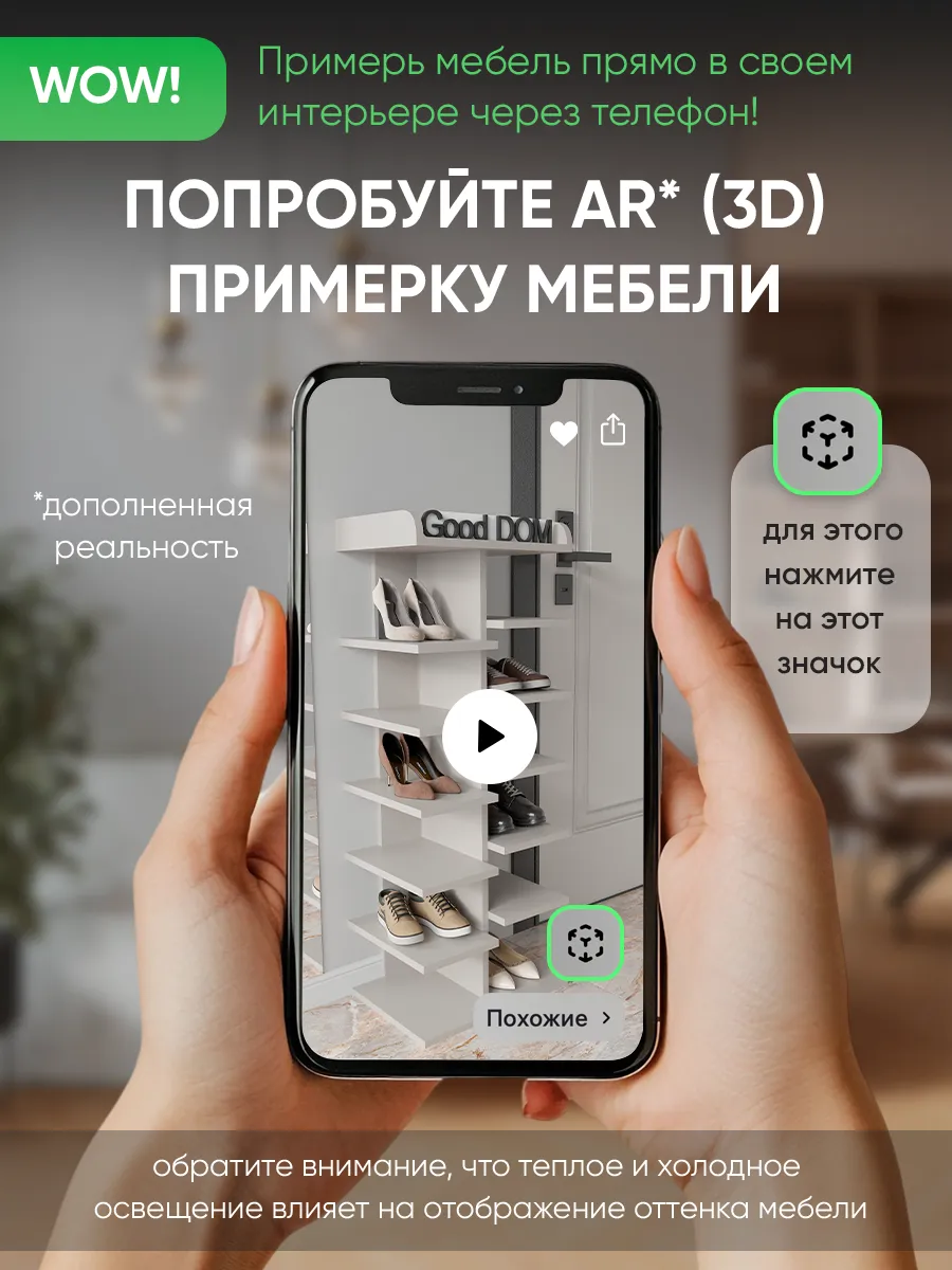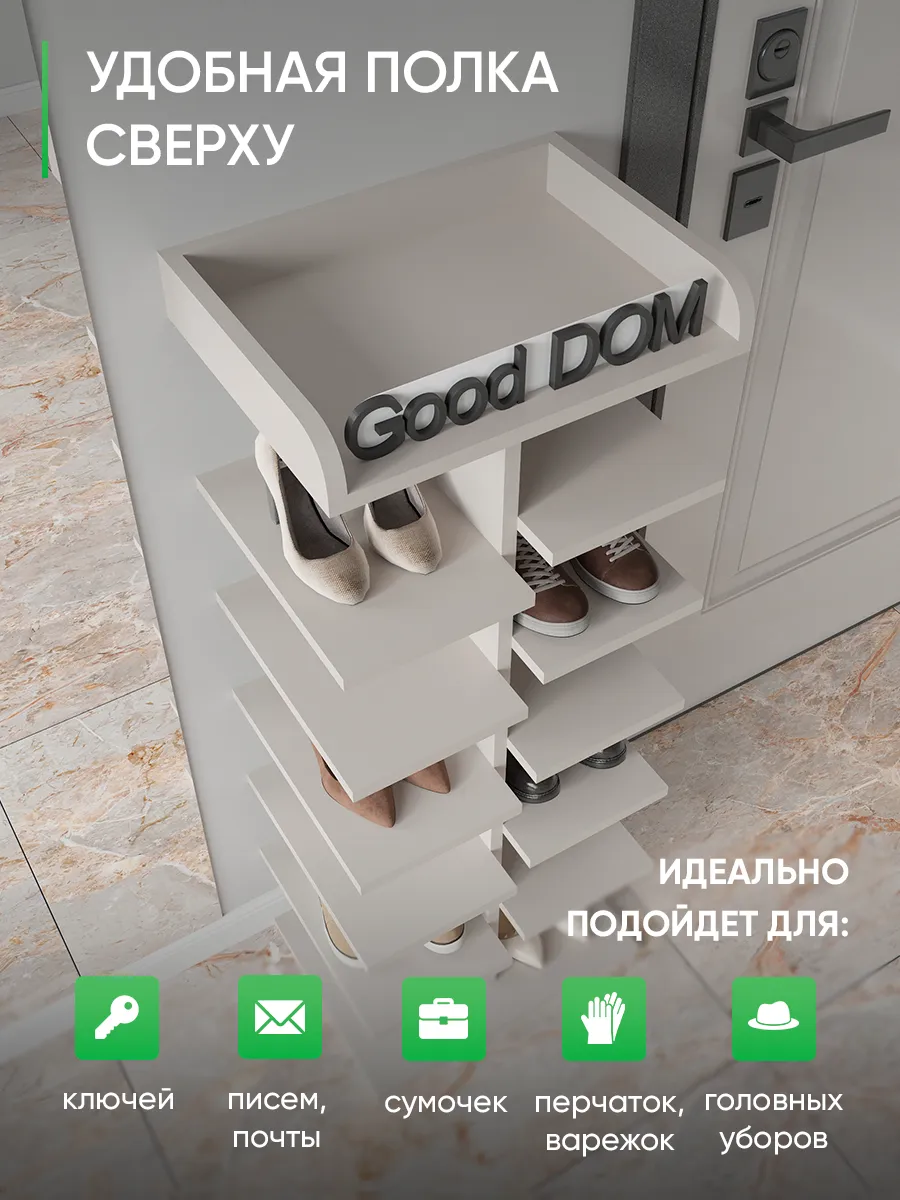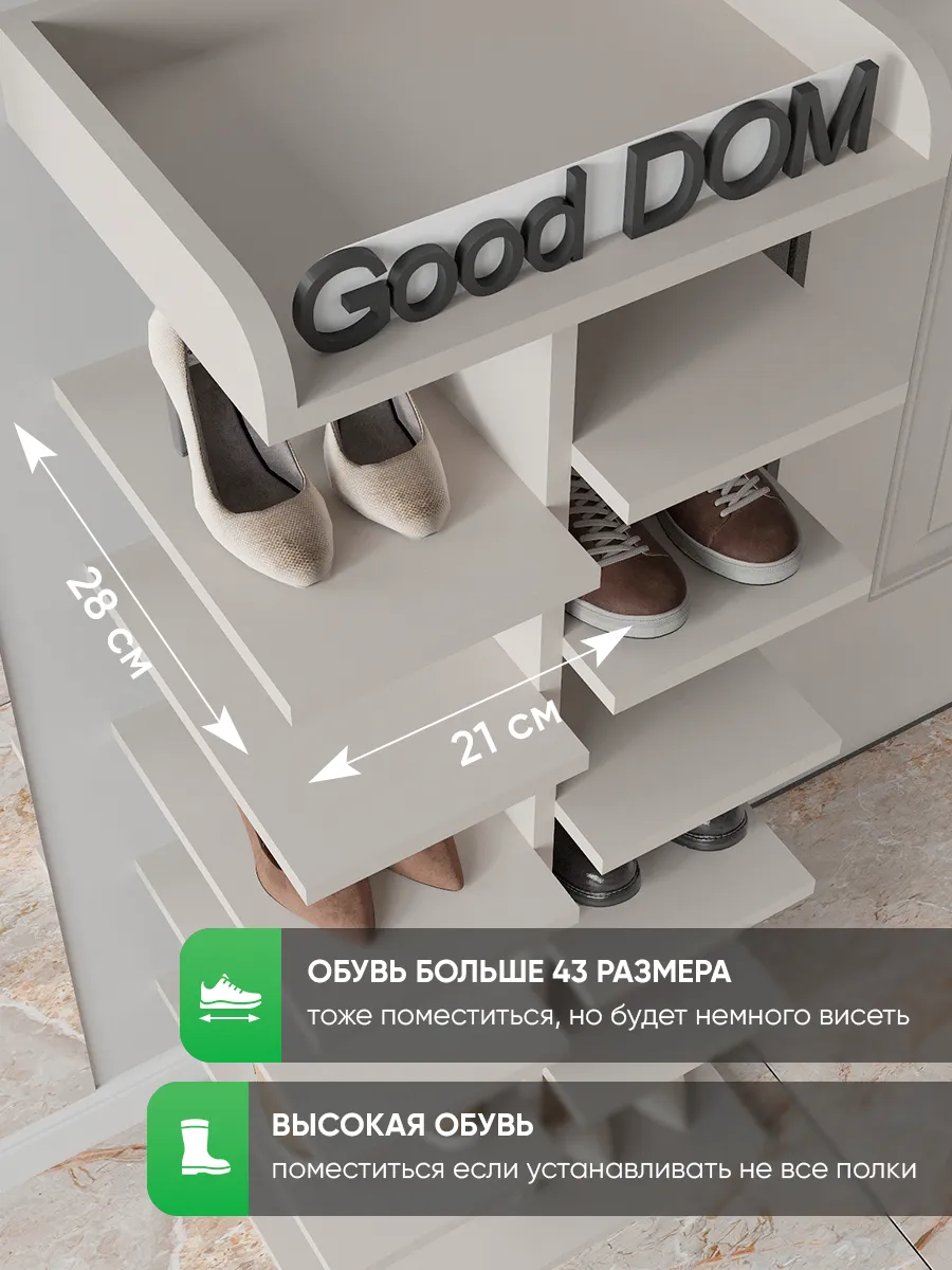 Обувница «Стойка» от бренда «Good дом, все в Дом» станет стильным решением для организации системы эстетичного хранения модных туфелек и не только! Высокая и узкая этажерка - отличный способ экономить пространство в небольшом коридоре или прихожей, держать обувь организованно и не на полу. Открытое хранилище позволит быстро находить нужную пару. Эстетичная стойка компактного размера (высота 115 см, ширина 44 см, глубина 30 см (глубина полки 28,4 см без задней планки) вмещает обувь до 43-го размера, состоит из 12 квадратных полок + 1 верхняя длинная в прямоугольной форме. Верх изделия представляет собой открытую полочку, на которой можно разместить средства по уходу за обувью, головные уборы, зонтики, документы и разные мелочи, а можно заполнить свободное пространство горшками с живыми или искусственными растениями, украсить статуэтками или фотографиями в рамочках. Также верх домашней этажерки можно использовать в качестве удобной поверхности, куда, возвращаясь домой, можно ставить сумки и класть ключи. Красивое многоярусное изделие выполнено из прочного материала - ЛДСП высокого качества (класс эмиссии Е 0.5), представлено в восьми расцветках: венге, дуб золотой, антрацит, дуб катания, дуб атланта, орех, дуб сонома и матовом белом цвете. Популярная палитра позволит подобрать компактную вертикальную стойку для любого дизайна интерьера дома или квартиры. Открытая мебельная подставка для обуви и инвентаря заменит хранение в закрытом шкафу, комоде или тумбочке, дополнит комнатную банкетку с сидением. Многофункциональная модульная мебель будет оптимально сочетаться с другими изделиями бренда. Многоуровневую обувницу можно использовать в прихожей или коридоре, а можно разместить в спальне или детской комнате для хранения одежды, детских игрушек, маленьких органайзеров с вещами, в гардеробной, в дачном или офисном помещении, на балконе или лоджии около стенки, в раздевалке. Вместительный каркасный стеллаж - галошница с 13 отделениями (секциями) станет стильным интерьерным элементом и хорошим подарком для взрослых друзей, для семьи с детьми, для лучшего друга или подруги, мамы и папы, бабушки и дедушки на новоселье! Универсальное изделие требует сборки, все детали пронумерованы, чтобы вы могли быстро собрать модель по инструкции (качественная фурнитура и схема сборки в комплекте). Мебель изготавливается на высокотехнологичном производстве (ЧПУ - станки), служба поддержки отвечает быстро, сломанные в процессе транспортировки и поставки детали заменяются, недостающие элементы досылаются, вопросы по сборке быстро решаются. Обувница доставляется в усиленной упаковке, обвязанной пластиковой лентой и оклеенной предупреждающими стикерами. Коробка из трехслойного картона усилена пенопластом по всему периметру, чтобы все детали приехали к потребителю целыми и невредимыми. У нас есть акции и распродажи, вы можете купить наши товары в подарок со скидкой!