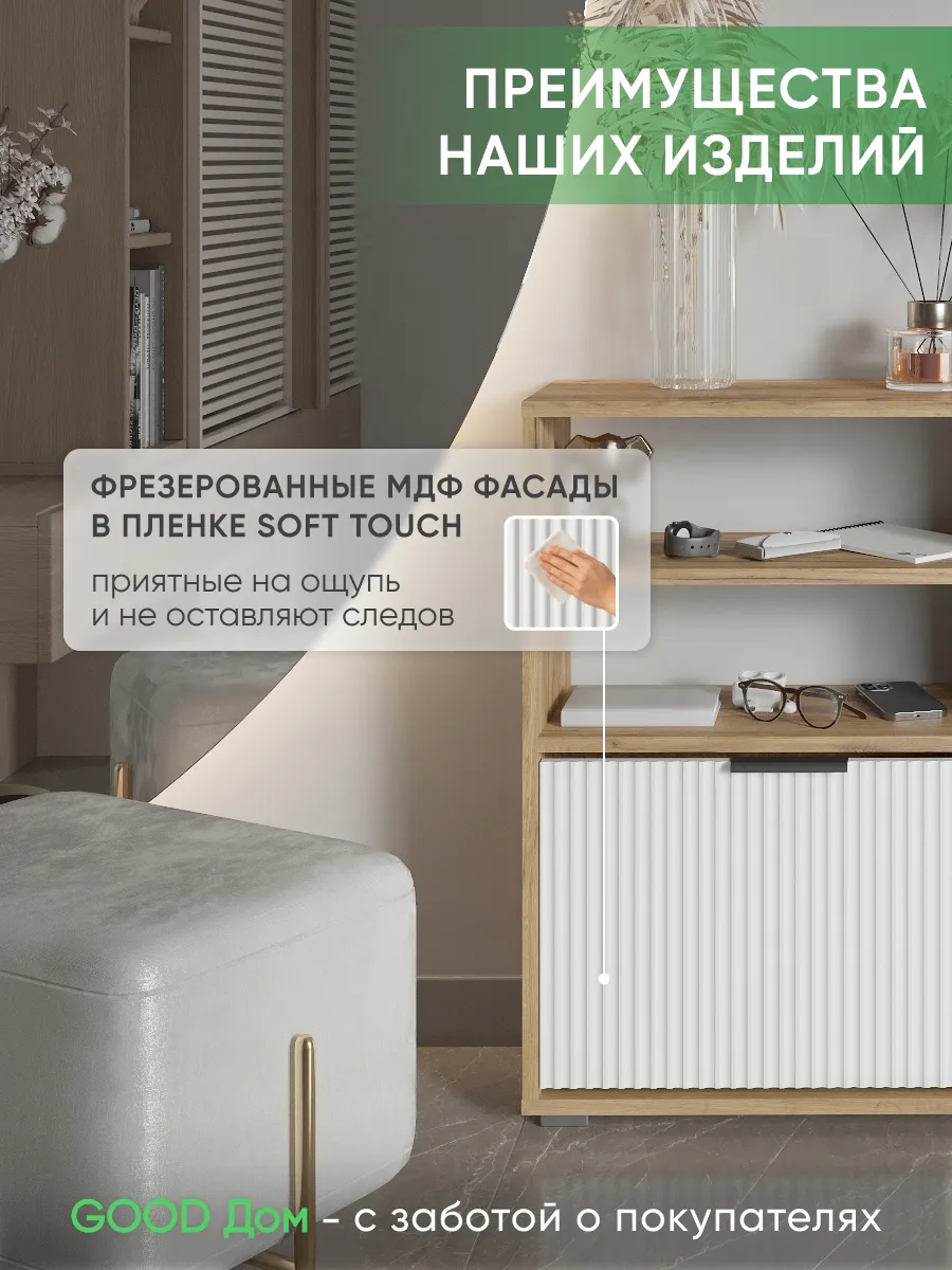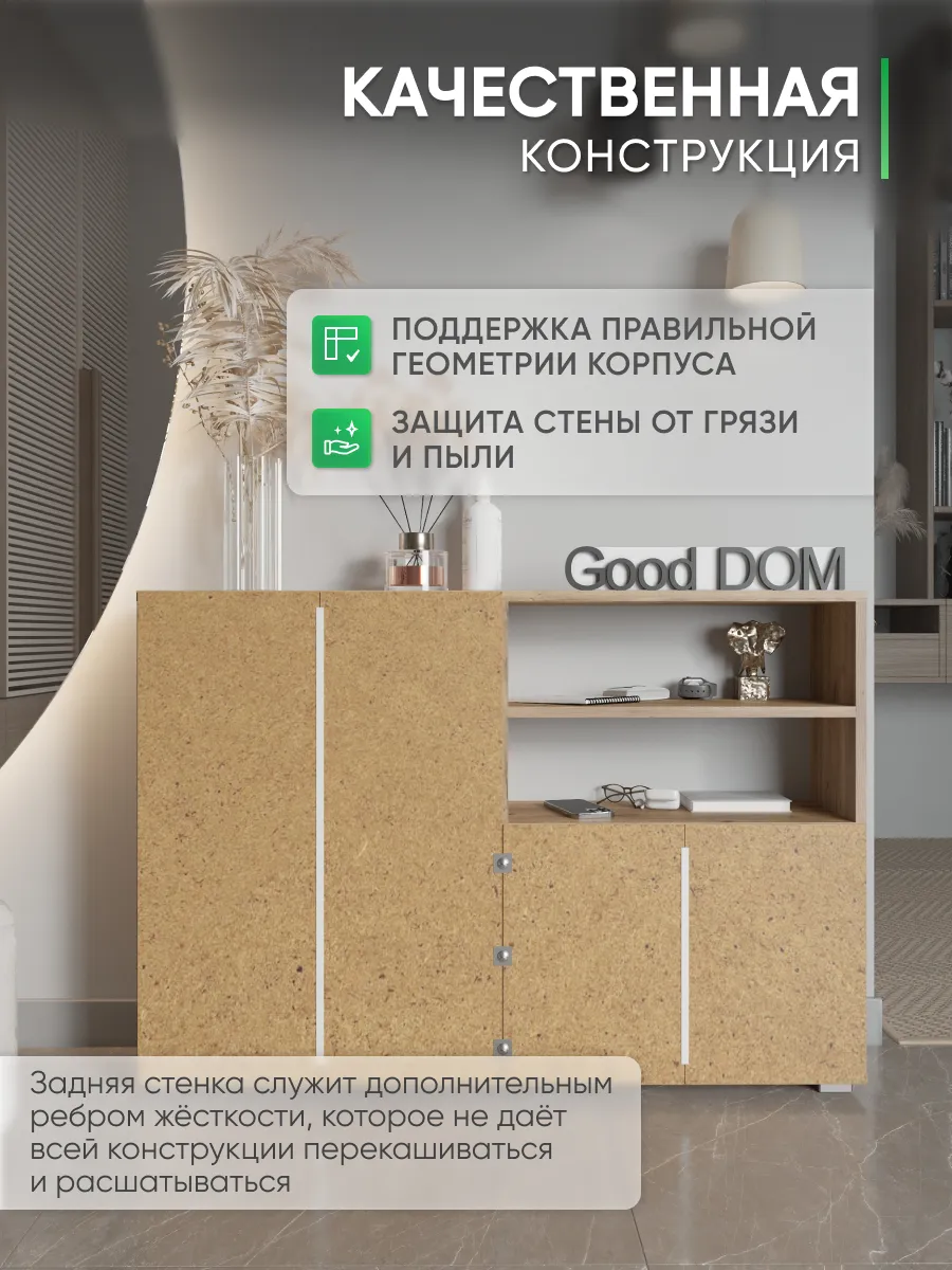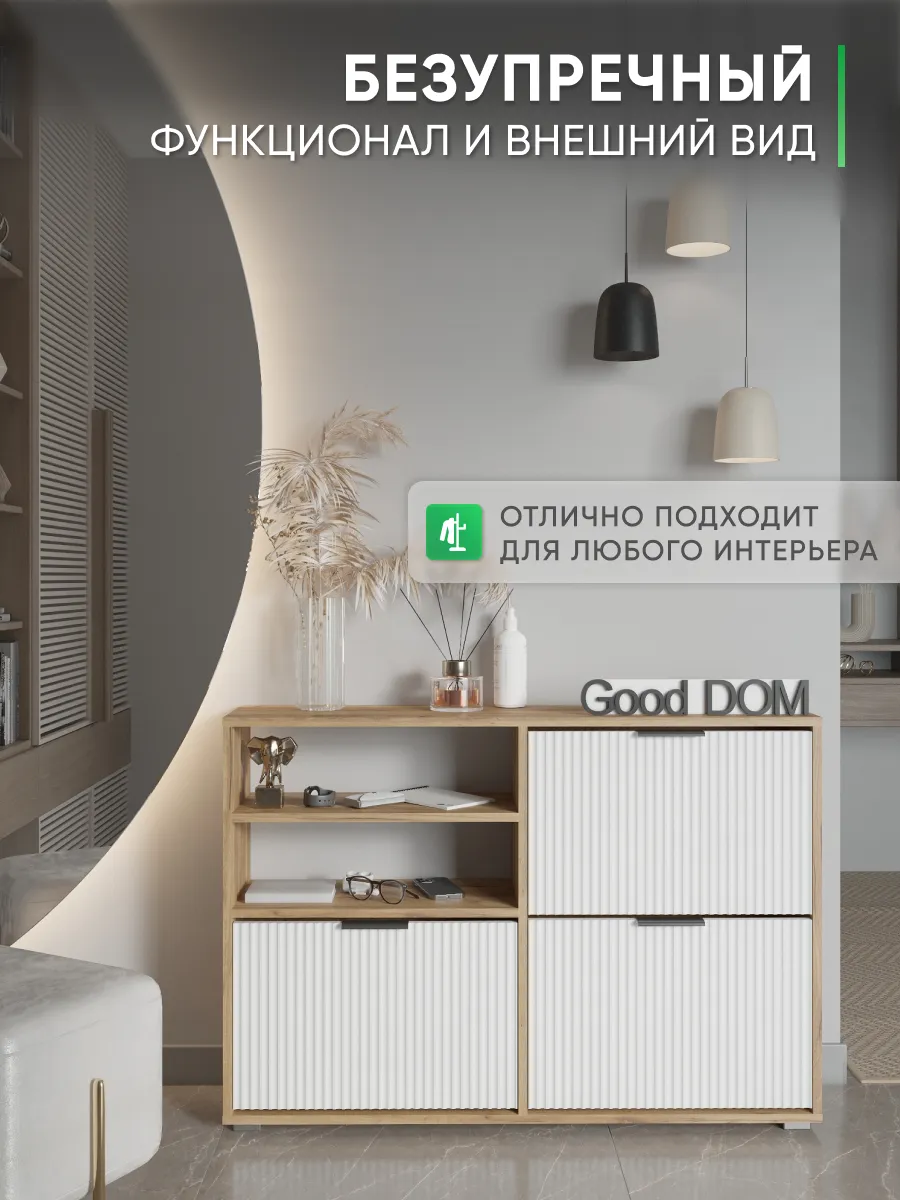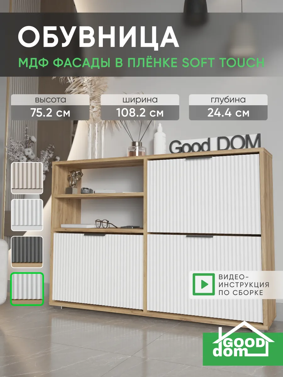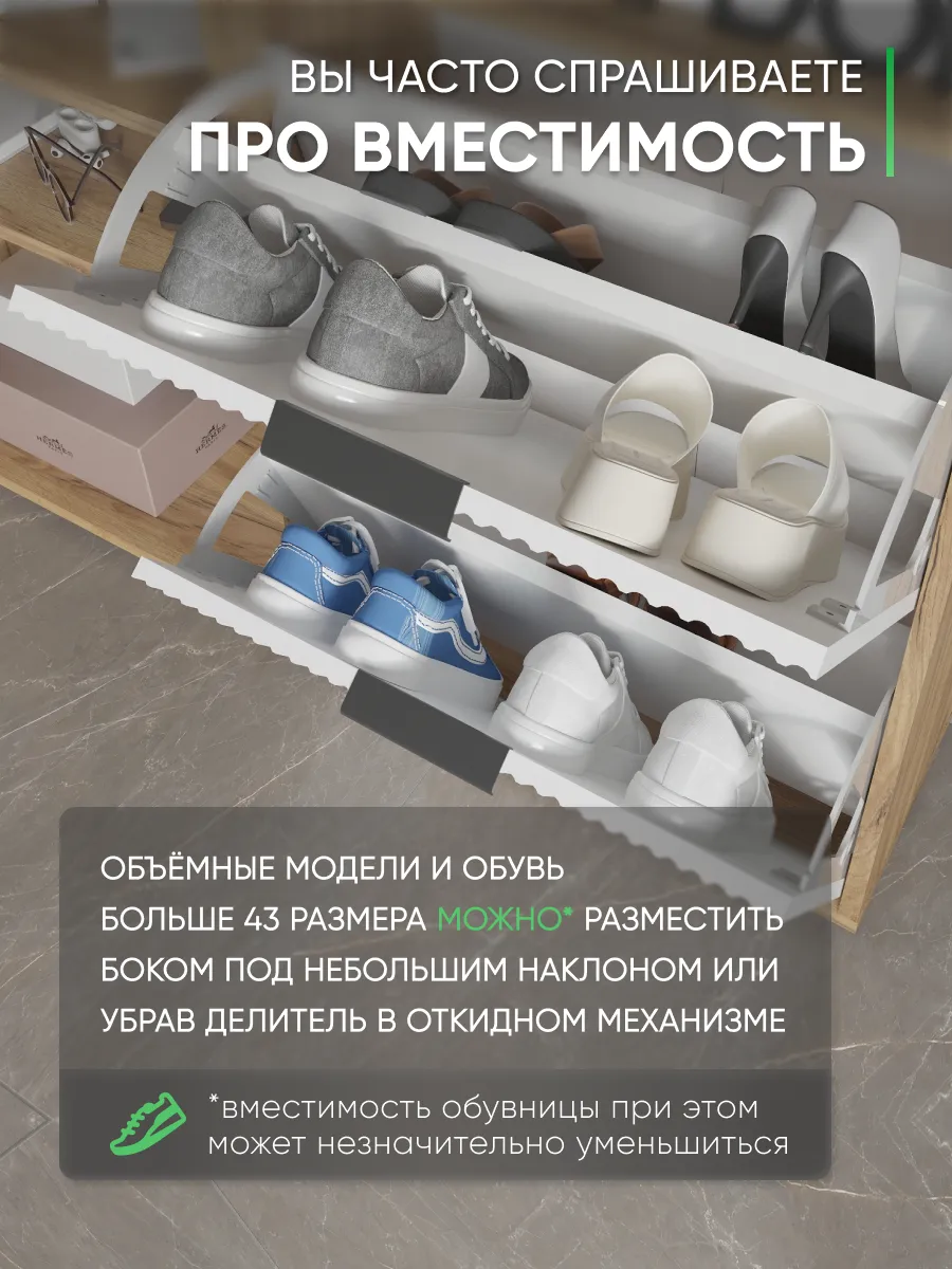 Обувница - необходимый предмет мебели для прихожей, коридора, балкона или гардеробной. Упорядочив хранение с помощью обувницы для прихожей закрытой, Вы можете несколько разгрузить пространство - даже в небольшой семье обуви получается не мало. Особенно, если учесть, что одна часть обуви активно используется, а вторая - находится на хранении в ожидании сезона. Наша этажерка для обуви создает приемлемые условия для хранения, что позволит продлить срок эксплуатации обуви. В пользу обувницы закрытой выступает и тот факт, что хранение обуви в “родных” коробках занимает чрезмерное количество места. Верхнюю поверхность стеллажа можно использовать как дополнительную полочку для ключей, сумок и прочей мелочи, которую всегда необходимо держать под рукой. Открыте полки позволят вместить еще больше нужных вещей, а вместительный ящик под ними позволяет удобно хранить коробки из под обуви и другое. Тумба под обувь с двумя откидными дверцами поможет сэкономить полезное пространство и не займет много места. У дверцы использованы удобные и эргономичные ручки, которыми приятно пользоваться. Еще одно преимущество нашей обувницы - Фрезерованные МДФ фасады в пленке soft touch. Софт тач фасады приятные на ощупь и не оставляют следов. Так же у обувницы есть задняя стенка, что позволяет защитить вашу стену от грязи. Обувница для прихожей деревянная из лдсп. Обувница в прихожую комфортного размера, но очень вместительная, что позволяет хранить обувь даже в самой маленькой прихожей. Размеры обувница для обуви закрытая: вместимость: 8 пар обуви. Разделитель в отделениях двойной! Если убрать съемный разделитель - то влезет и более высокая обувь, обувница для сапог. Обувница лофт или в современном стиле впишется в любой интерьер из-за своего универсального дизайна. Обувница в актуальном оттенке подходит к большинству интерьеров. Обувница деревянная в отличие от металлических и пластиковых смотрится основательно, презентабельно. Обувница так же имеет преимущество перед низкими аналогами. Наша для обуви обувница вмещает два отделения, а это значит что вместиться вся необходимая обувь. Обувница закрытая для прихожей подойдет как в прихожую, так и в гардеробную, и в кладовую. Обувная полка впишется в любой интерьер, станет прекрасной помощницей по соблюдению порядка не только в квартире, но и в загородном доме, на даче или в офисе. Обувница лдсп не прихотлива в уходе, достаточно протирать её от пыли и грязи. Обувница этажерка для обуви модель ОБВ-96. Выбирая продукцию отечественного производителя Good Дом, все в Дом Вы обеспечиваете себя гарантией на продукцию сроком в 1 год, Вы выбираете качество и комфорт.