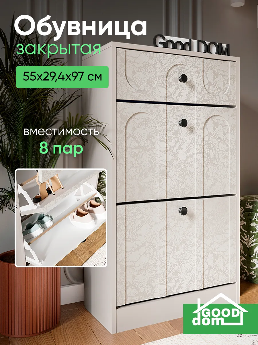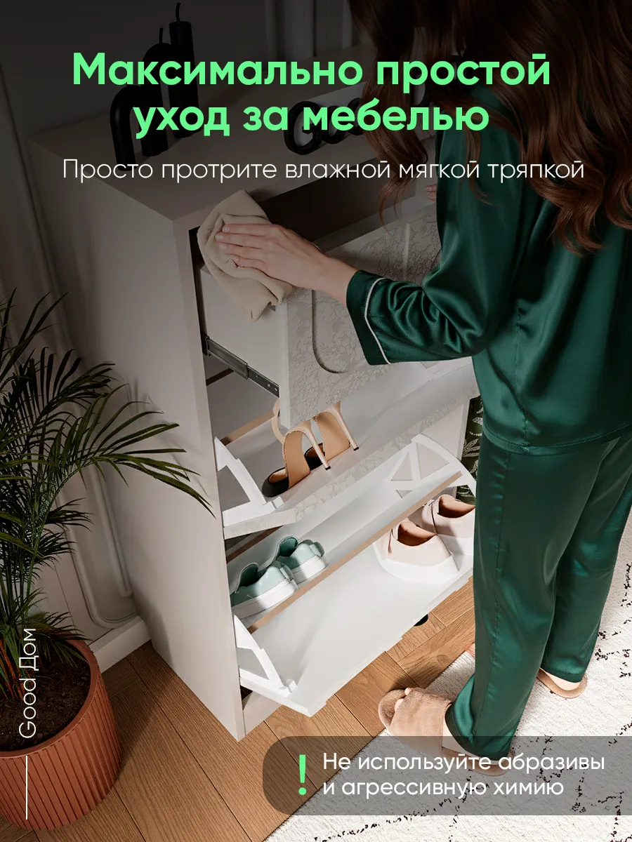 Компактный деревянный шкаф для хранения обуви идеально впишется в интерьер прихожей или коридора. Узкий и небольшой по ширине, он занимает минимум места, что особенно важно для тонких или угловых стенок и плинтусов. Этот мебельный элемент выполнен из дерева с лаковой поверхностью, которая защищена пленкой и придает изделию стильный дизайнерский вид.