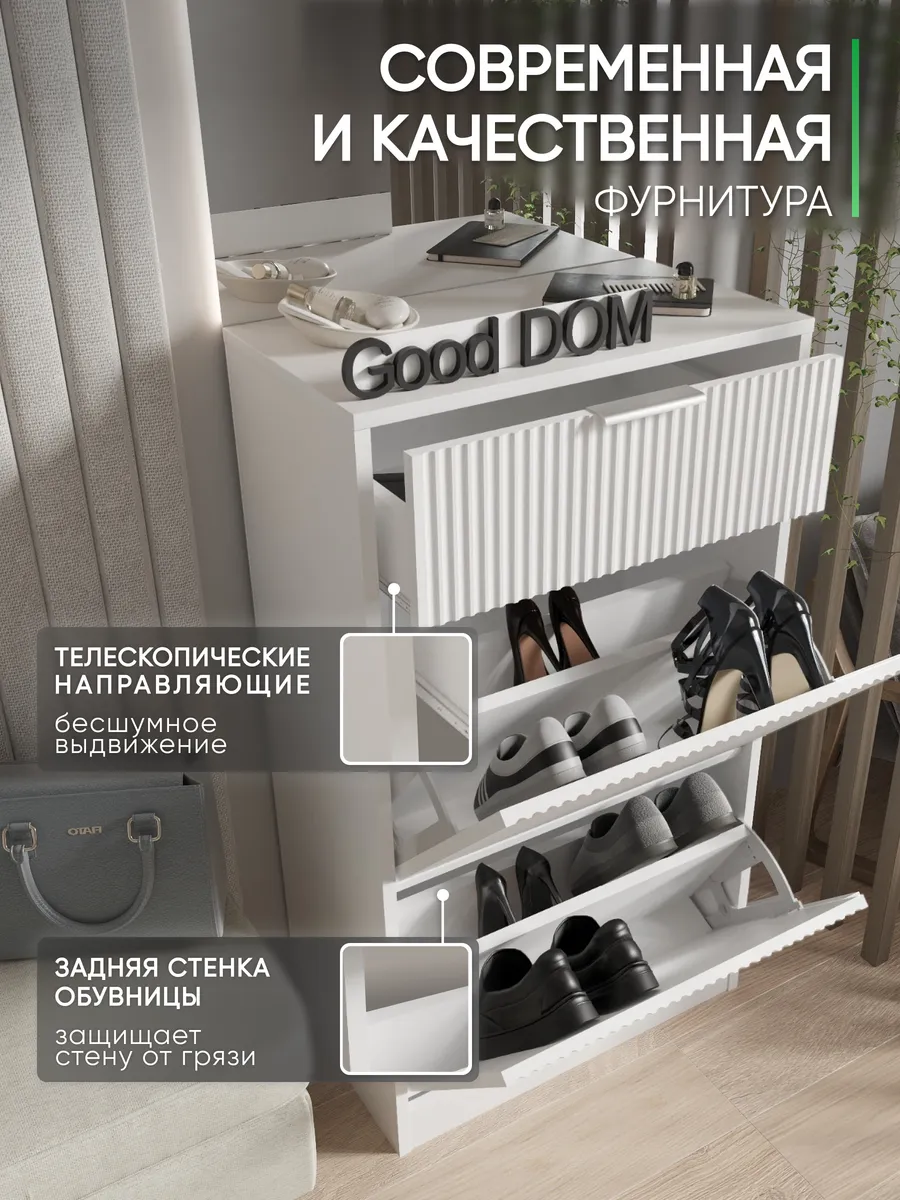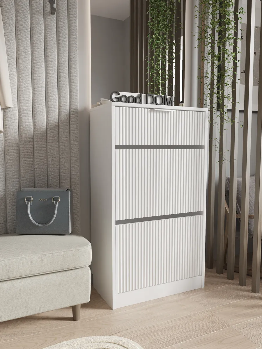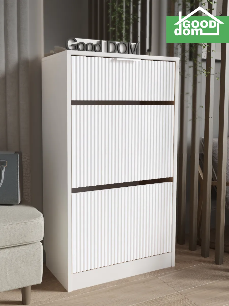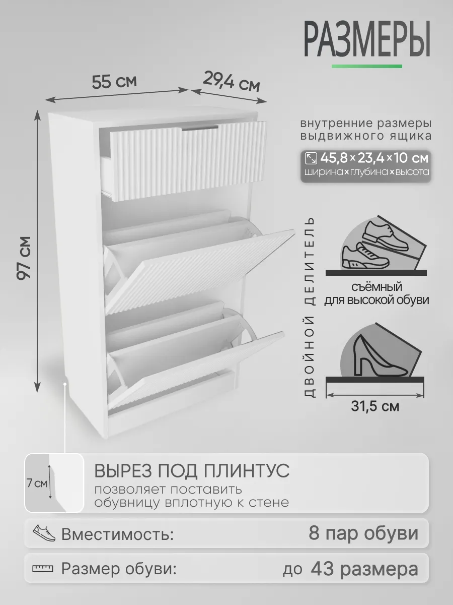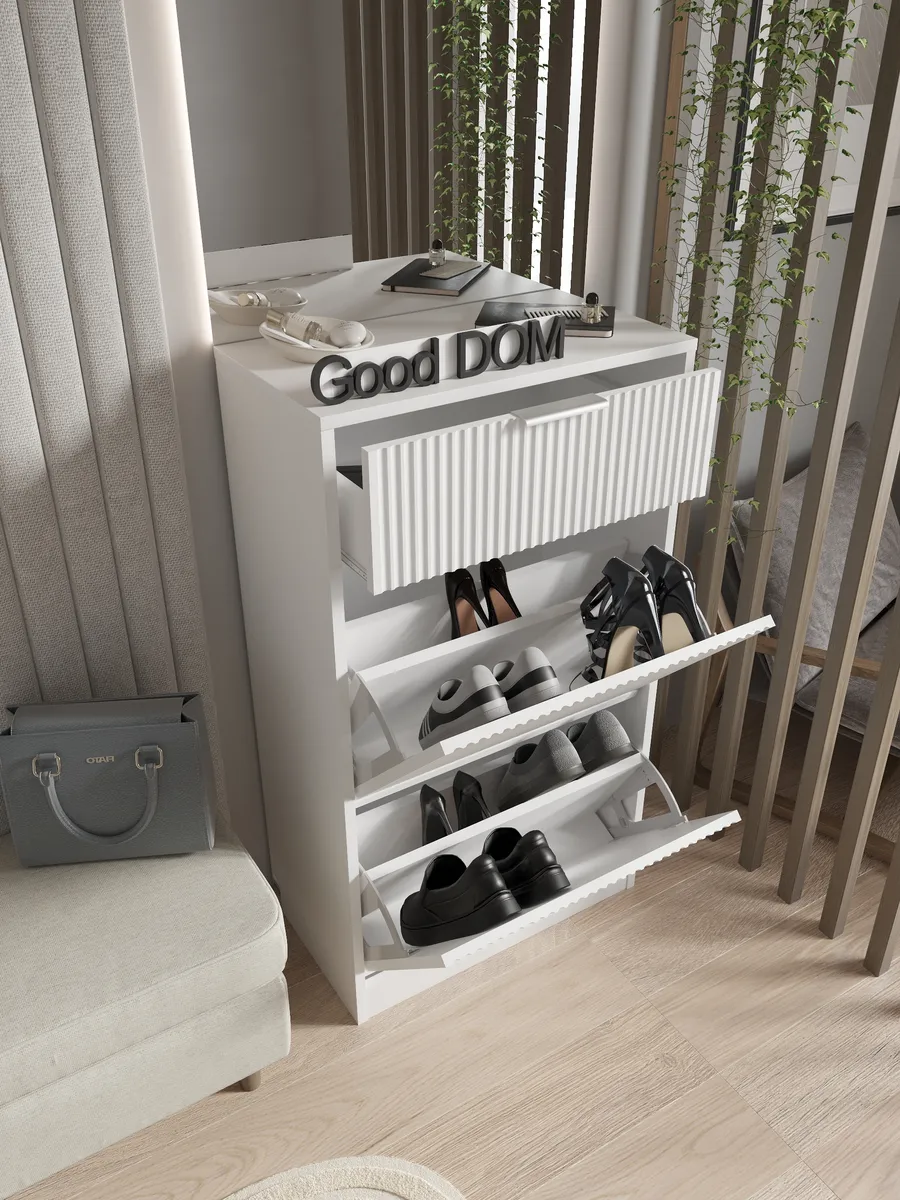 Обувница — стильный и компактный элемент мебели для хранения обуви и мелочи в прихожей или коридоре. Этот компактный стеллаж выполнен из дерева с лаковым покрытием, что обеспечивает долговечность и привлекательный внешний вид. Закрытый ящик и выдвижные полки позволяют удобно организовать разный обувной гардероб и сохранить порядок в доме. Узкий и тонкий дизайн этой мебели экономит пространство, идеально подходя для небольших помещений.