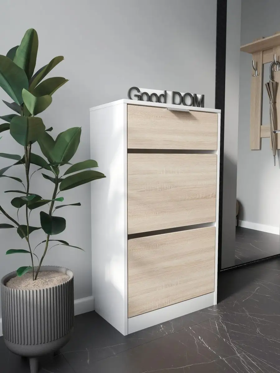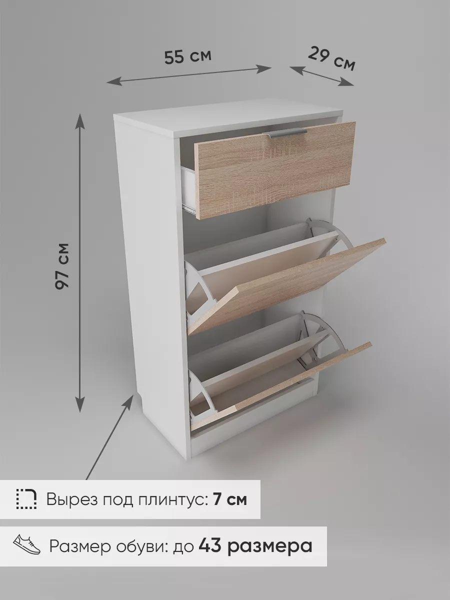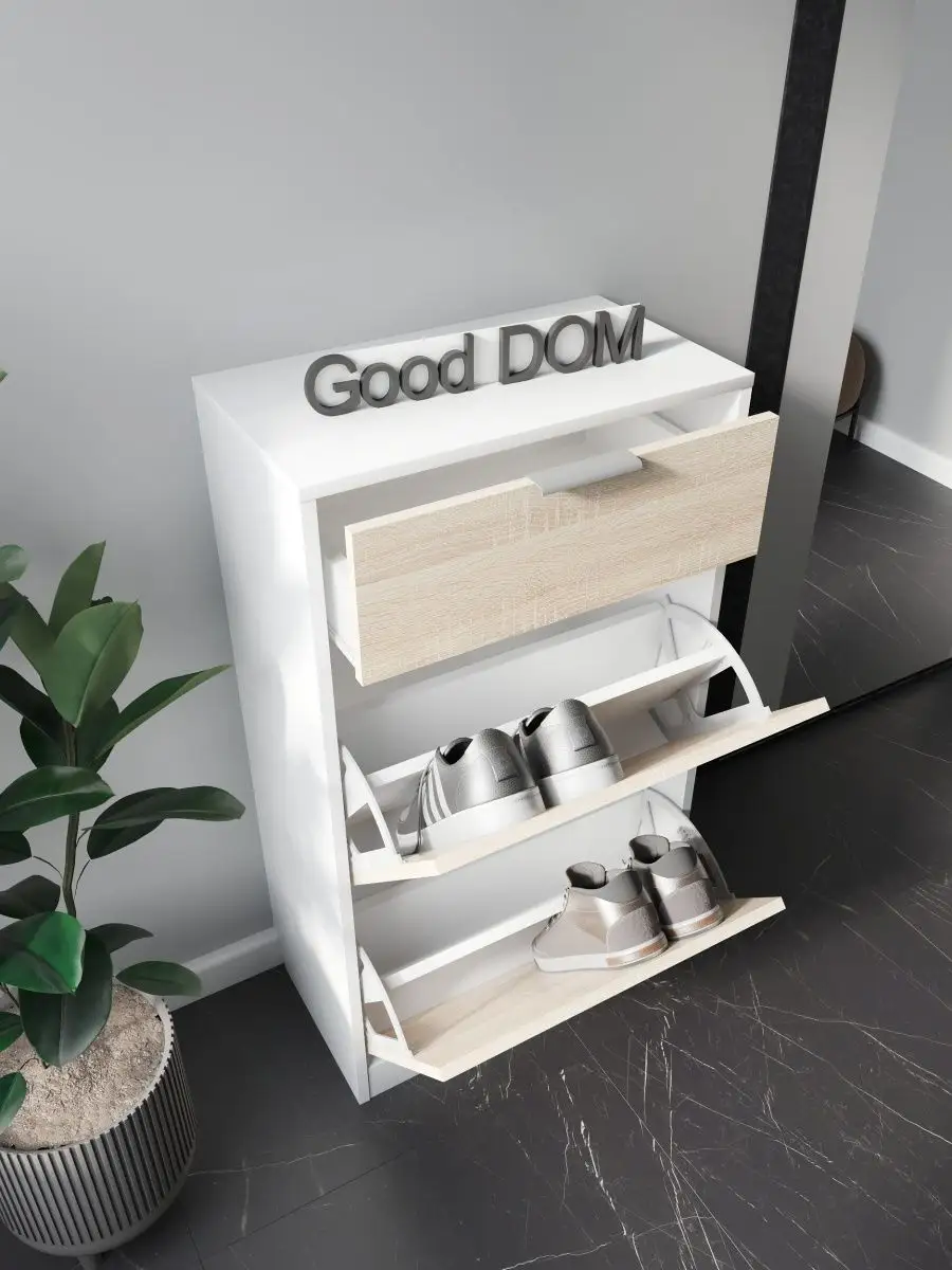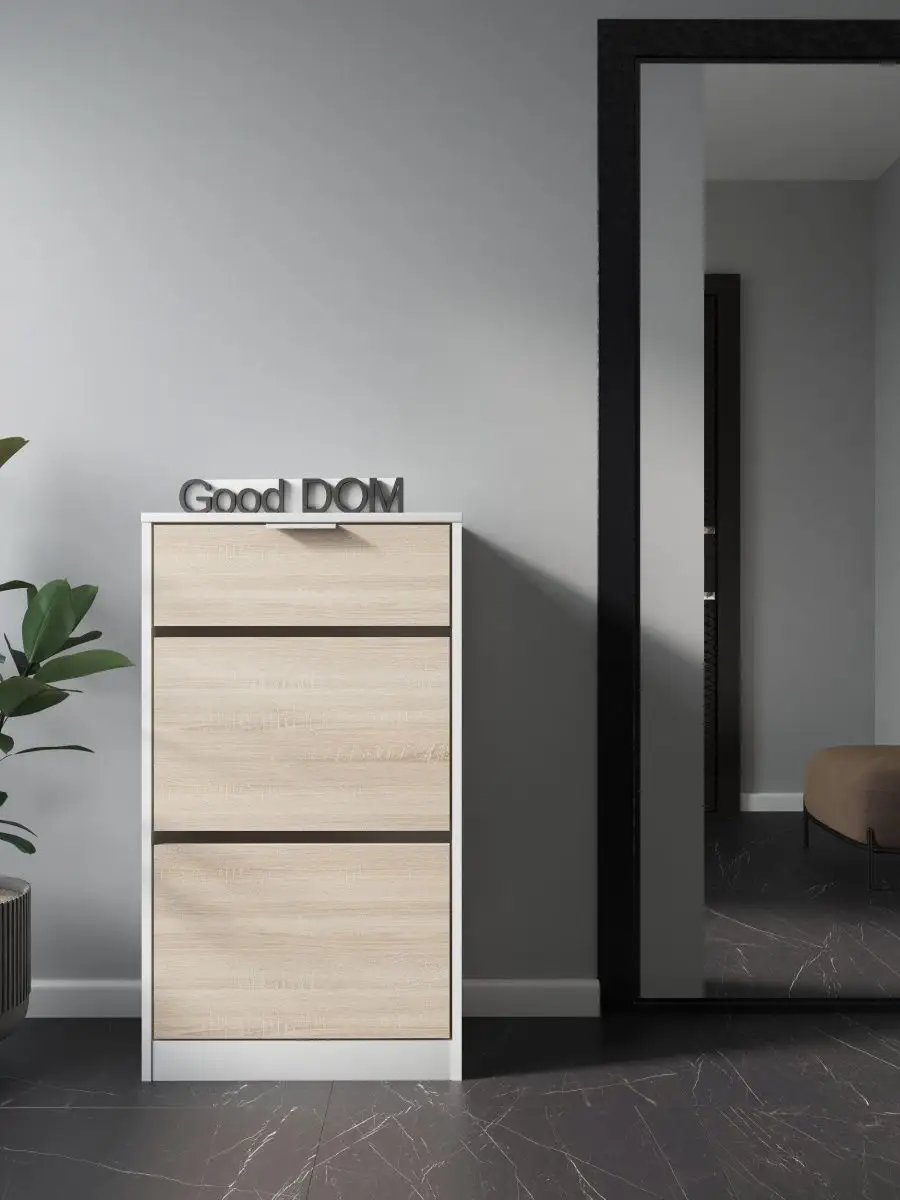 Обувница закрытая с выдвижными ящиками - удобная мебель в прихожую для функционального и удобного хранения обуви и вещей в коридоре. Тумба под обувь с выдвижным ящиком и откидными дверцами поможет сэкономить полезное пространство и не займет много места. Полка для обуви узкая влезет даже в маленький коридор, уместиться в небольшой гардеробной. Этажерка закрытая защитит обувь от попадания пыли, к тому же закрытая конструкция выглядит аккуратно и не перегружает пространство. Стеллаж из ЛДСП не ржавеет и при должном уходе прослужит долгие годы в отличие от металлической подставки и тем более пластиковой. Шкаф имеет верхний выдвижной ящик, в котором можно разместить аксессуары, использовать для хранения некоторой одежды и других принадлежностей и вещей. Ниже расположены две откидных полки для обуви, разделенных на две секции, что позволяет в такой компактной обувнице уместить целых 8 пар обуви! У дверцы использованы удобные и эргономичные ручки, которыми приятно пользоваться. Еще одно преимущество нашей обувницы - вырез под плинтус (идеальная установка вплотную к стене). Так же у обувницы есть задняя стенка, что позволяет защитить вашу стену от грязи. Галошницу можно дополнить вешалкой и зеркалом и получить удобный комплект в прихожую. Обувная полочка легко заменит громоздкий комод, стенку или шкаф. В нашем ассортименте представлена другая мебель для прихожей (и не только) – вы можете легко посмотреть весь ассортимент, щелкнув на значок логотипа. Мы постоянно работаем над качеством нашей продукции, поэтому улучшили упаковку - наша УСИЛЕННАЯ УПАКОВКА ЗАЩИТИТ Вашу Обувницу при доставке ОТ СЛОМАННЫХ УГЛОВ и СКОЛОВ! Выбирая продукцию отечественного производителя Good Дом, все в Дом Вы обеспечиваете себя гарантией на продукцию сроком в 1 год, Вы выбираете качество и комфорт.