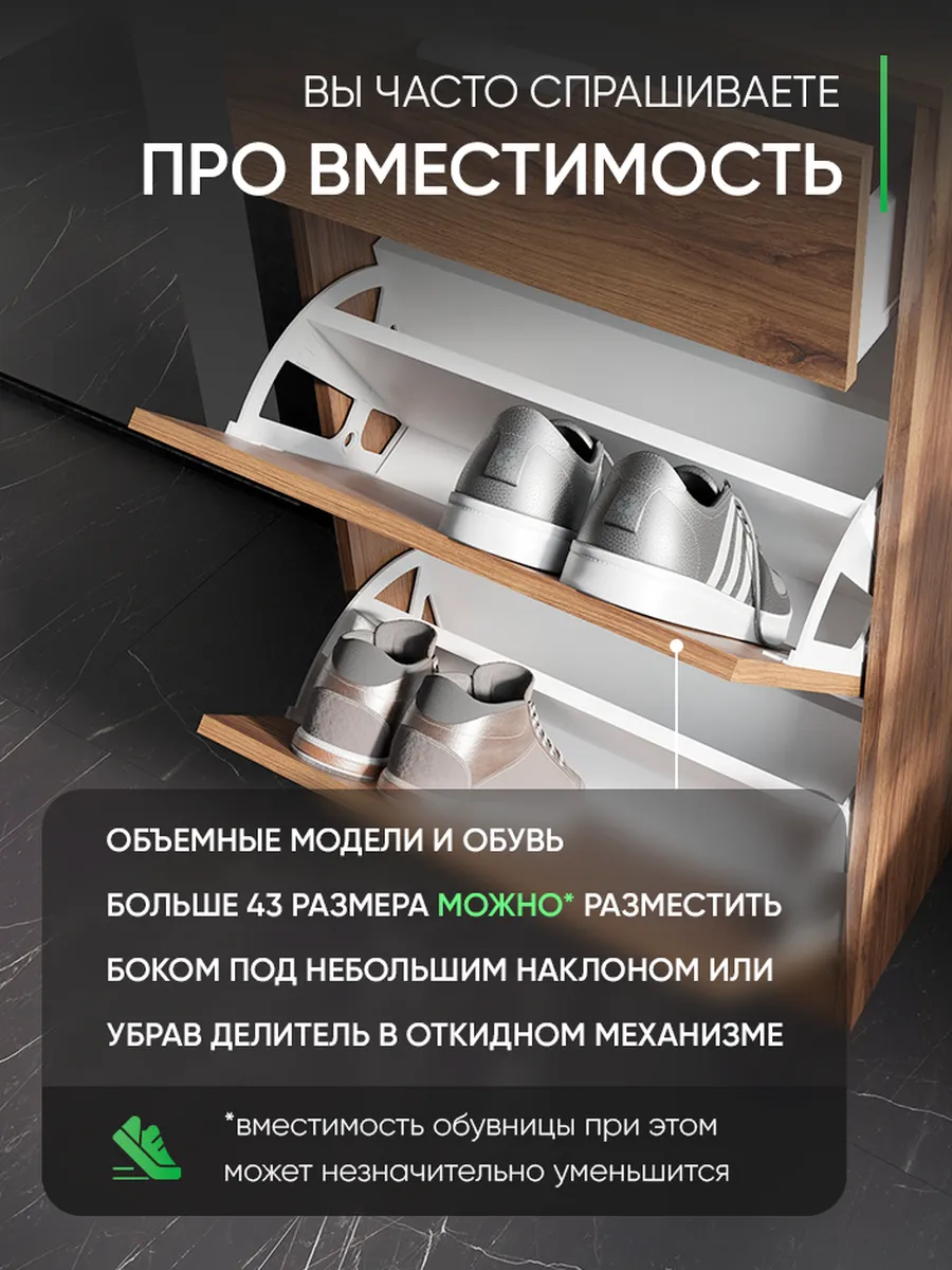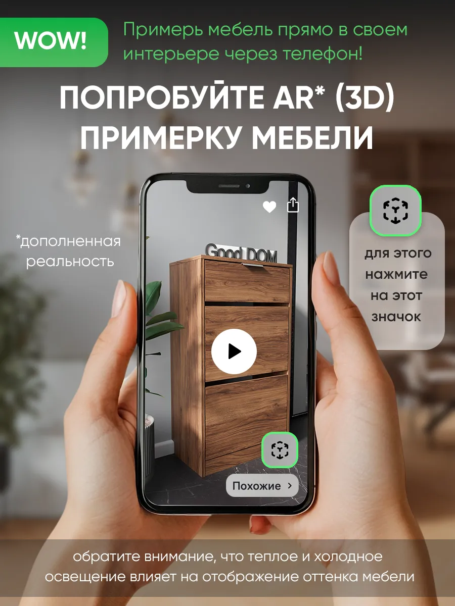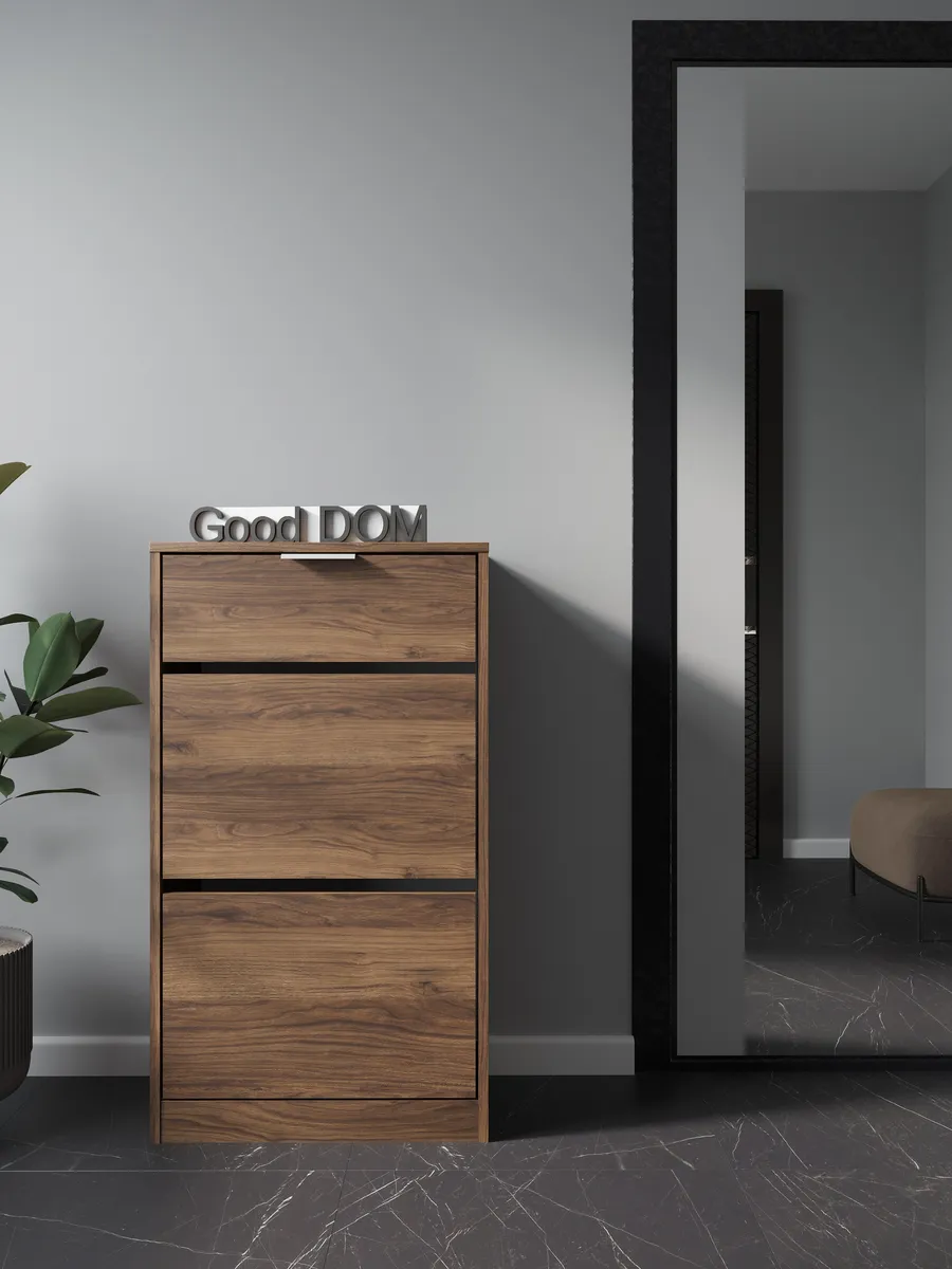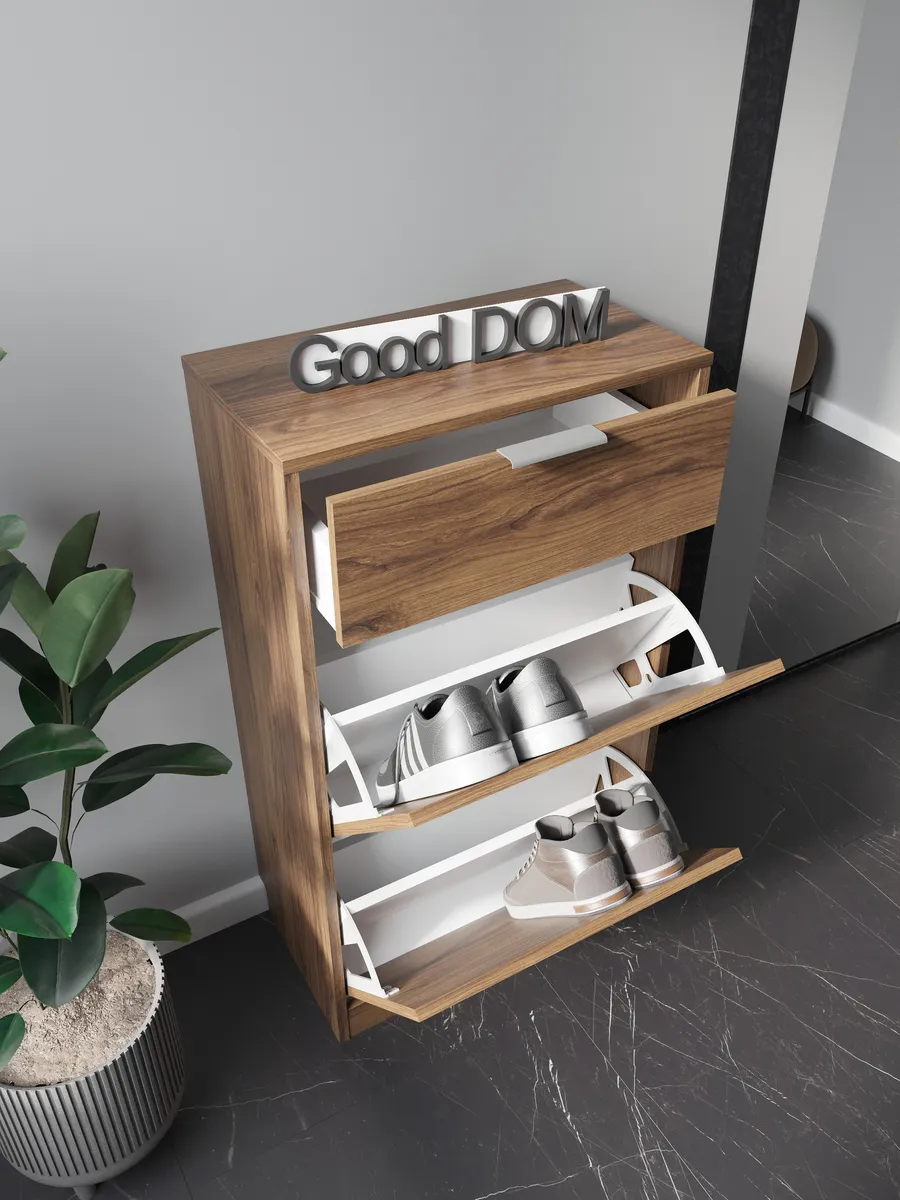 Обувница закрытая с выдвижными ящиками - удобная мебель в прихожую для функционального и удобного хранения обуви и вещей в коридоре. Тумба под обувь с выдвижным ящиком и откидными дверцами поможет сэкономить полезное пространство и не займет много места. Полка для обуви узкая влезет даже в маленький коридор, уместиться в небольшой гардеробной. Этажерка закрытая защитит обувь от попадания пыли, к тому же закрытая конструкция выглядит аккуратно и не перегружает пространство. Стеллаж из ЛДСП не ржавеет и при должном уходе прослужит долгие годы в отличие от металлической подставки и тем более пластиковой. Шкаф имеет верхний выдвижной ящик, в котором можно разместить зонты и другие аксессуары, использовать для хранения некоторой одежды и других принадлежностей и вещей. Ниже расположены две откидных полки для обуви, разделенных на две секции, что позволяет в такой компактной обувнице уместить целых 8 пар обуви! У дверцы использованы удобные и эргономичные ручки, которыми приятно пользоваться. Еще одно преимущество нашей обувницы - вырез под плинтус (идеальная установка вплотную к стене). Так же у обувницы есть задняя стенка, что позволяет защитить вашу стену от грязи. Галошницу можно дополнить вешалкой и зеркалом и получить удобный комплект в прихожую. Обувная полочка легко заменит громоздкий комод, стенку или шкаф. В нашем ассортименте представлена другая мебель для прихожей (и не только) – вы можете легко посмотреть весь ассортимент, щелкнув на значок логотипа. Мы постоянно работаем над качеством нашей продукции, поэтому улучшили упаковку - наша УСИЛЕННАЯ УПАКОВКА ЗАЩИТИТ Вашу Обувницу при доставке ОТ СЛОМАННЫХ УГЛОВ и СКОЛОВ! Выбирая продукцию отечественного производителя Good Дом, все в Дом Вы обеспечиваете себя гарантией на продукцию сроком в 1 год, Вы выбираете качество и комфорт.