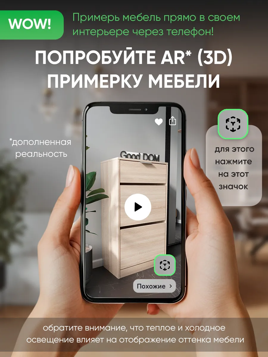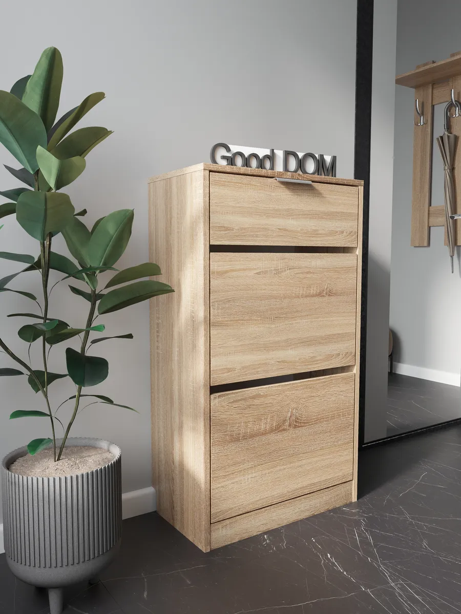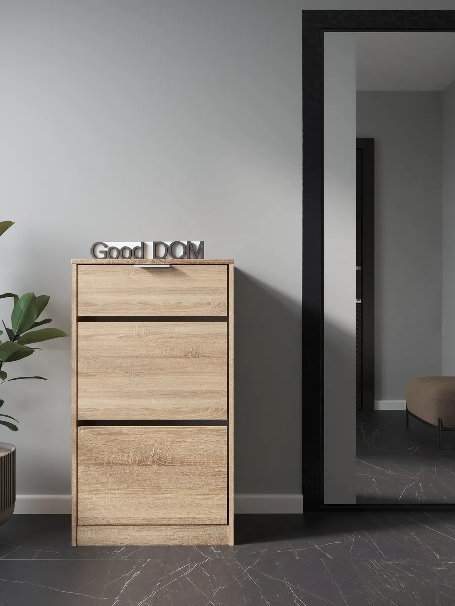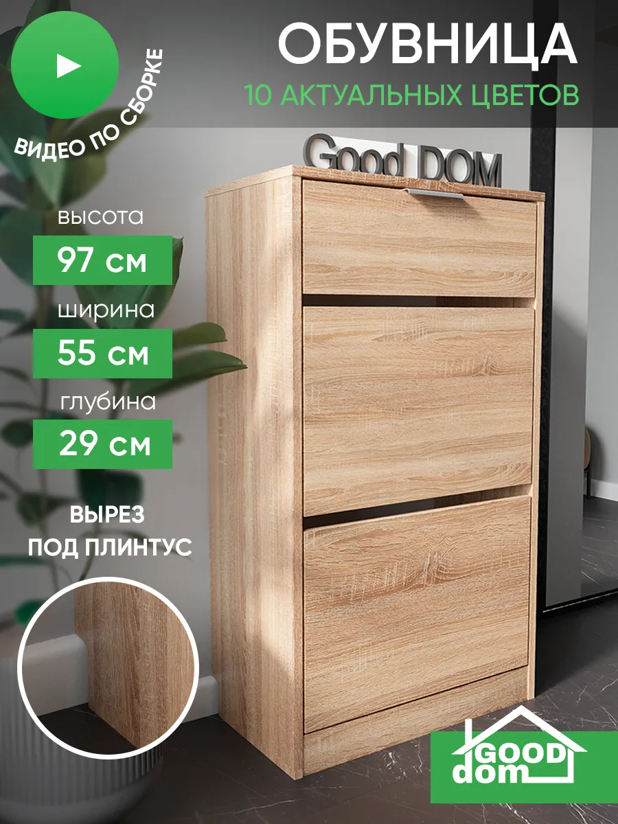 Обувница закрытая с выдвижными ящиками - удобная мебель в прихожую для функционального и удобного хранения обуви и вещей в коридоре. Тумба под обувь с выдвижным ящиком и откидными дверцами поможет сэкономить полезное пространство и не займет много места. Полка для обуви узкая влезет даже в маленький коридор, уместиться в небольшой гардеробной. Этажерка закрытая защитит обувь от попадания пыли, к тому же закрытая конструкция выглядит аккуратно и не перегружает пространство. Стеллаж из ЛДСП не ржавеет и при должном уходе прослужит долгие годы в отличие от металлической подставки и тем более пластиковой. Шкаф имеет верхний выдвижной ящик, в котором можно разместить зонты или контейнер с мелочью использовать для хранения некоторой одежды и других принадлежностей и вещей. Ниже расположены две откидных полки для обуви, разделенных на две секции, что позволяет в такой компактной обувнице уместить целых 8 пар обуви! У дверцы использованы удобные и эргономичные ручки, которыми приятно пользоваться. Еще одно преимущество нашей обувницы - вырез под плинтус (идеальная установка вплотную к стене). Так же у обувницы есть задняя стенка, что позволяет защитить вашу стену от грязи. Галошницу можно дополнить вешалкой и зеркалом и получить удобный комплект в прихожую. Обувная полочка легко заменит громоздкий комод, стенку или шкаф. В нашем ассортименте представлена другая мебель для прихожей (и не только) – вы можете легко посмотреть весь ассортимент, щелкнув на значок логотипа. Мы постоянно работаем над качеством нашей продукции, поэтому улучшили упаковку - наша УСИЛЕННАЯ УПАКОВКА ЗАЩИТИТ Вашу Обувницу при доставке ОТ СЛОМАННЫХ УГЛОВ и СКОЛОВ! Выбирая продукцию отечественного производителя Good Дом, все в Дом Вы обеспечиваете себя гарантией на продукцию сроком в 1 год, Вы выбираете качество и комфорт.