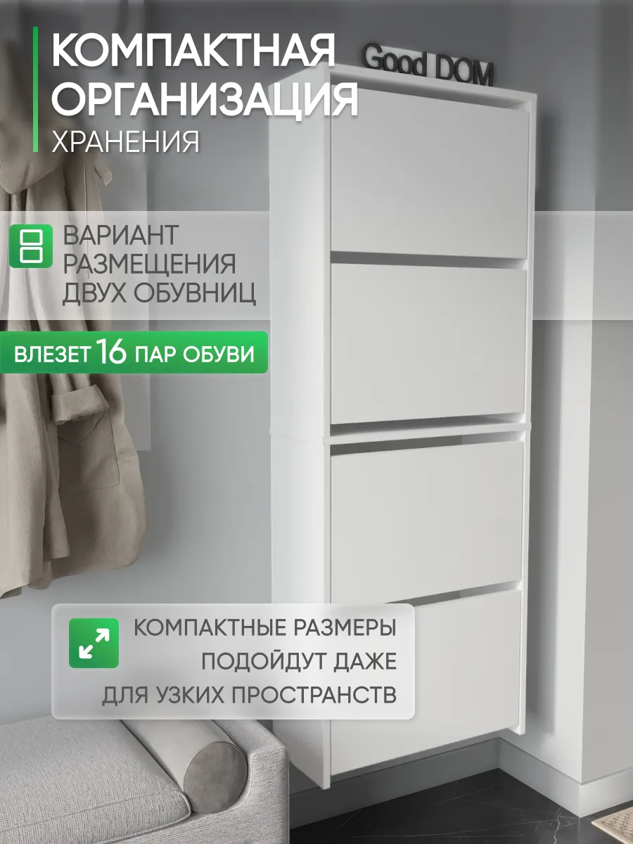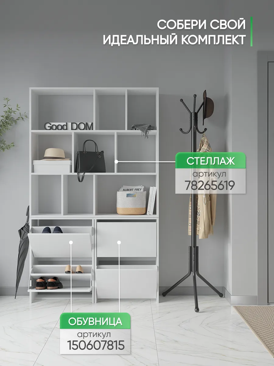 Высокий или маленький шкафчик подойдет как для одного человека, так и для всей семьи. Сборка мебели проста, а гардероб станет более организованным благодаря дополнительным местам для хранения. Вешалка или лисп дополняют интерьер, создавая завершенный образ.