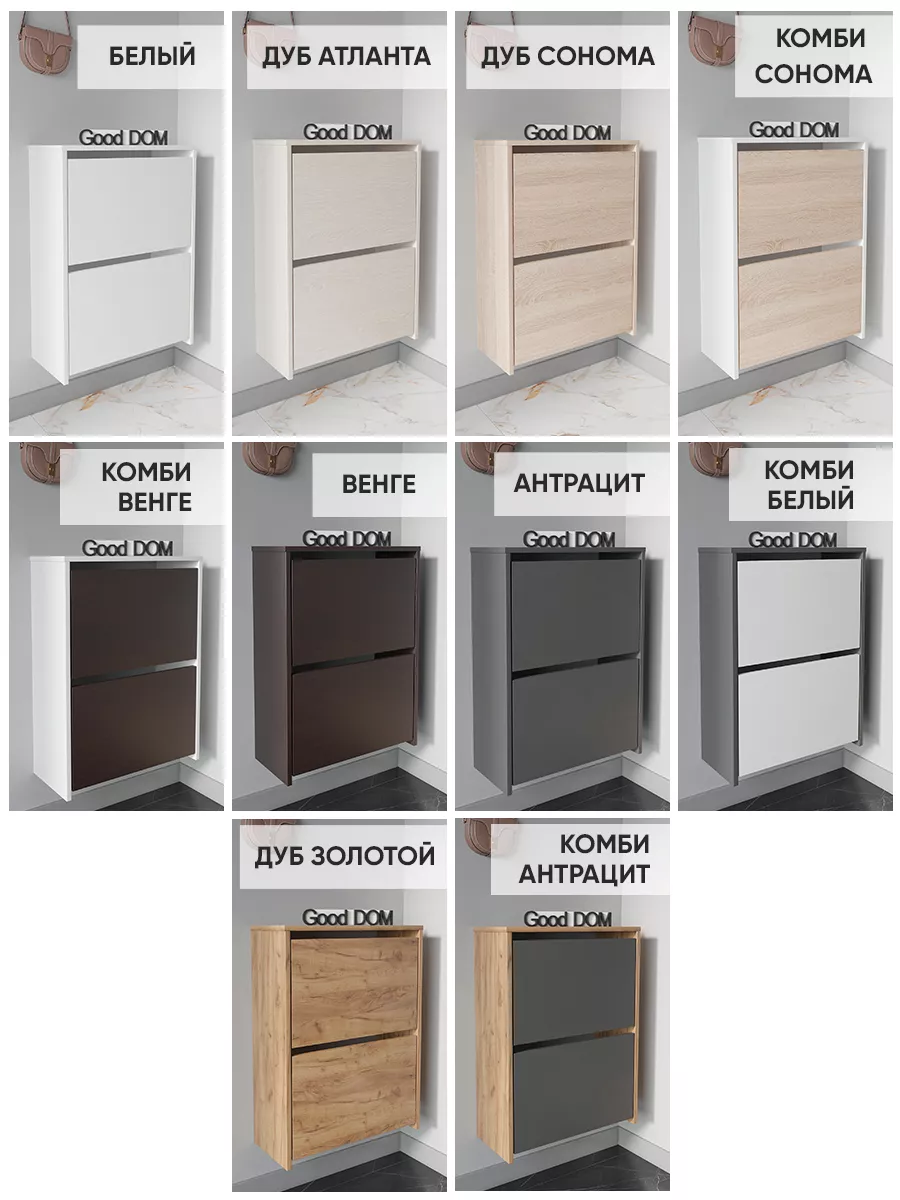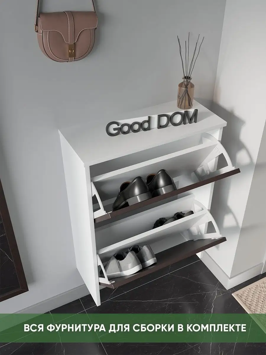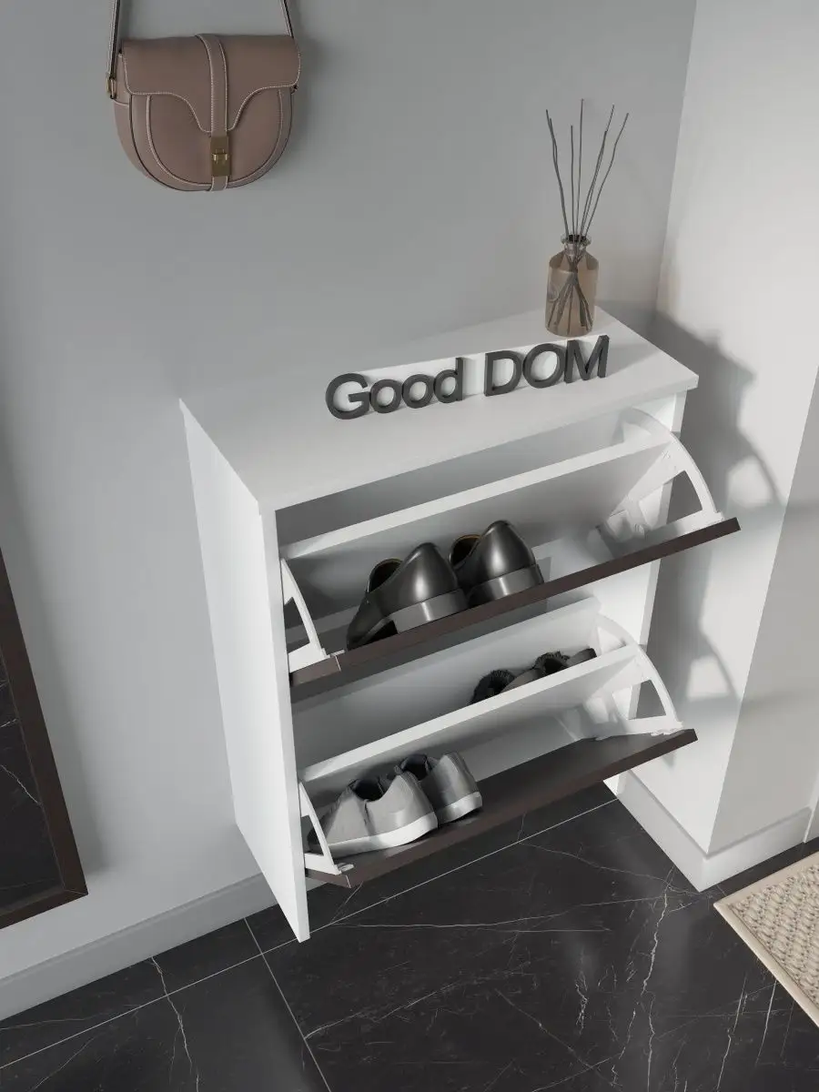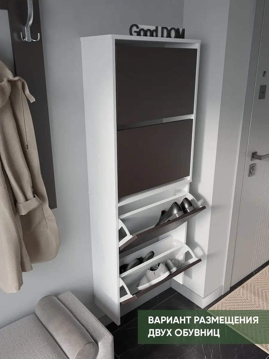 Обувница закрытая - удобная мебель в прихожую для функционального и удобного хранения обуви и вещей в коридоре. Тумба под обувь с откидными дверцами поможет сэкономить полезное пространство и не займет много места. Полка для обуви узкая влезет даже в маленький коридор, уместиться в небольшой гардеробной. Этажерка закрытая защитит обувь от попадания пыли, к тому же закрытая конструкция выглядит аккуратно и не перегружает пространство. Стеллаж из ЛДСП не ржавеет и при должном уходе прослужит долгие годы в отличие от металлической подставки и тем более пластиковой. Шкаф имеет поверхность сверху - верхнюю полку, на которой можно разместить сумки или ключи. Также у навесной обувницы есть две откидные полки для обуви, разделенных на две секции, что позволяет в такой компактной обувнице уместить целых 8 пар обуви! Подвесная обувница выглядит стильно и компактно. Галошницу можно дополнить вешалкой и зеркалом и получить удобный комплект в прихожую. Обувная полочка легко заменит громоздкий комод, стенку или шкаф. В нашем ассортименте представлена другая мебель для прихожей (и не только) – вы можете легко посмотреть весь ассортимент, щелкнув на значок логотипа. Мы постоянно работаем над качеством нашей продукции, поэтому улучшили упаковку - наша усиленная упаковка защитит Вашу Обувницу при доставке от сломаных углов и сколов! Выбирая продукцию отечественного производителя Good Дом, все в Дом Вы обеспечиваете себя гарантией на продукцию сроком в 1 год, Вы выбираете качество и комфорт.